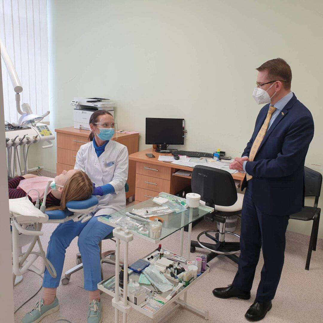 Rokiškyje sveikatos apsaugos ministras Arūnas Dulkys su komanda apžiūrėjo vietos gydymo įstaigas: Greitosios medicinos pagalbos stotį, Pirminės asmens sveikatos priežiūros centrą ir rajono ligoninę. Čia svečius pasitiko VšĮ Rokiškio PASPC direktorė Danguolė Kondratenkienė ir Rokiškio rajono ligoninės direktorius Raimundas Martinėlis.