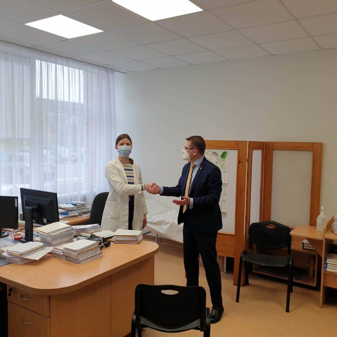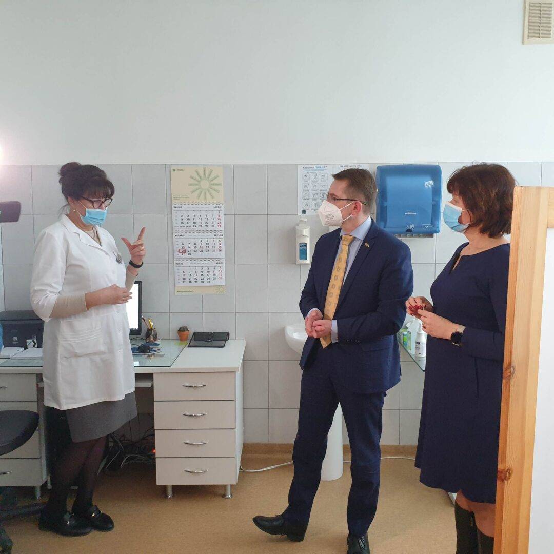 Tik užsukęs į PASPC, ministras užėjo į pirmą pasitaikiusį kabinetą pas šeimos gydytoją rezidentę. Ji pateikė konkrečių svarbių pasiūlymų. „Matome, kad kartais darbą apsunkina ne reglamentavimo dalykai, bet įstaigų bendradarbiavimo klausimas. Jau ne vieną savivaldybę aplankiau, ir Rokiškyje apsilankiau pas šeimos gydytoją rezidentę, kuri taip atkreipė dėmesį į atvejus, kai pacientas kartais tampa kaip futbolo kamuolys tarp skirtingų įstaigų: iš ligoninės vėl grįžta pas šeimos gydytoją – ko grįžta, lyg ir dar kartą pasikonsultuoti, kad išrašytų siuntimą, kurį iš karto ligoninėje galėjo išrašyti. Turime tokių dvilypių situacijų, mano tikslas – jas išsiaiškinti, matyti praktikoje, ir kad mes tai keistume“, – pirmadienį Rokiškyje sakė ministras.