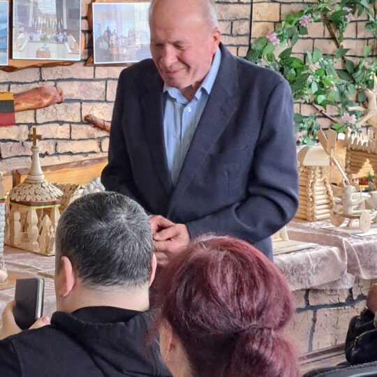 Drožėją sveikino Neįgaliųjų draugijos pirmininkas Algis Veikšys, Kriaunų bendruomenės atstovai, Neįgaliųjų draugijos moterų vokalinis ansamblis.