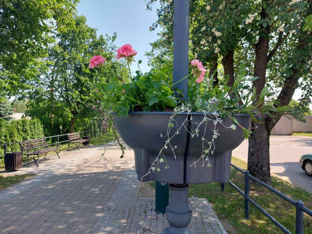 Alėja žavi želdinimo naujove – iškabintais vazonais