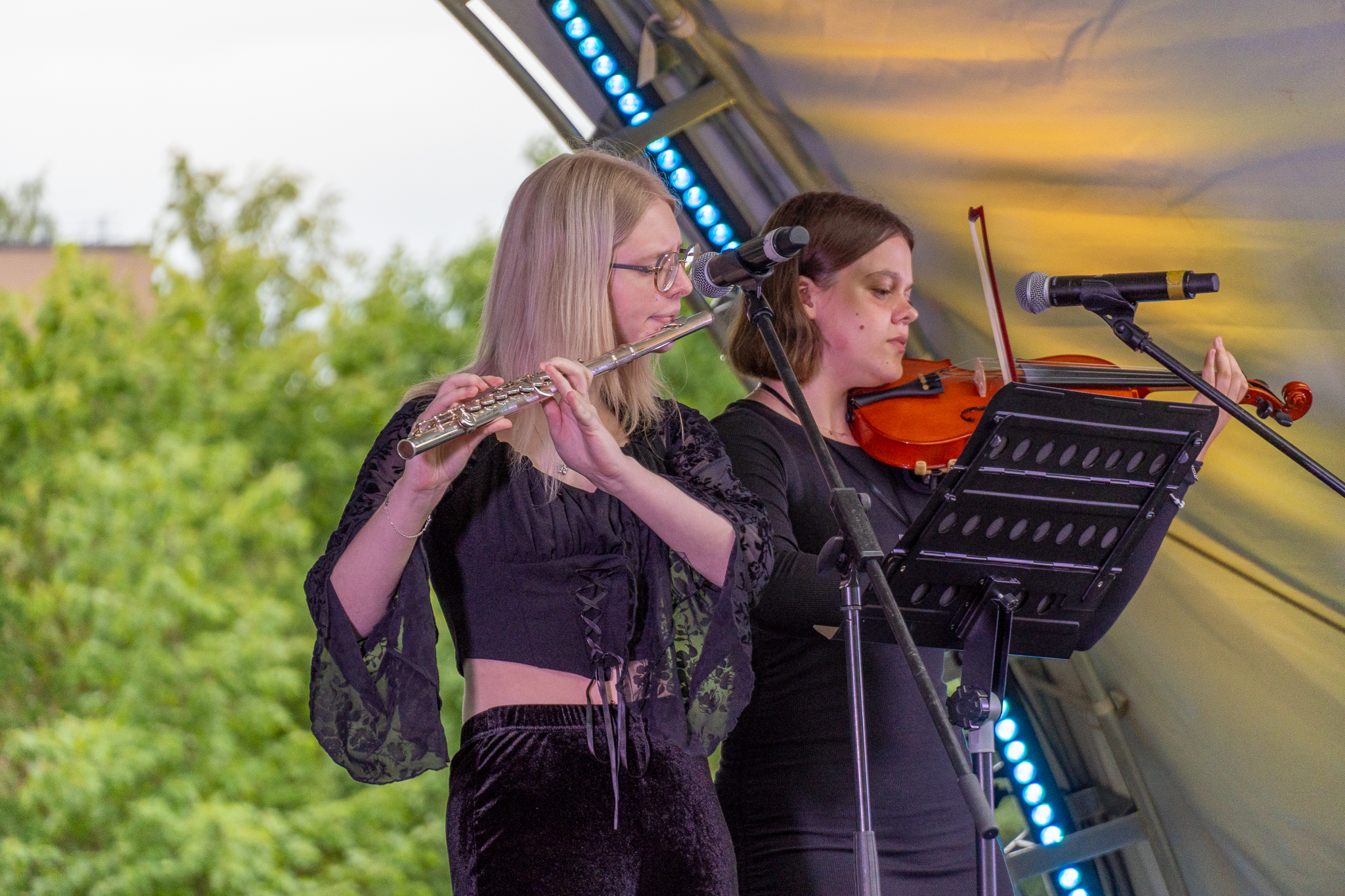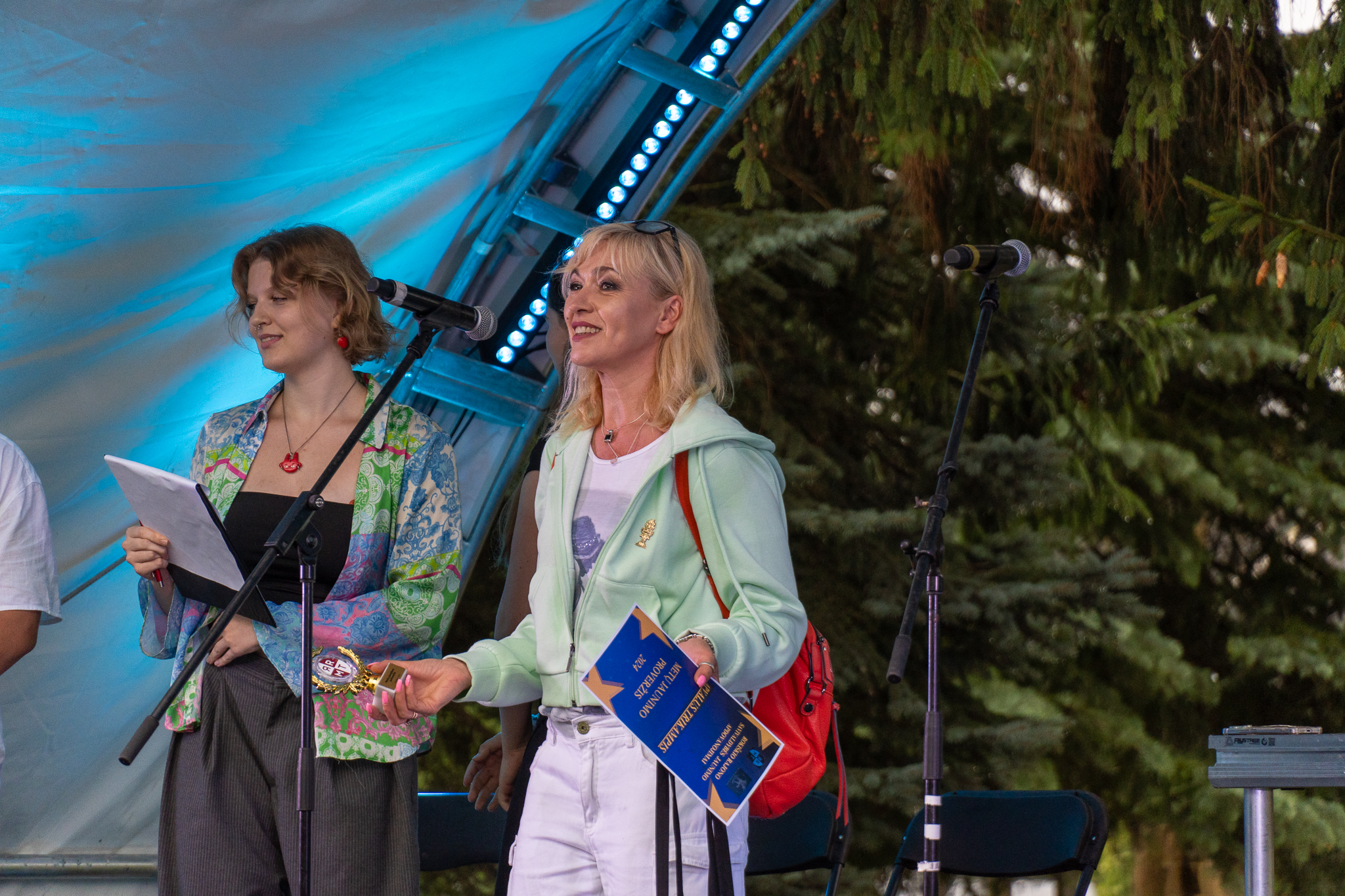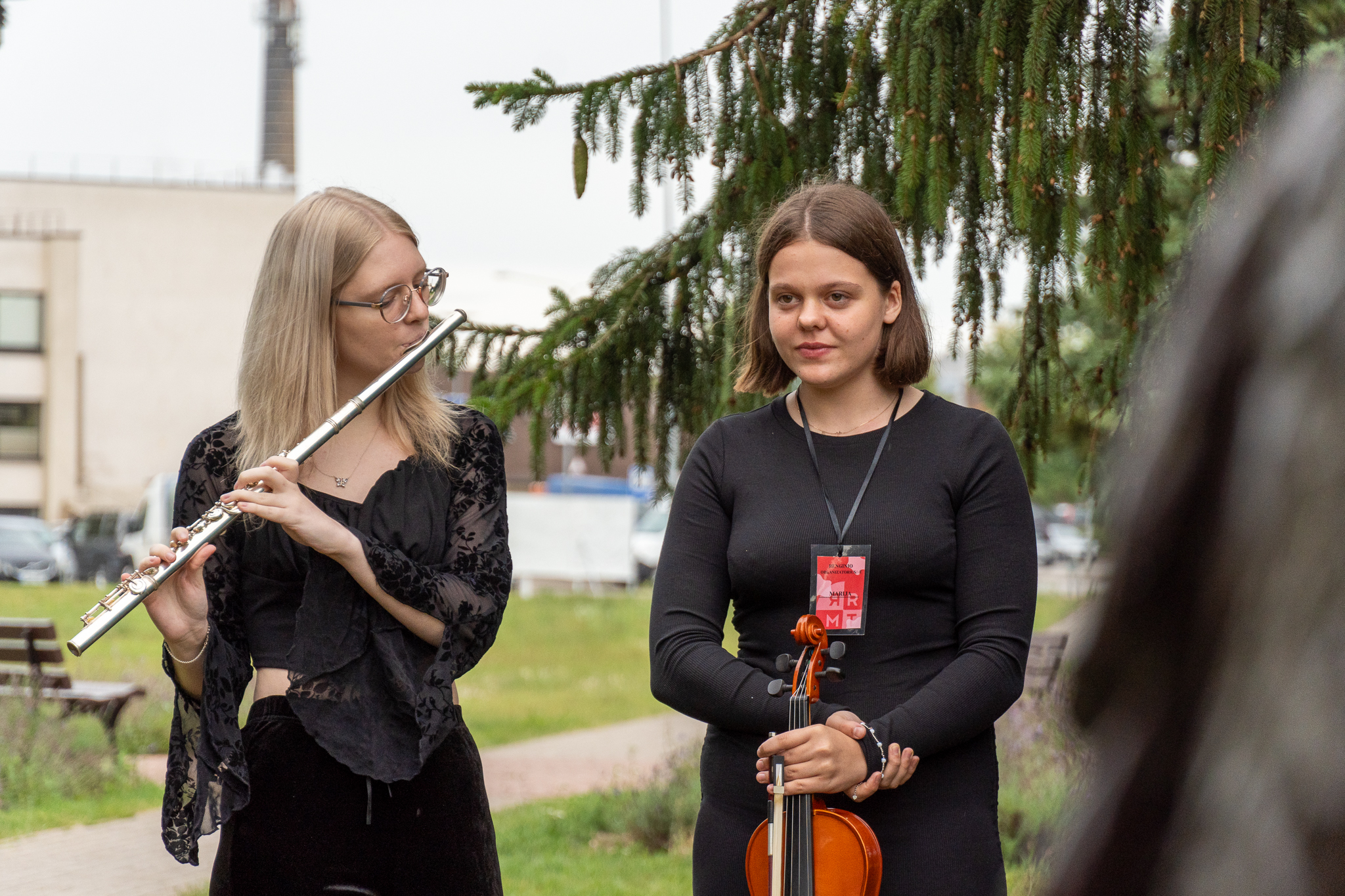 Apdovanojimų pertraukėlių metu žiūrovus žavėjo fleitininkės Auksės Krumpliauskaitės ir smuikininkės Marijos Lekandraitės atliekama muzika.