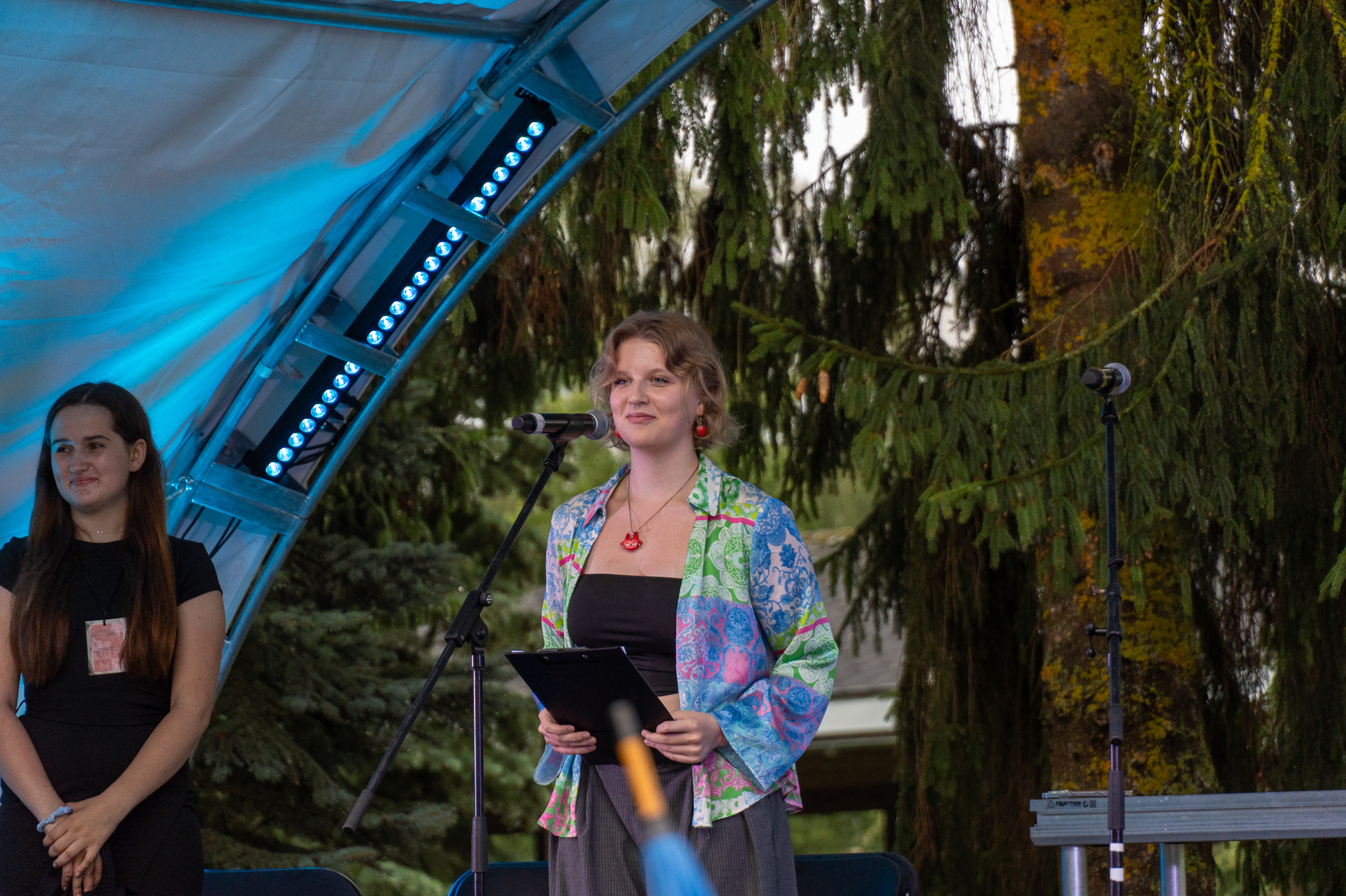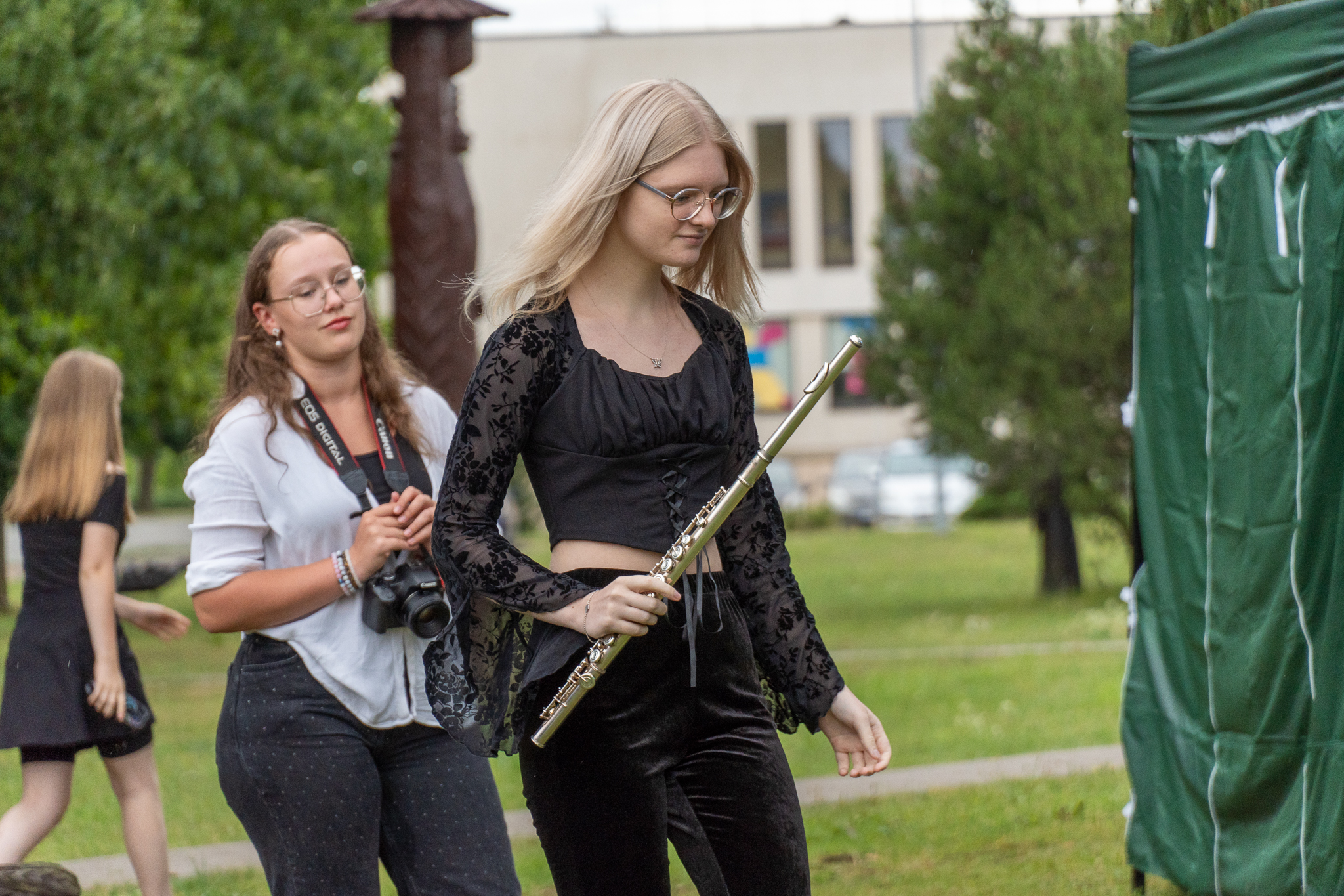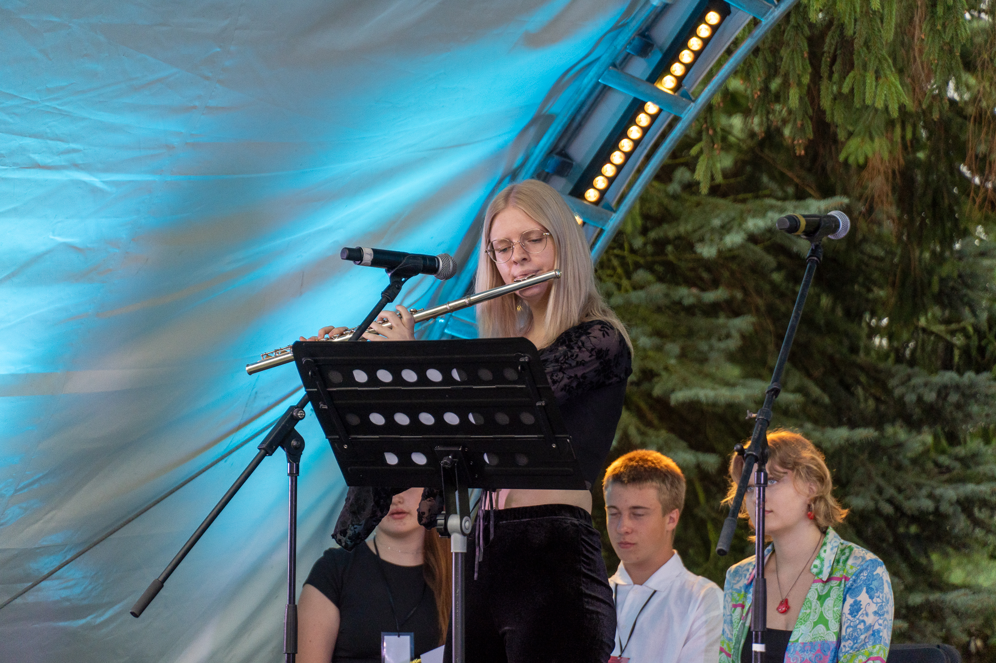 Apdovanojimų pertraukėlių metu žiūrovus žavėjo fleitininkės Auksės Krumpliauskaitės ir smuikininkės Marijos Lekandraitės atliekama muzika.