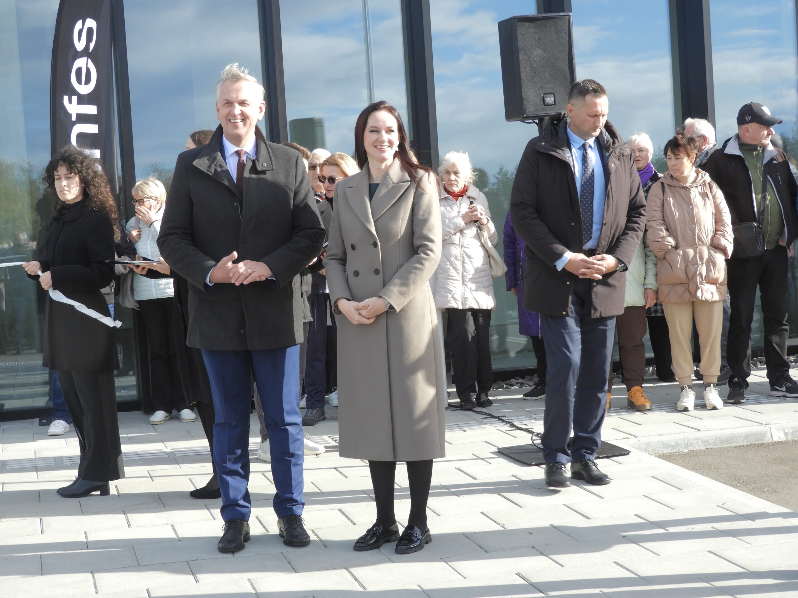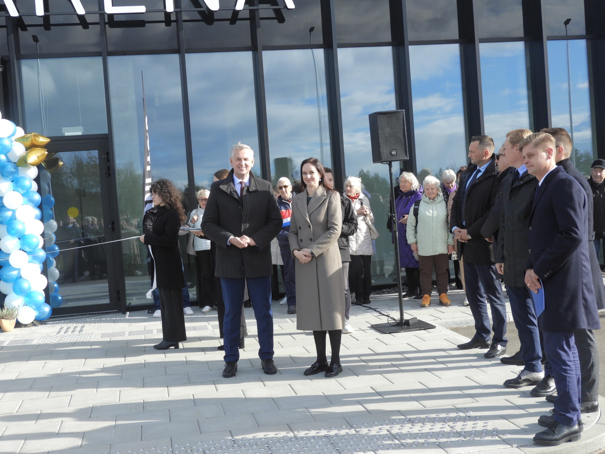 Su Panevėžio orkestro „Garsas“ fanfaromis ir iškilmingu simbolinės juostelės perkirpimu, su padėkomis statytojams ir kitiems prisidėjusiems prie arenos atsiradimo, su aplinkinių rajonų merų sveikinimais ir dovanomis, su svečiais iš Seimo bei Švietimo, mokslo ir sporto ministerijos ir pačia ministre pirmininke Inga Ruginiene. Būtent ji sutraukė į Rokiškį Lietuvos televizijų filmavimo grupes bei žurnalistus. O pastarieji nepraleido progos pasiteirauti visko – nuo to, ar jau žinoma naujojo kultūros ministro kandidatūra, gynybos finansavimo, planų mažinti nedarbo išmokas, iki vakarykščių futbolo rungtynių, kuriose Lietuvos rinktinė pralaimėjo 0:2 Lenkijai, kurios premjeras Donaldas Tuskas taip pat buvo Kauno Dariaus ir Girėno stadione.