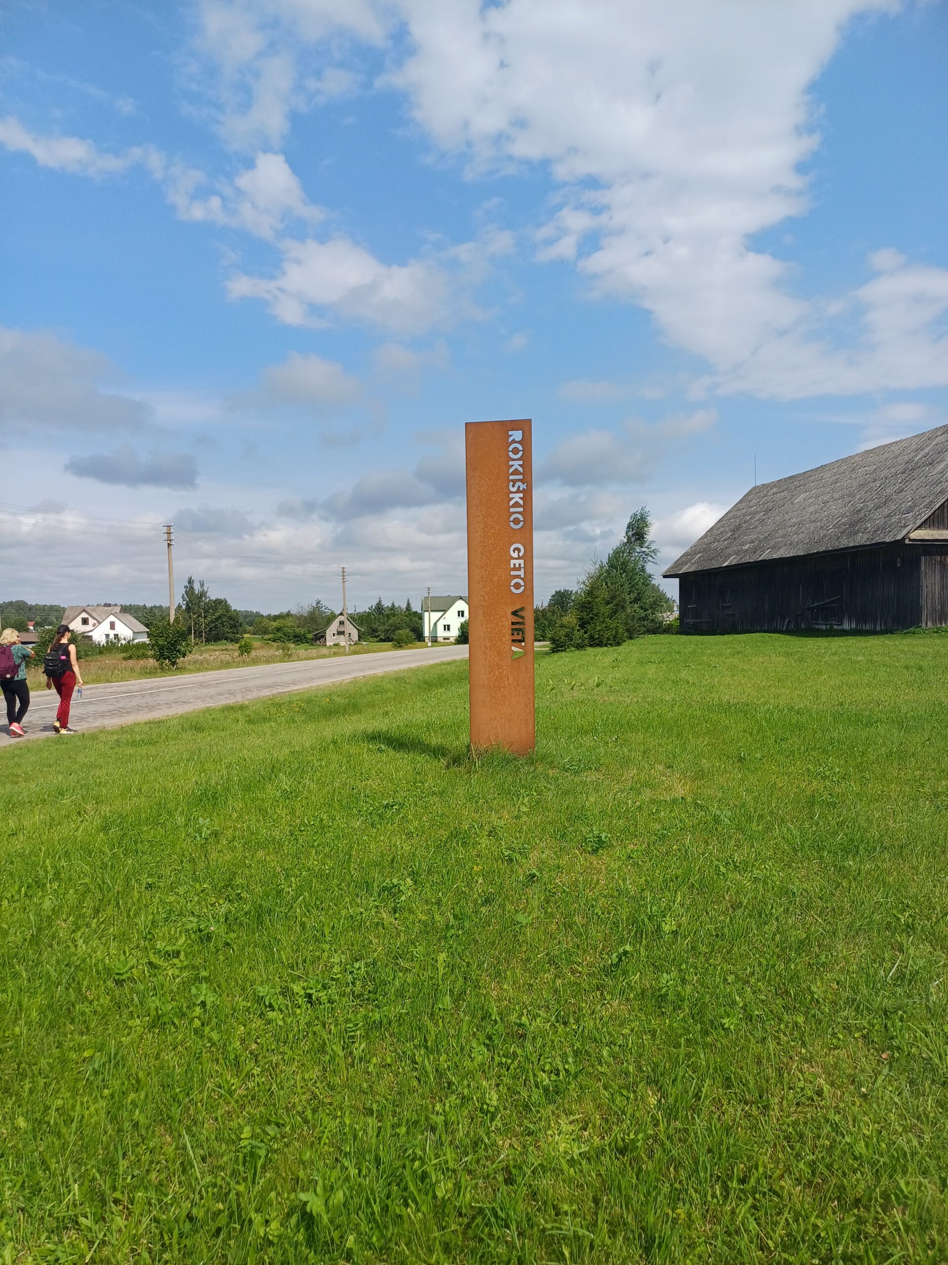 Sutartą valandą užslenka debesėlis ir kokias penkias minutes, kaip įprasta šią vasarą, bando lyti. Bet pakanka žvilgtelėti į dangų, ir lietus liaujasi. Pulkelis pajuda prie buvusio Rokiškio geto vietoje pastatyto ženklo. Čia Justinas trumpai prisimena visas mūsų rajone žinomas žydų žudynių vietas. Ne tik Velniaduobės mišką, bet ir Steponių, Vyžuonos, Sacharos, Trako-Pempiškio miškus, kur žydai buvo šaudomi dar iki Rokiškio geto likvidavimo, Degsnės mišką, kur tų pačių metų rugpjūčio 25 d. sušaudyti Antanašės dvaro teritorijoje įkurtoje laikinojoje žydų koncentracijos stovykloje kalinti žydai, daugiausia moterys ir vaikai.