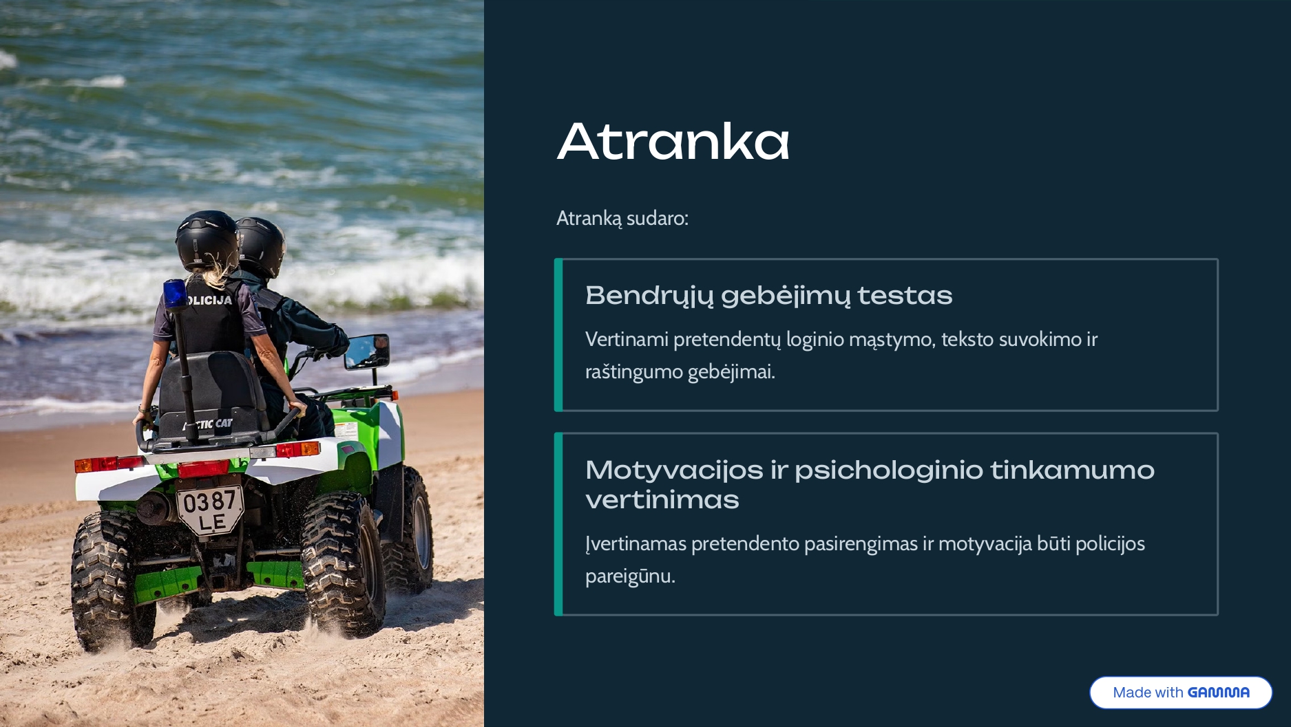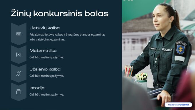 - Psichologinis tinkamumas: vertinama motyvacija ir pasirengimas emociniams tarnybos iššūkiams.