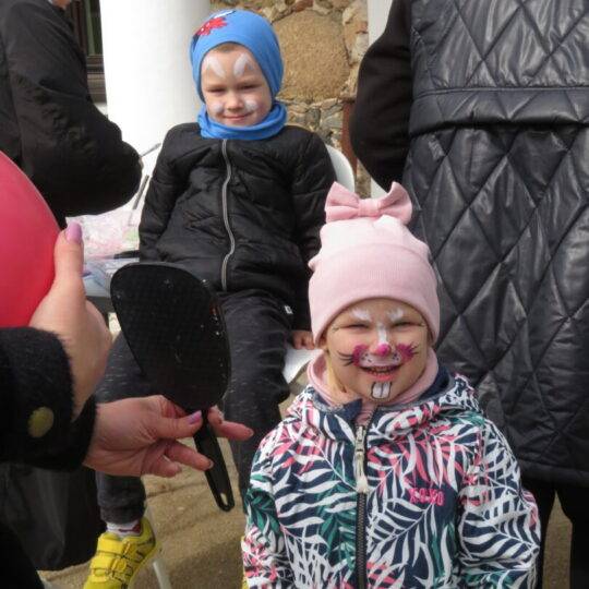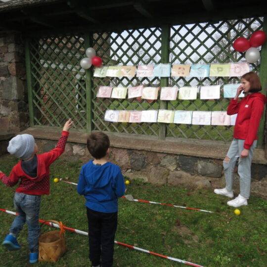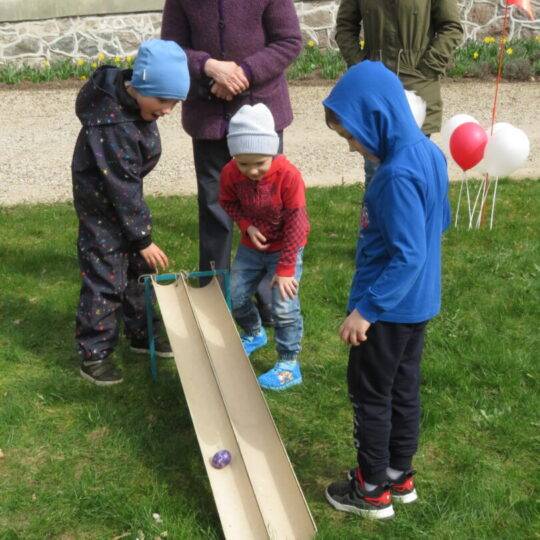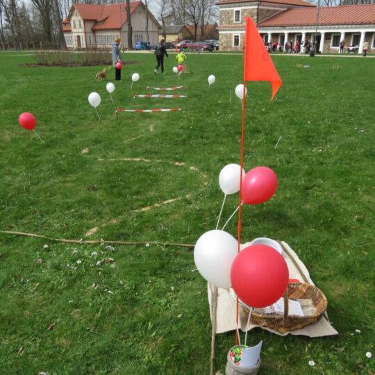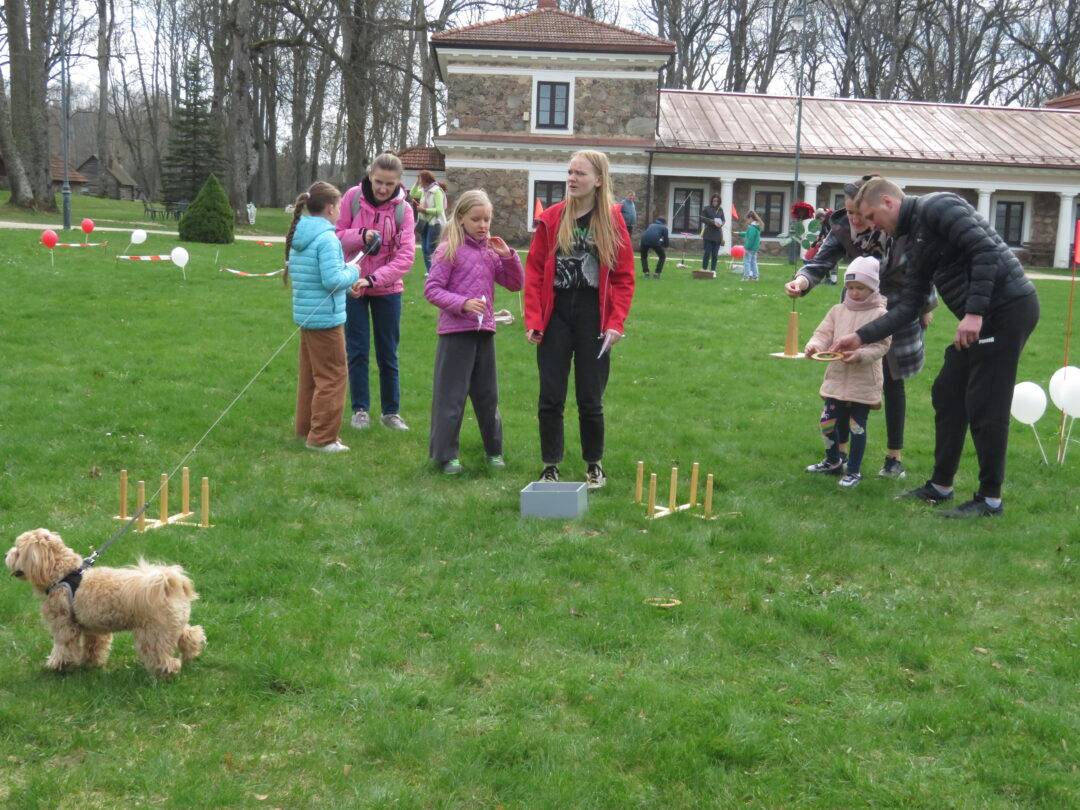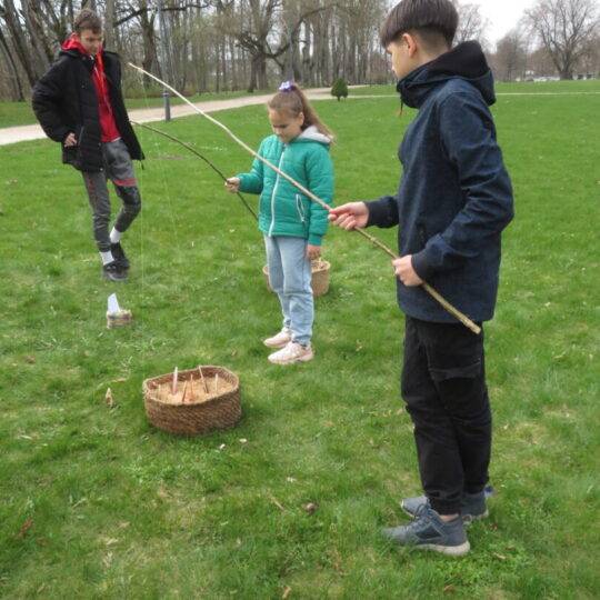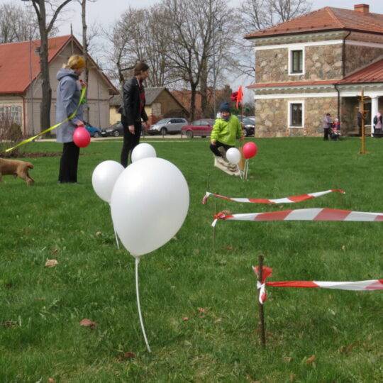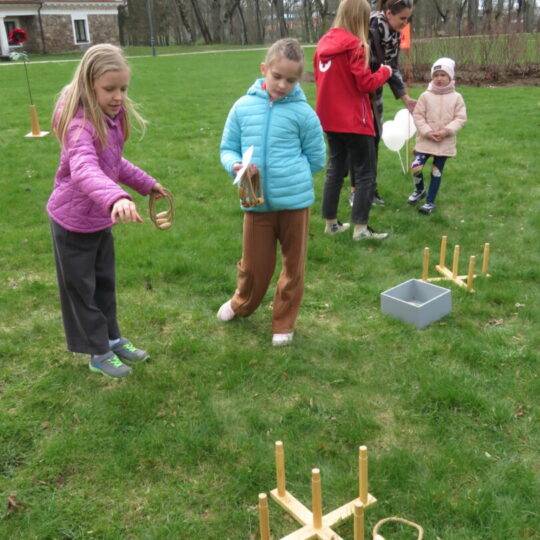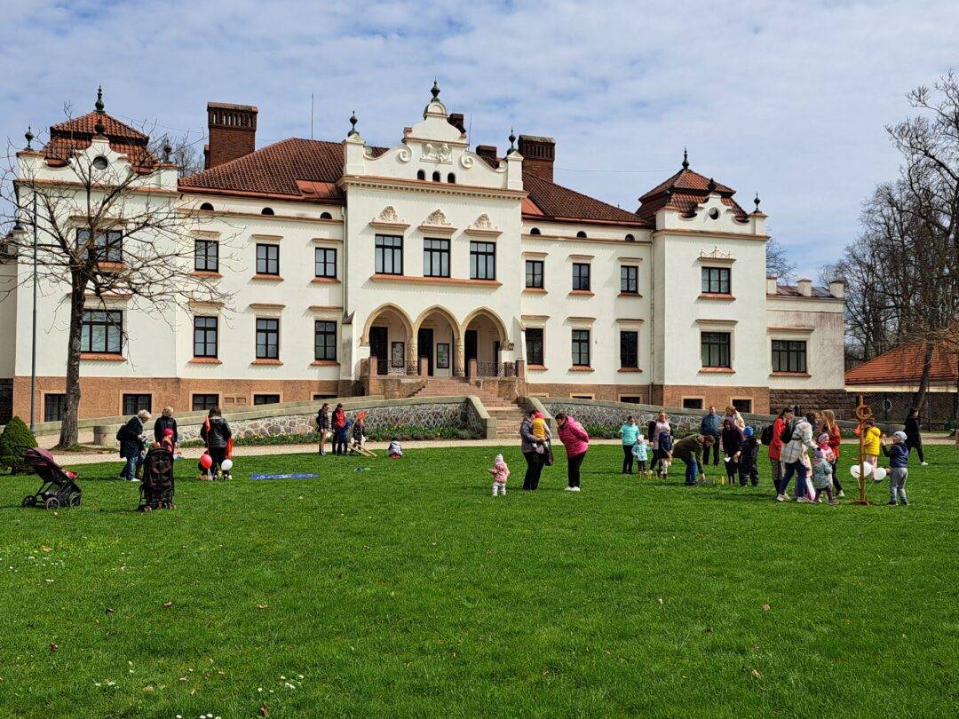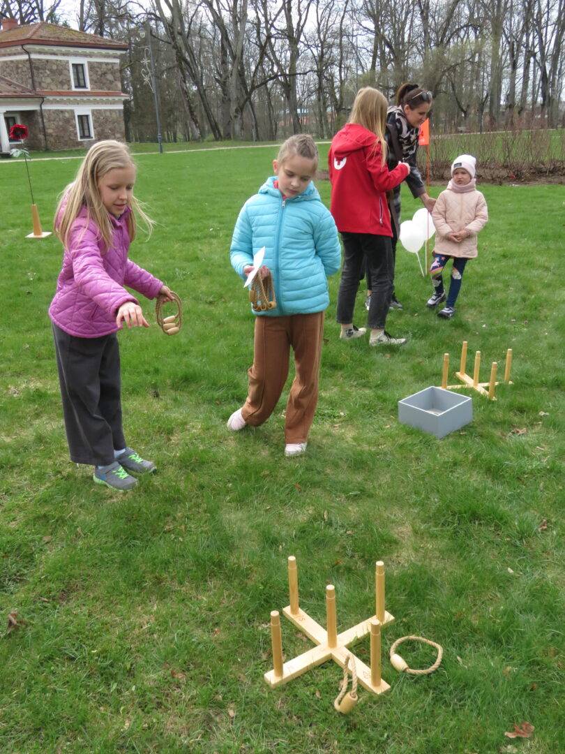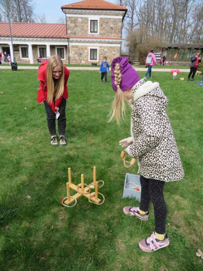 Po edukacijos šeimos skubėjo į pievelę priešais dvaro rūmus, kur jų laukė keletas užduočių: meškere buvo galima „susižvejoti“ suvenyrinį margutį, parungtyniauti kiaušinių ridenimo varžybose, įveikti estafetę, išbandyti rankos taiklumą.