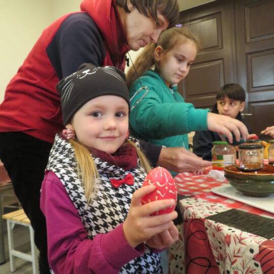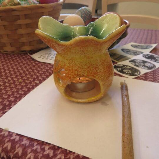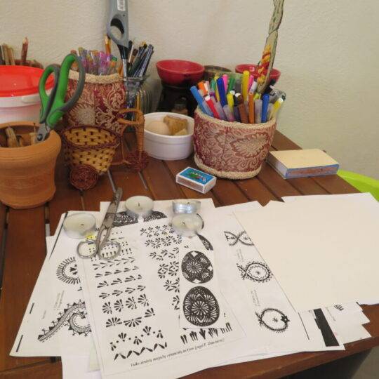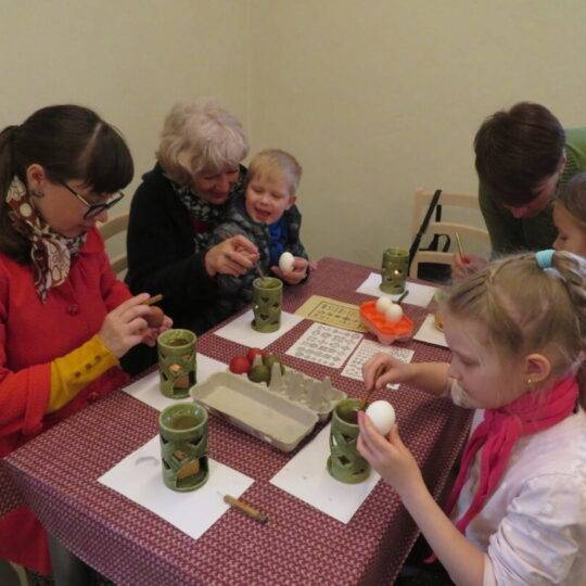 Į kiaušinių marginimo vašku edukaciją susirinko kaip niekad daug vaikų su mamomis, močiutėmis. Viena šeima iš namų prisinešė netgi žąsų kiaušinių. Paklausti, ar juos specialiai įsigijo, sakė, jog niekur nereikėjo ieškoti, mat šiuos paukščius auginasi patys.