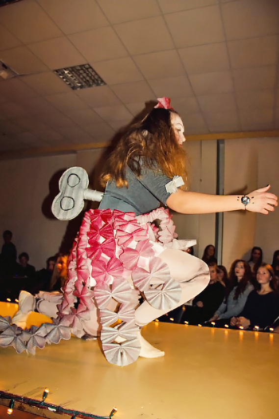 Ant podiumo – nuo prisukamų lėlių iki undinėlių, nuo siaubo fantazijų iki ateivius primenančių drugelių, nuo šėtoniškojo augintinio iki nerealaus grožio mistinių gyvūnų… Visa tai išvydo į renginį atėję moksleiviai, mokytojai, šventės svečiai. Įspūdingiausios akimirkos – “Gimtajame Rokiškyje”.