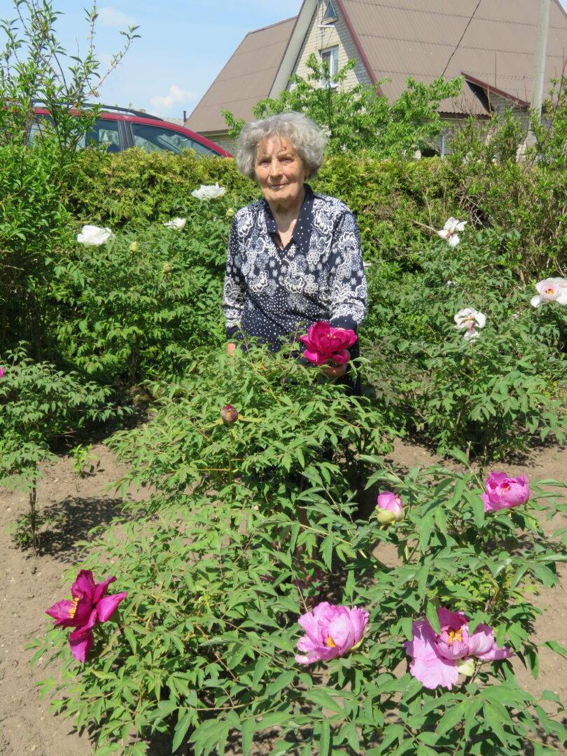 Išradinga, kruopšti moteris yra ne tik tautodailininkė, bet ir gėlių mylėtoja. Šiuo metu jos kieme visu grožiu išsiskleidę balti, rožiniai, raudoni medėjančių bijūnų žiedai. Jų grožis trumpalaikis. Pasak šeimininkės, žiedai nubyra maždaug per savaitę. Saulėtoje atokaitoje jie ištveria trumpesnį laiką, o pavėsyje arba ūkanotu oru džiugina ilgiau.