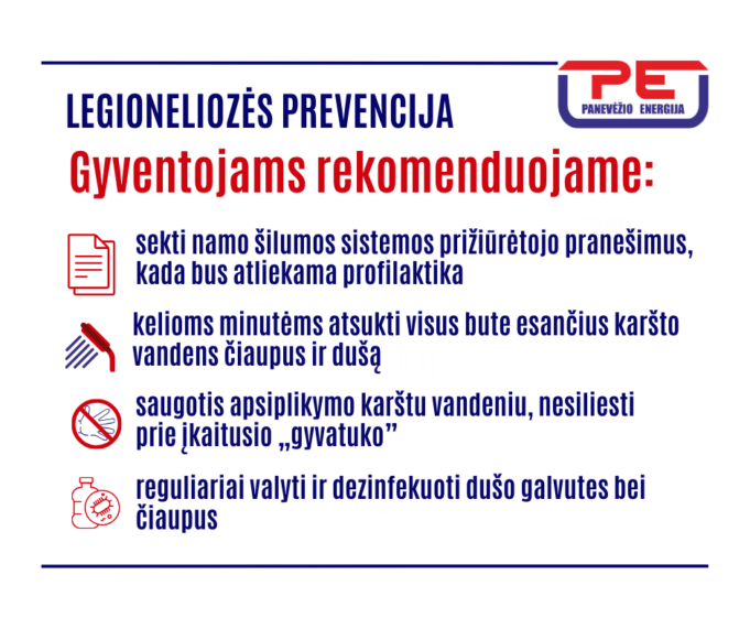 Profilaktikos metu gyventojai turėtų kelioms minutėms atsukti visus karšto vandens čiaupus, įskaitant dušą, ir leisti vandeniui nubėgti. Taip užtikrinamas Legionella bakterijų sunaikinimas vidaus sistemose.