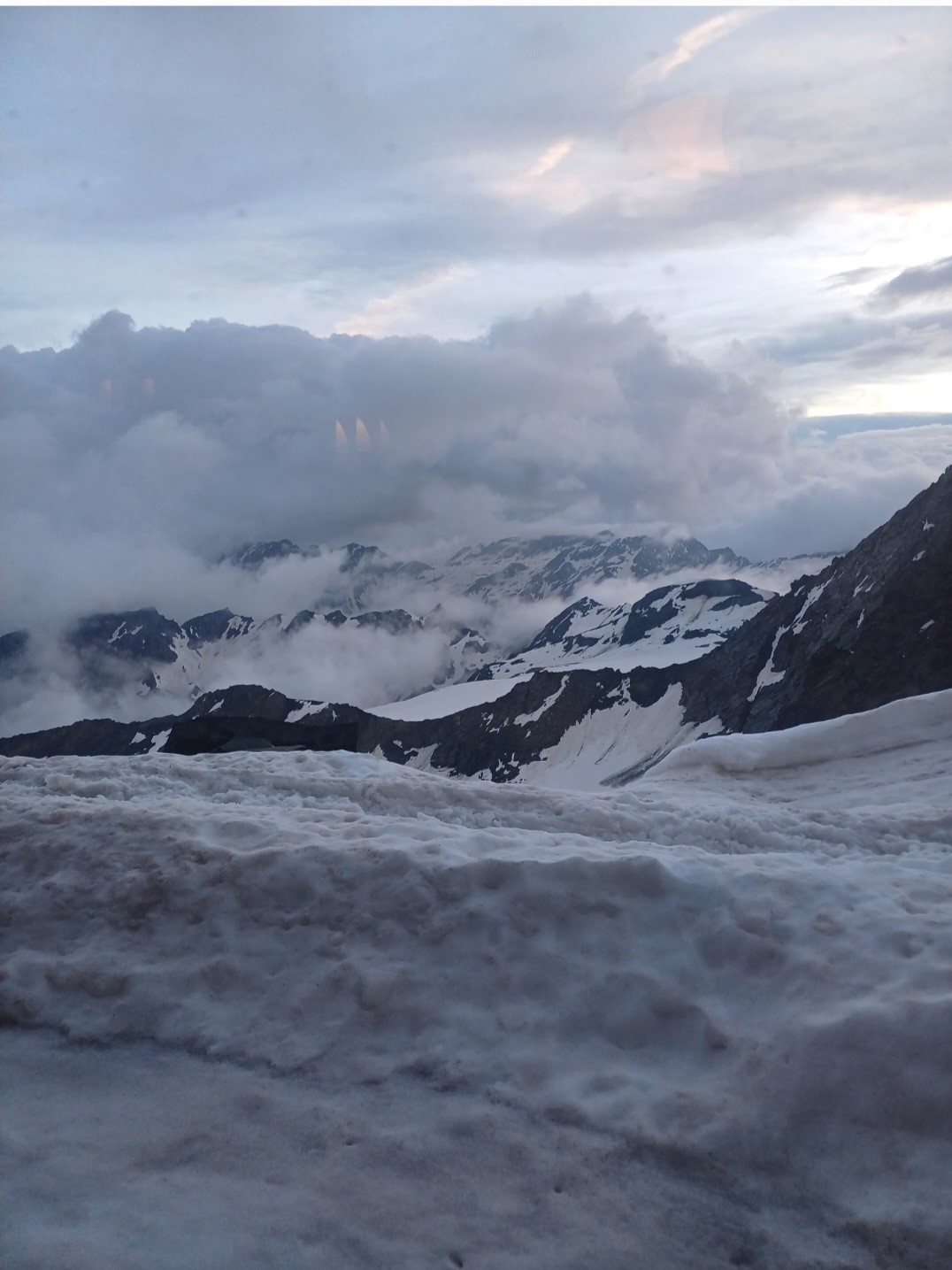 Po Grosgloknerio nuvykom į Monblaną. Trasa jau buvo „pačiupinėta“ pernai. Fiziškai lipimas jau buvo lengvesnis. Buvau tam pasiruošusi. Bet kalnas – ne viešbutis. Patogumų ten neužsisakysi. Pakilus maždaug į 3000 metrų aukštį, mus talžė didžiulis vėjas su sniegu, lietumi, tirštu rūku, kai nieko nesimato 2 metrų atstumu.