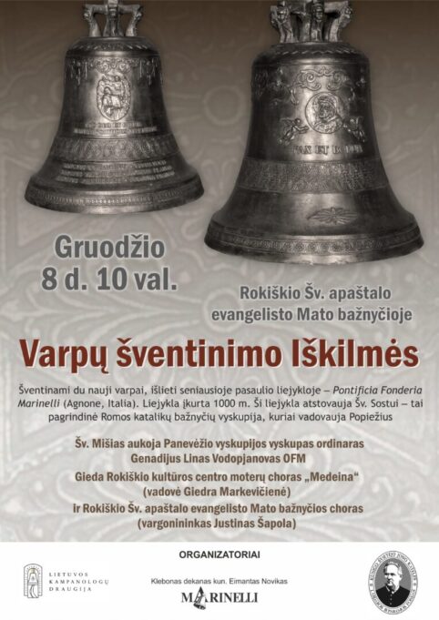 Varpai išlieti Italijoje, Agnonė miestelyje, seniausioje pasaulio liejykloje „Pontificia Fonderio Marinelli“. Liejyklos istorija fiksuojama nuo 1000-ųjų. Garbingas ir svarbiausias liejyklos akcentas – 1924 m. popiežiaus Pijaus XI suteikta privilegija, nuo tada kiekvienas varpas žymimas specialiu pontifiko ženklu. Italijos prezidentas 1954 m. Marinelli šeimai suteikė aukso medalį už seniausią ir ištikimiausią savo tautai veiklą. Šalia liejyklos 1999 m. atidarytas istorinis muziejus, kuriame eksponuojama įspūdinga varpų kolekcija, siekianti XI a., taip pat įvairūs vertingi dokumentai, rankraščiai, reti tekstai. Šiuo metu liejyklai vadovauja broliai Armando ir Pasquale Marinelli. Teigiama, kad iš čia iškeliaujančių varpų skambesys pasižymi sodrumu.