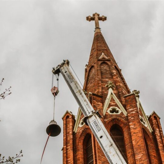 Galingos technikos, kurią skyrė UAB „Rokmelsta“, ir savanorių pagalba šie abu varpai į varpinę pakilo vos per 20 minučių, o jųį kėlimas buvo palydėtas stebinčiųjų plojimais.