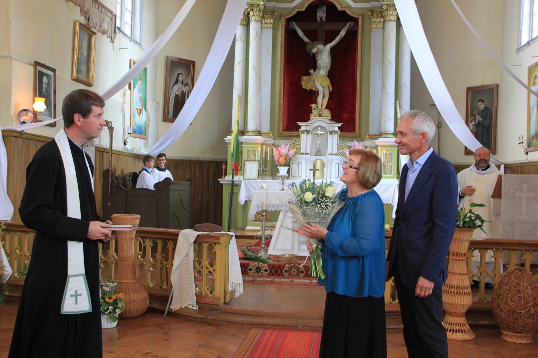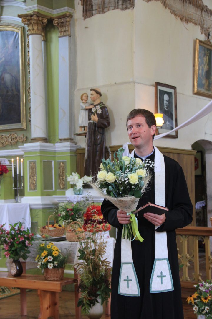 Metų tarnystės Onuškio parapijoje proga pasveikintas klebonas Aivaras Kecorius. Jam “ilgiausių metų” pirmasis užtraukė kunigas Laimonas, emocingai pakvietęs visus palinkėti kolegai sėkmės. Beje, Obelių klebonas Žolinės dalyvius nustebino – jis pamokslą sakė ne nuo Dievo stalo, kaip įprasta, o iš įspūdingos architektūros ir puošybos sakyklos, kuri daug metų buvo nenaudojama, nes į ją vedantys laiptai buvo nesaugūs.