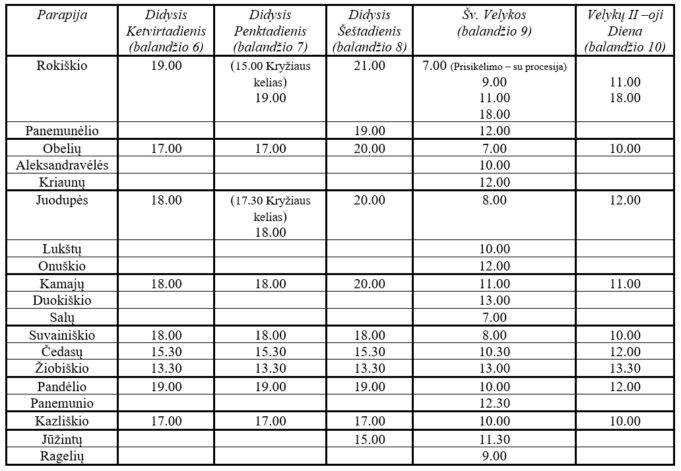Didžiojo Tridienio ir Šv. Velykų PAMALDŲ laikas Rokiškio dekanato parapijose