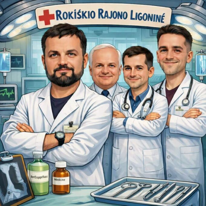 Rokiškio rajono ligoninei Chirurgijos profilio skyriaus komandos portretą sukūrė dirbtinis intelektas. Nuotraukoje (iš kairės): Artūras Vaičius, Bernardas Sopranas, Andrius Račkauskas ir Arvydas Skorupskas.