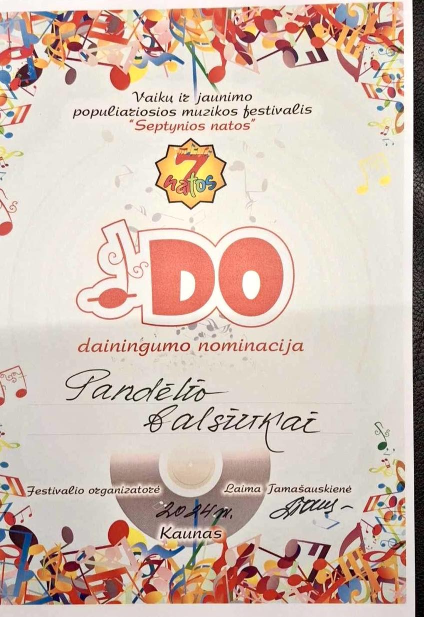 Pirmuosius žingsnelius žengiančios „Pandėlio balsiukų“ pirmokės Urtė ir Ema Kulnickaitės, Milė Lūžaitė ir Irmina Pauliukevičiūtė debiutavo festivalyje ir jame pelnė DO – dainingiausio kolektyvo – nominaciją.