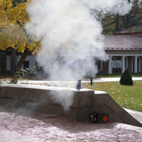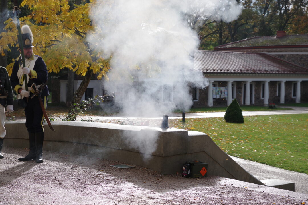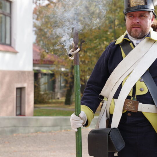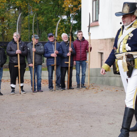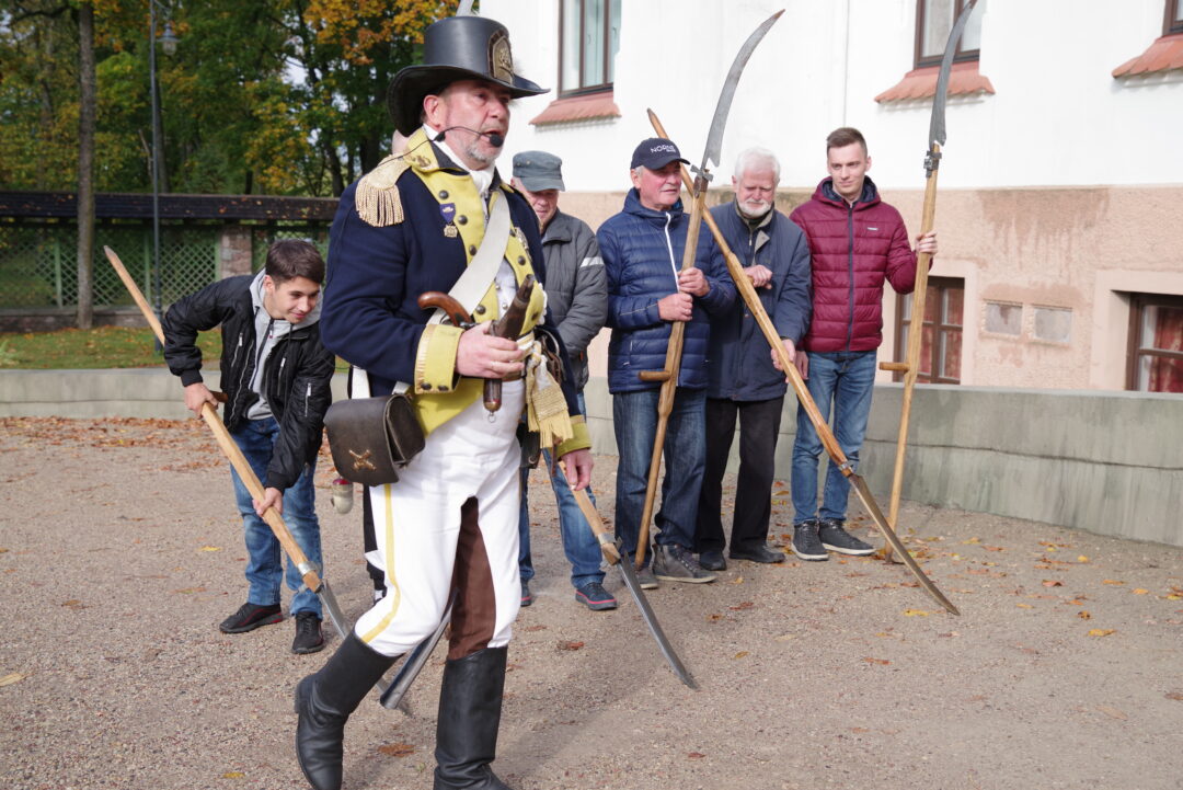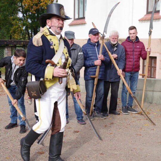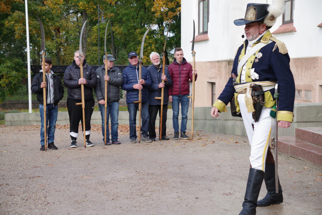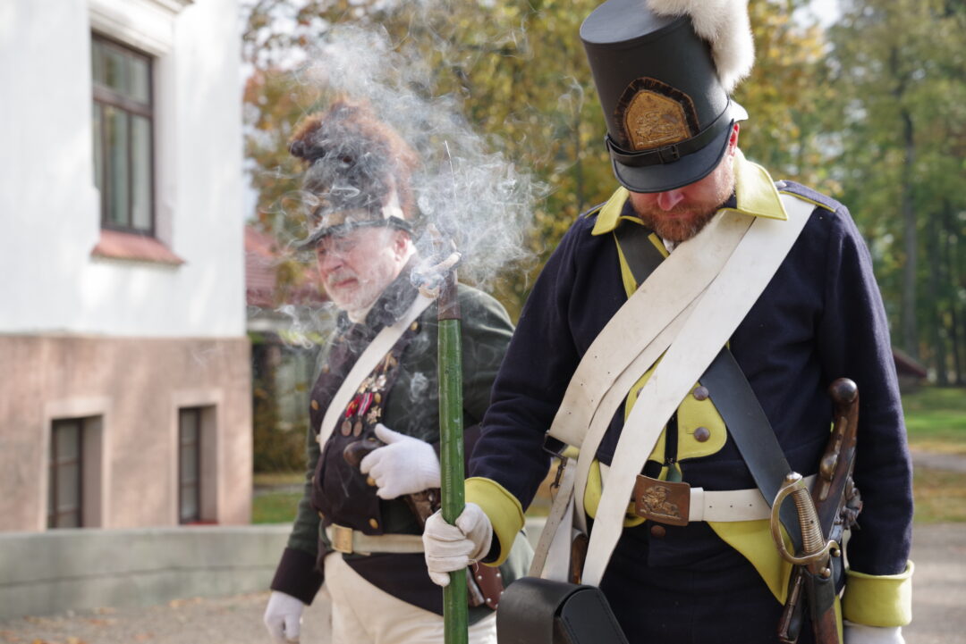 Svečiai pristatinėjo ginklus, o prie dvaro aidėjo Kauno pavieto laisvųjų šaulių iššautos salvės, dalgininkų grupė iš žiūrovų vietoje mokėsi ir atliko kovinį veiksmą. Anot renginio organizatorės muziejininkės Laimos Skardžienės, tokio renginio idėją padiktavo šiuo metu dvare veikianti Aleksandro Vasiljevo Napoleono laikų mados paroda ir tai, kad šiemet sukanka 210 metų nuo Napoleono žygio per Lietuvą, kuris turėjo ne tik neigiamą įtaką. Po jo bajorai tikėjosi tokių pat teisių ir laisvių, kurias gavo Mažoji Lietuva po Tilžės taikos sutarties. „Norėjau, kad muziejaus lankytojai matytų ne tik pliką madą, bet ir galėtų susipažinti ir su kontekstais“, – sakė L. Skardžienė.