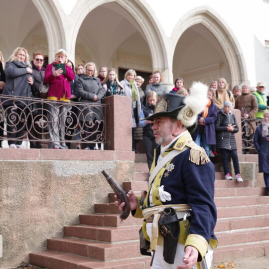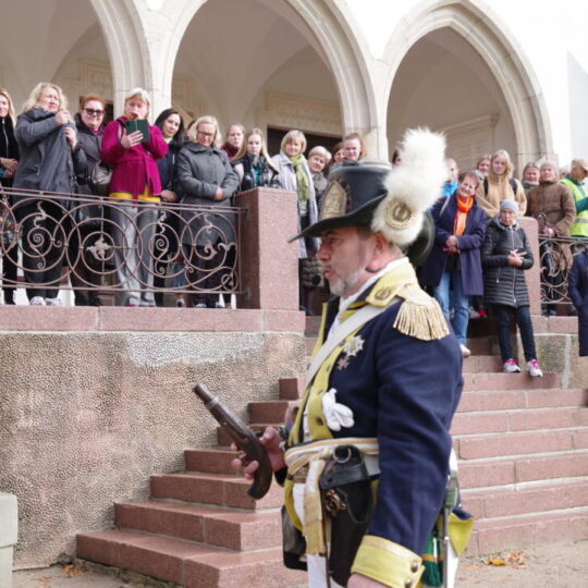 Rokiškio teatro aktoriai parodė teatralizuotos ekskursijos „Sofija ir imperatorius“ ištrauką, kuri primena mūsų grafaitės Sofijos Tyzenhauzaitės pažintį su Napoleonu. Pranešimą „Napoleonas. Laisvė. Lietuva“ skaitė lektorė Fausta Pabiržienė. Ji pasakojo apie politinį-kultūrinį laikmečio kontekstą.
