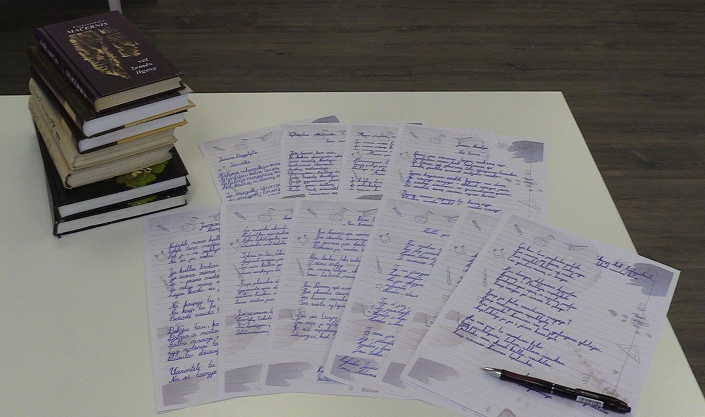 Dailiai ir taisyklingai mokinių parašyti eilėraščiai išeksponuoti bibliotekoje. Džiaugiamės penktokų iniciatyvumu ir dėkojame lietuvių kalbos mokytojai Rasai Čižauskienei.