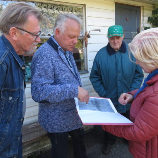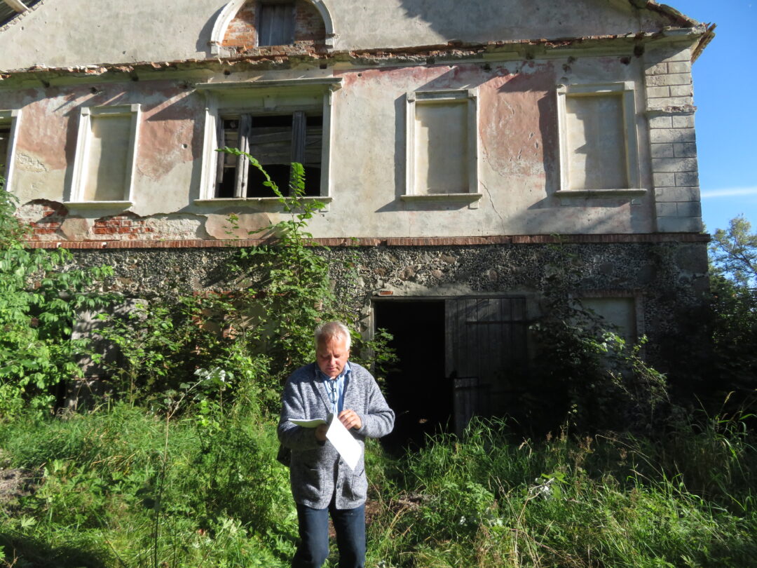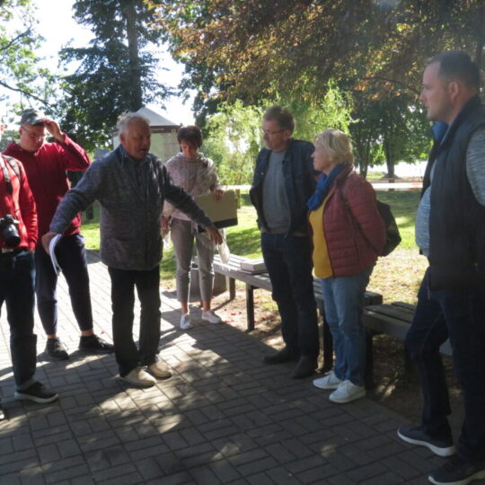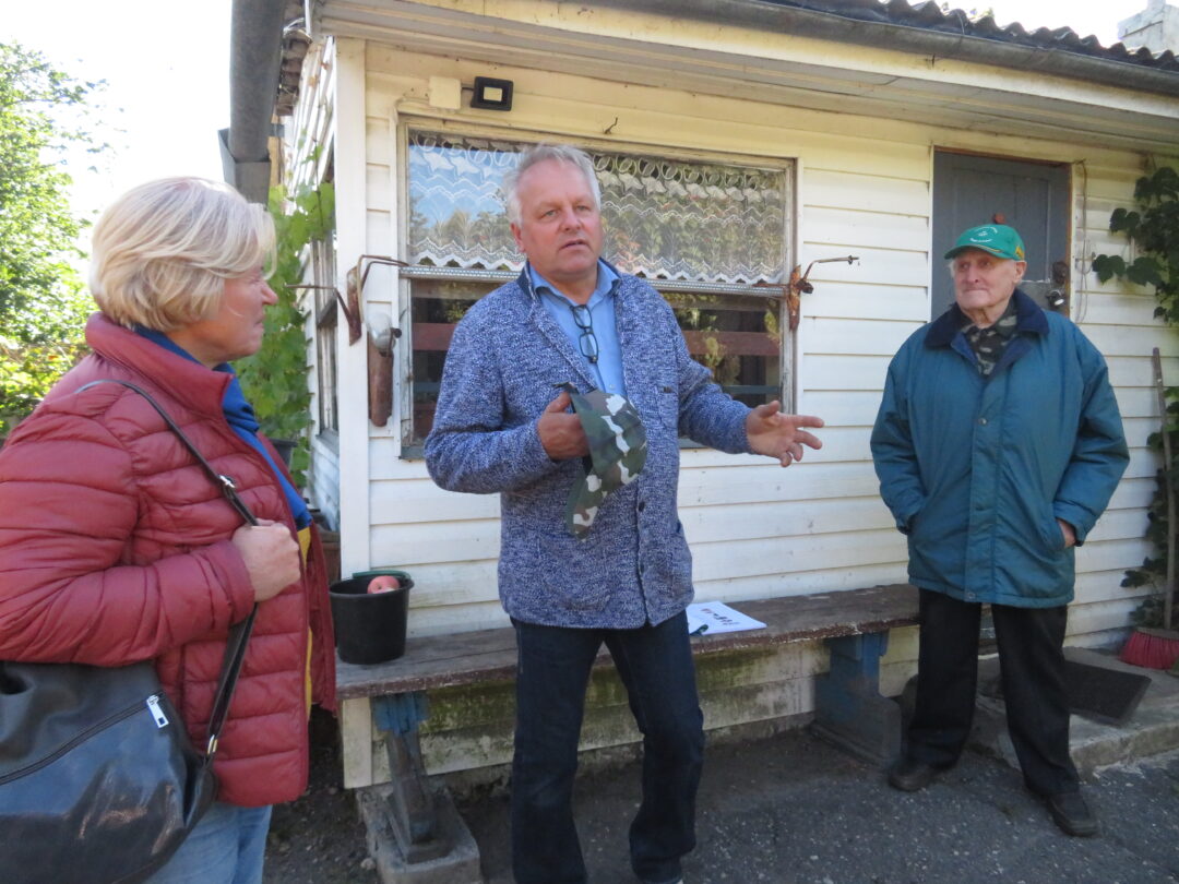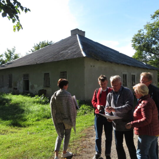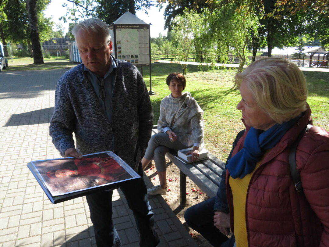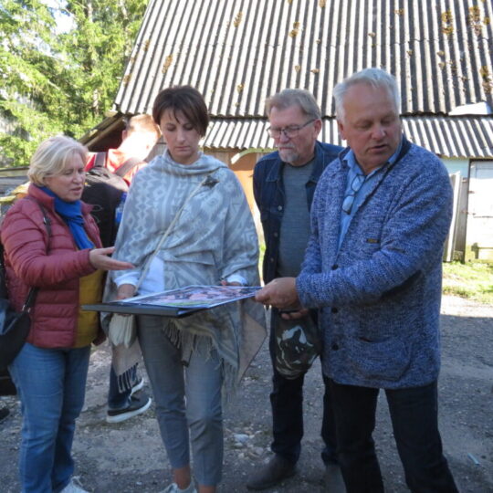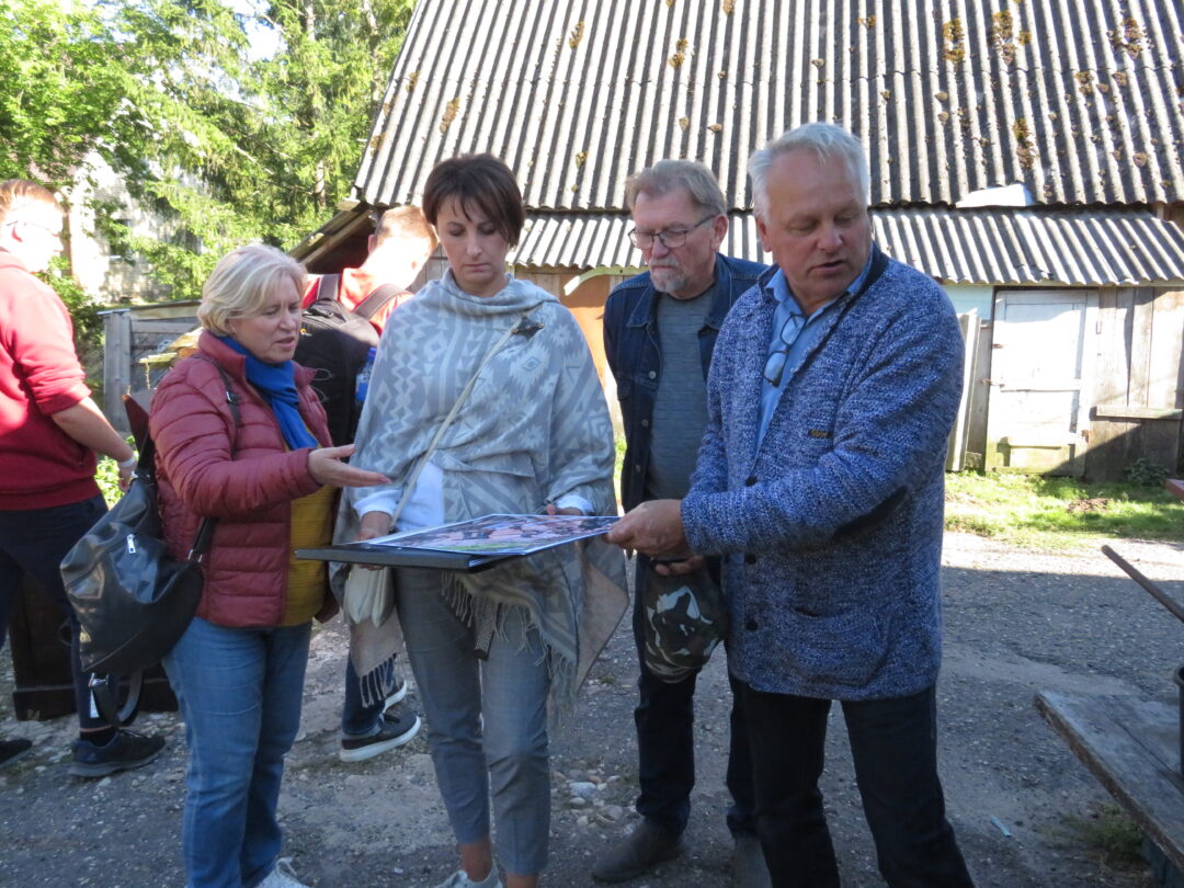 Keliavusieji po senąją dvarvietę, apžiūrėjo dabar jau išlygintas kasinėjimų vietas, maloniai pabendravo su šeimininku.