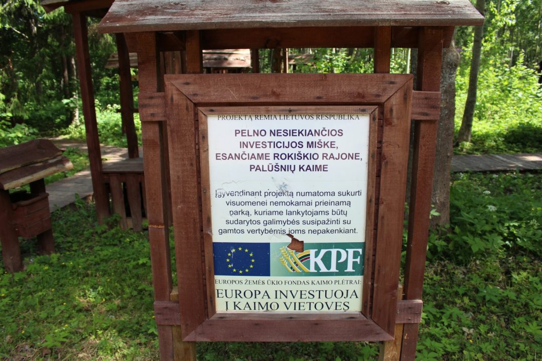 Pirmoji stotelė – Palūšnių kaimo (Rokiškio kaim. sen.) parkas, nuo miesto nutolęs vos kelis kilometrus. Tiesa, jį surasti buvo sunku, prireikė pagalbos, nes nuorodos neradome nė vienos. Vos įkėlus koją į parką, prieš akis išdygo skelbimo lenta, kurioje didelėmis raidėmis pranešama, jog Europa investuoja į kaimo vietoves. Teritorijoje – dviprasmiškas vaizdas: pasivaikščiojimo takais sujungtos pavėsinės, gausu medžio skulptūrų, atrakcionų, laužaviečių, tvenkinėlis, suoliukai. Tačiau aplinkui ne gyvos dvasios, o parką bando „praryti“ laukinė gamta. Tiesa, takelių pakraščiai apgenėti. Bevaikščiojant kilo daug minčių: kam įrengus tokį parką, jį slėpti nuo žmonių? Juolab kad minėta lenta skelbia, kad įgyvendinus šį projektą numatoma sukurti visuomenei nemokamai prieinamą parką, kuriame lankytojams būtų sudarytos galimybės susipažinti su gamtos vertybėmis joms nepakenkiant.