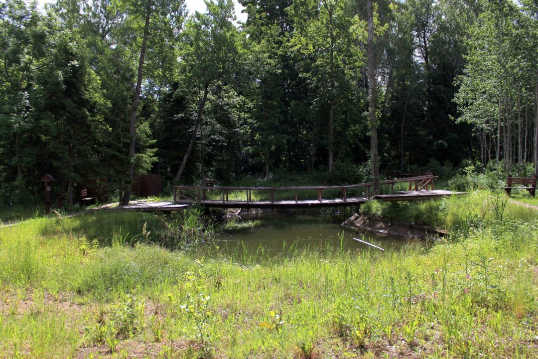 Vaizdas pasitiko dar liūdnesnis: aplinkui tie patys takai, skulptūros, pavėsinės, tvenkinys ir kadaise pjauta žolė, tilteliu per tvenkinį žengti nebesaugu – laikas jį negailestingai paveikė. Matyti, žmogaus koja čia seniai buvusi. Viskas pamiršta ir pūva akyse.