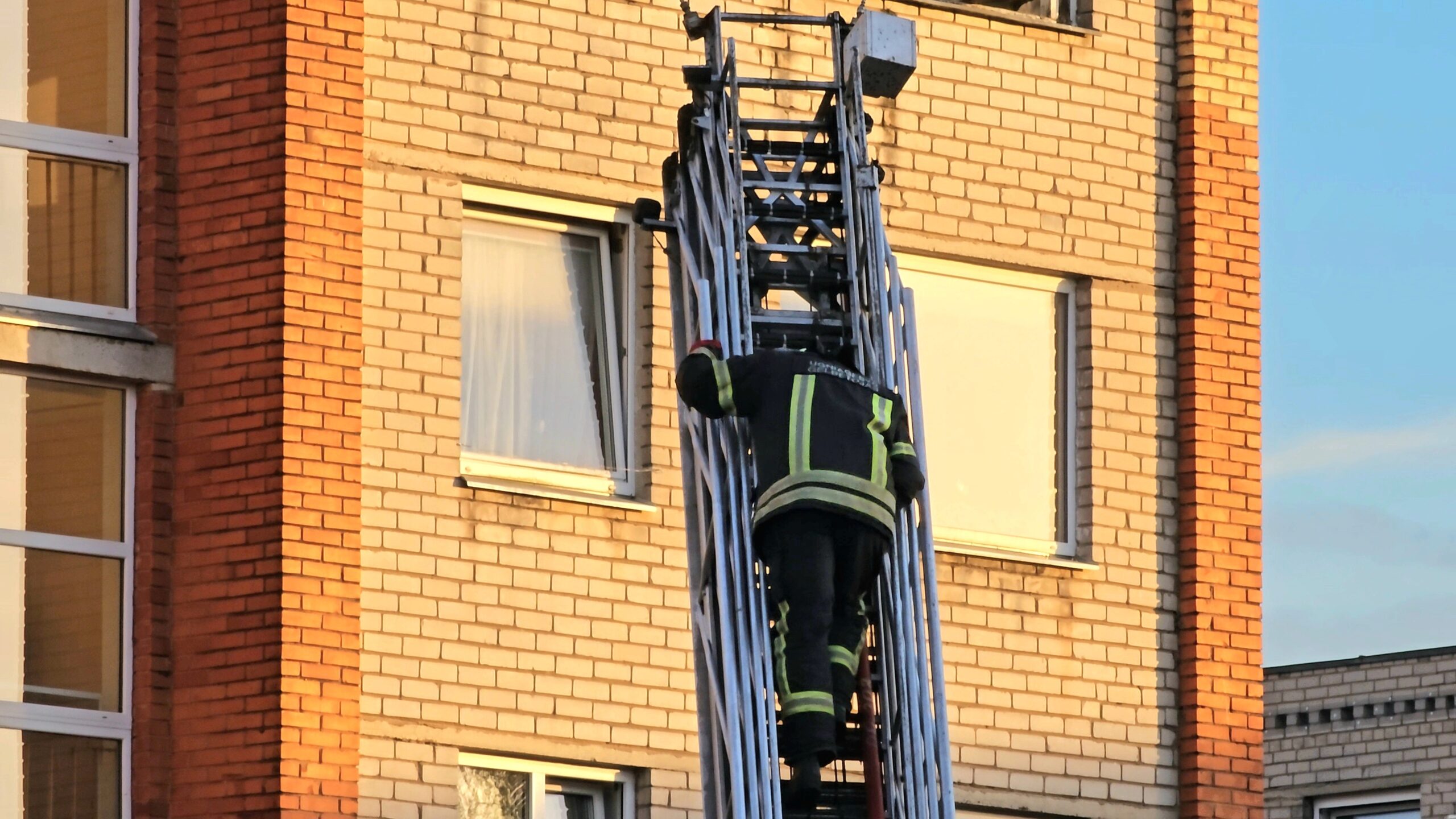 Rokiškio ugniagesiai gelbėtojai į butą pateko kopėčiomis ir gaisrą užgesino.
