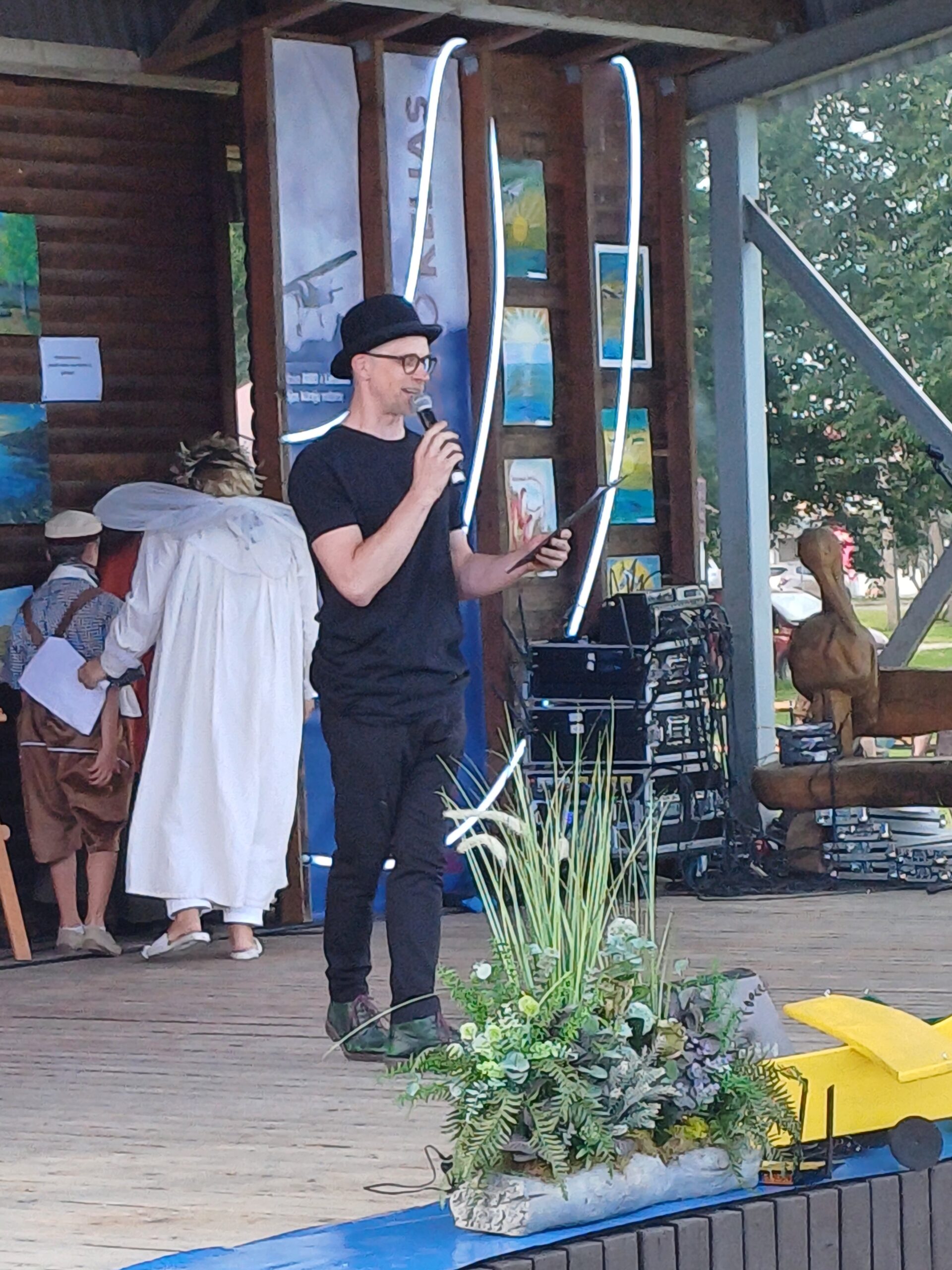 Prasidėjus meninei šventės svečių programai ir į sceną užlipus aktoriui Vytautui Rašimui, fortepijonininkei Nijolei Baranauskaitei bei mecosopranui Raimondai Janutėnaitei su literatūrine muzikos programa „Čiurlionio „Karaliaus pasaka“, publika kiek prasiskirstė – kas prie vaišių, kas prie žaidimų ar pramogų. Bet kai ant scenos pasirodė „Padkava“ iš Šilalės, vadovaujama Alvydo Juodviršio, žiūrovai vėl sugužėjo, tuoj pat atsirado šokančių ir linguojančių – linksmybės vėl įsisiūbavo.