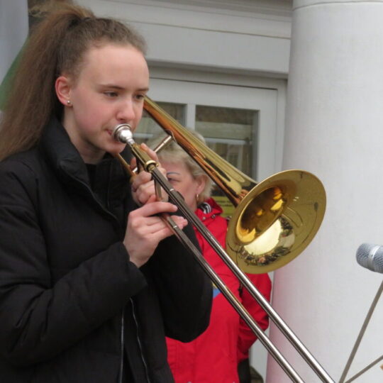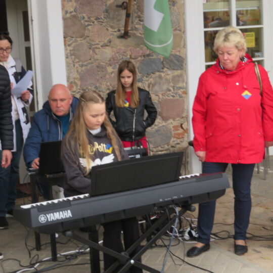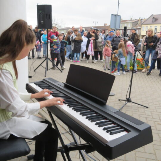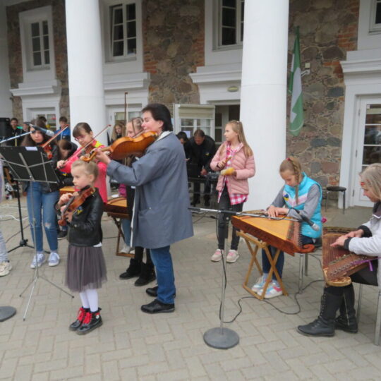 Pasirodymų scena virto Rokiškio turizmo ir verslo informacijos centro pastato prieigos. Kone pusantros valandos trukusiame koncerte buvo visko – nuo kanklėmis atliekamų kūrinių iki pučiamųjų instrumentų, dainininkų.
