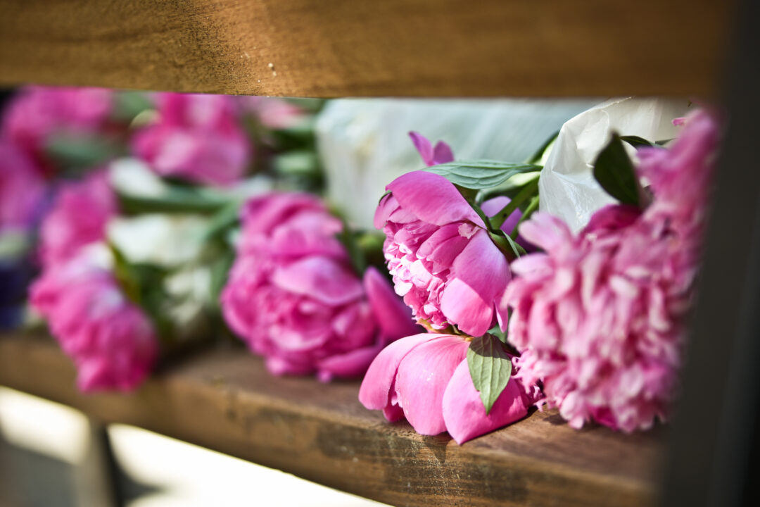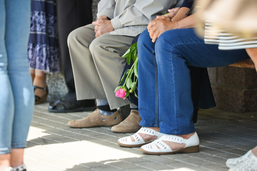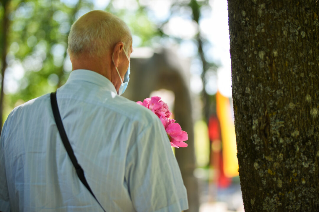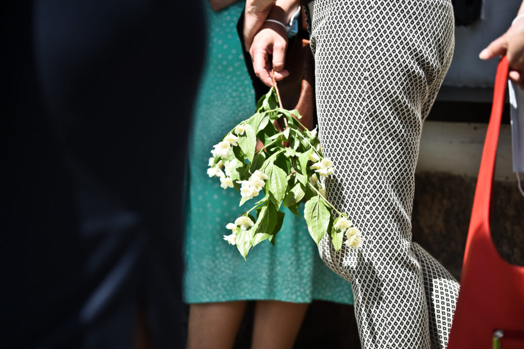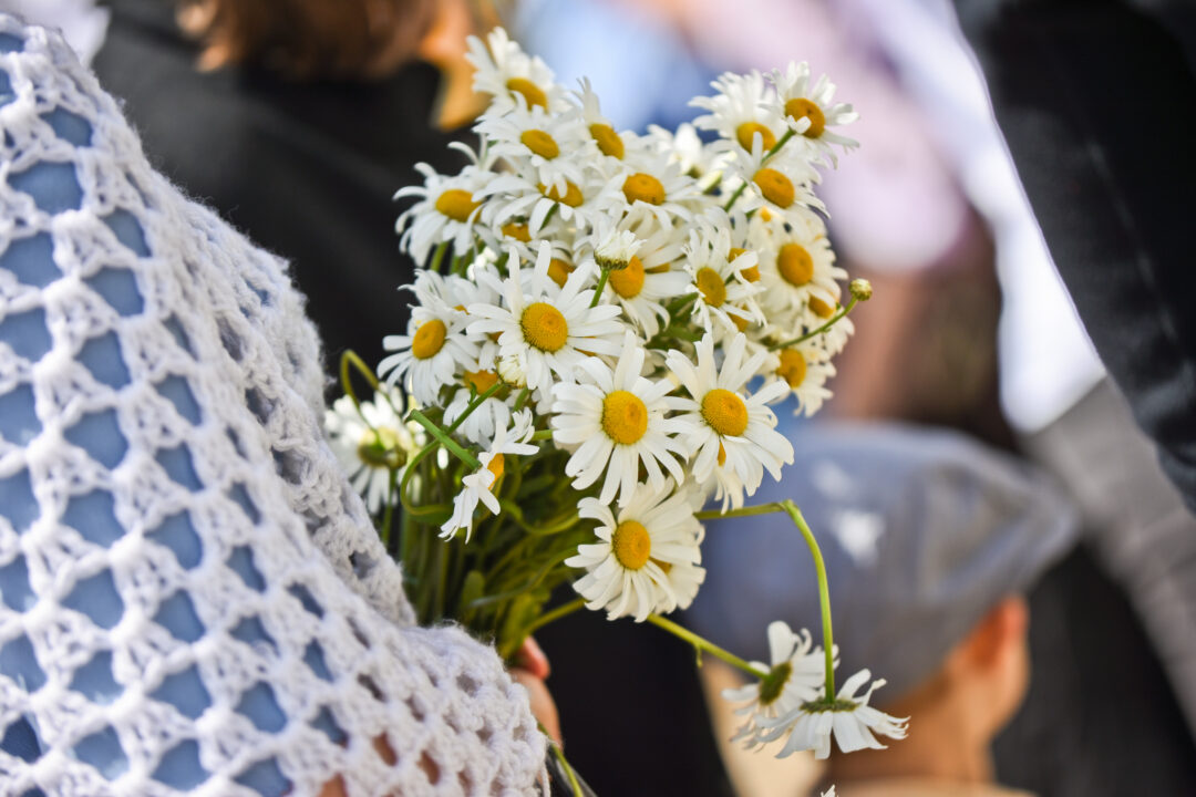 Prie paminklo nugulė gėlių, puokščių bei žvakučių jūra.