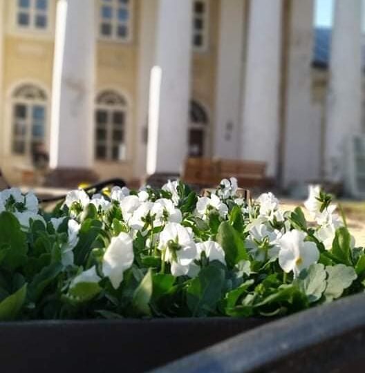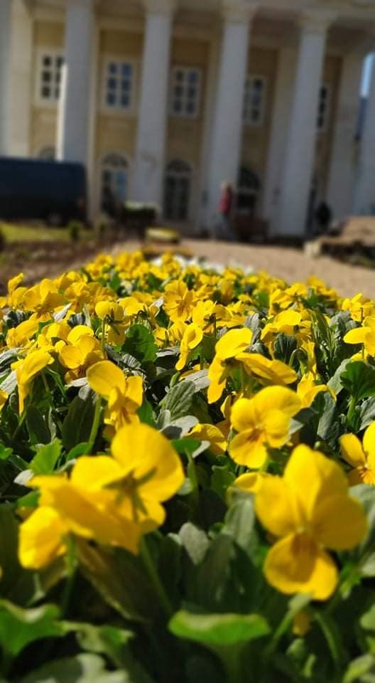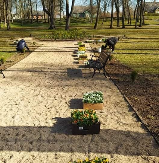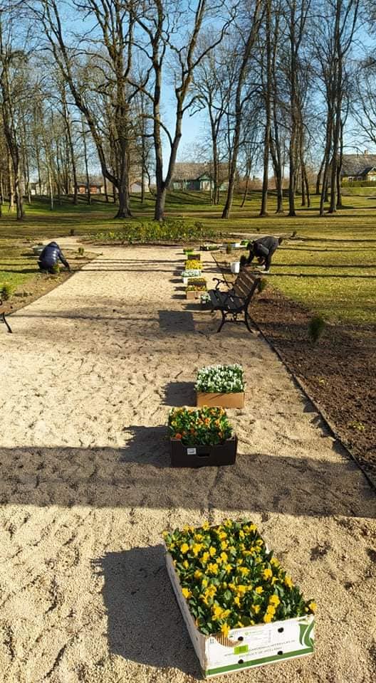 Kiekvieną dieną gerėjant orams, gėlėmis pradėjo puoštis ne tik Rokiškio miesto, bet ir Salų dvaras. Čia baltomis ir geltonomis našlaitėmis pasipuošė dvaro alėja.