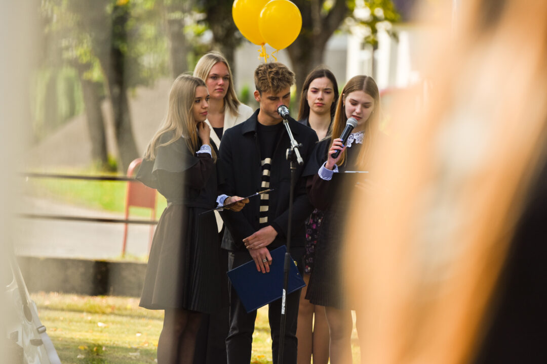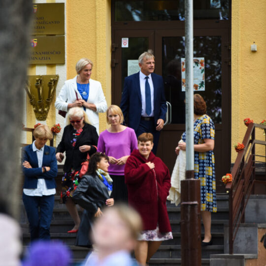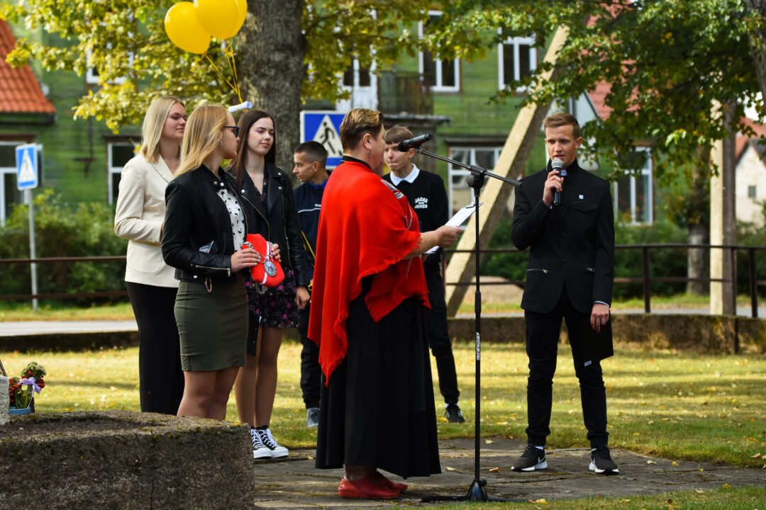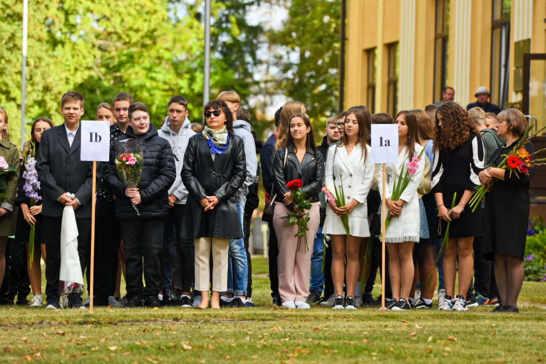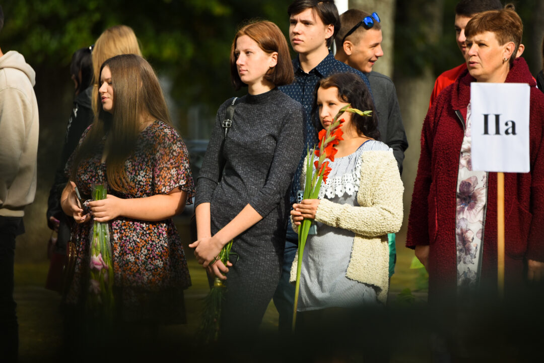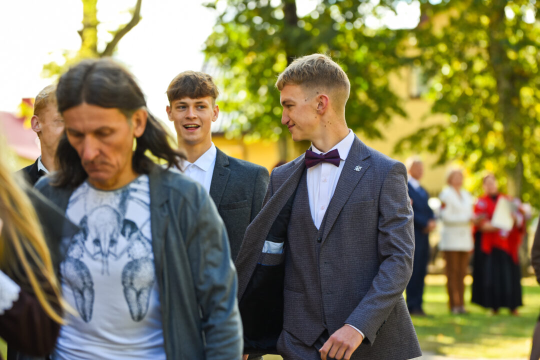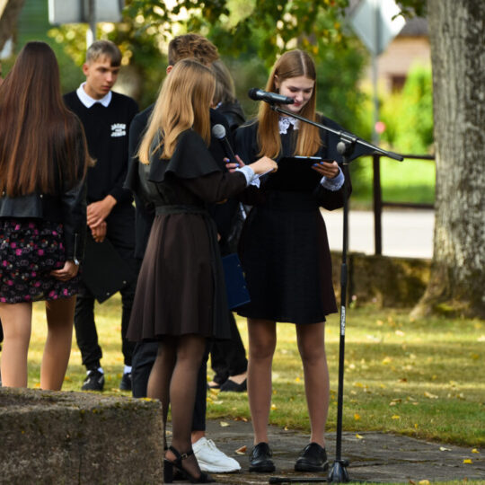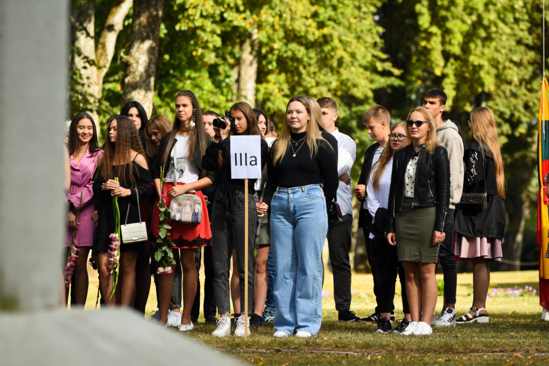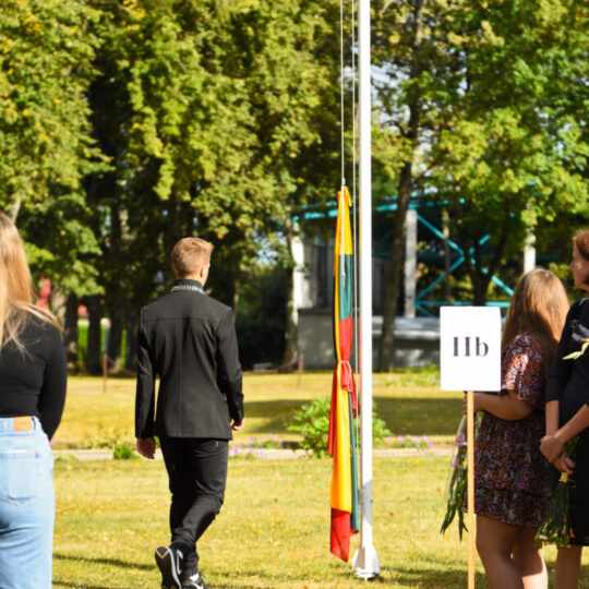 Juozo Tumo-Vaižganto gimnazijos Senieji rūmai šventę pradėjo tradicine dvyliktokų eisena mokyklos link, kur jų jau laukė išsirikiavę kiti mokyklos mokiniai bei mokytojai. Šventė prasidėjo nuo naujojo mokyklos prezidento Pijaus Raugalės inauguracijos. Naujasis mokyklos prezidentas palinkėjo gerų mokslo metų, o dvyliktokams – stiprybės ir darbštumo. Sugiedotas ir J. Tumo-Vaižganto gimnazijos himnas bei tradiciškai iškelta Lietuvos trispalvė. Sveikinimus pratęsė mokyklos direktoriaus pavaduotoja Jolanta Juodinytė. Už praėjusių mokslo metų pasiekimus apdovanoti moksleiviai. Girdėti žodžiai apie Ukrainą, linkėta visiems gerų ir taikių mokslo metų. Prie sveikinimų prisidėjo ir rajono savivaldybės Švietimo ir sporto skyriaus vedėjas Aurimas Laužadis. Jis palinkėjo rimto požiūrio į mokslą ir pagaliau išsirinkti mokyklos direktorių.