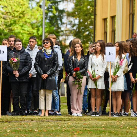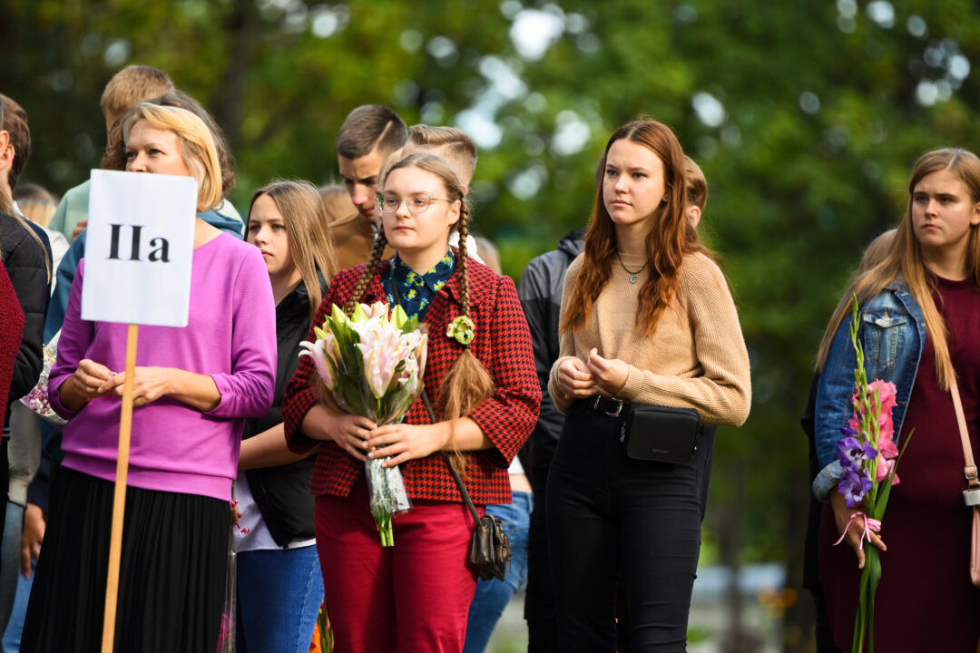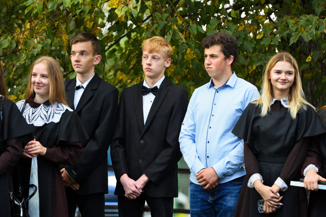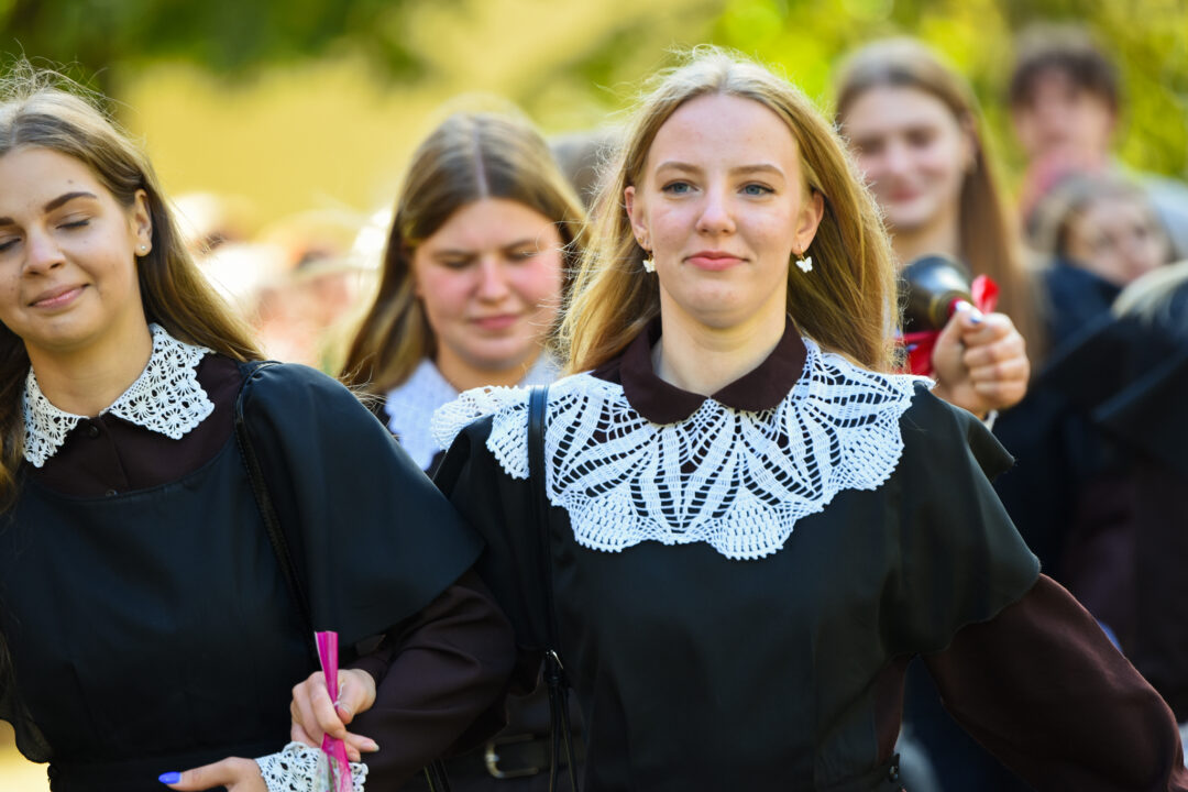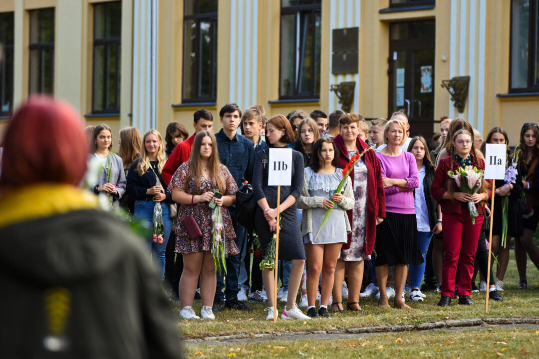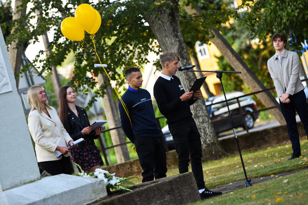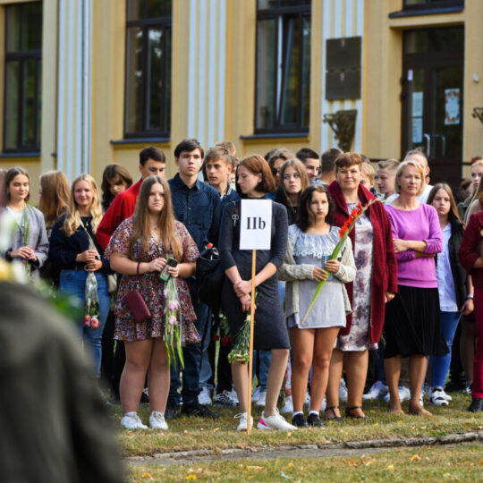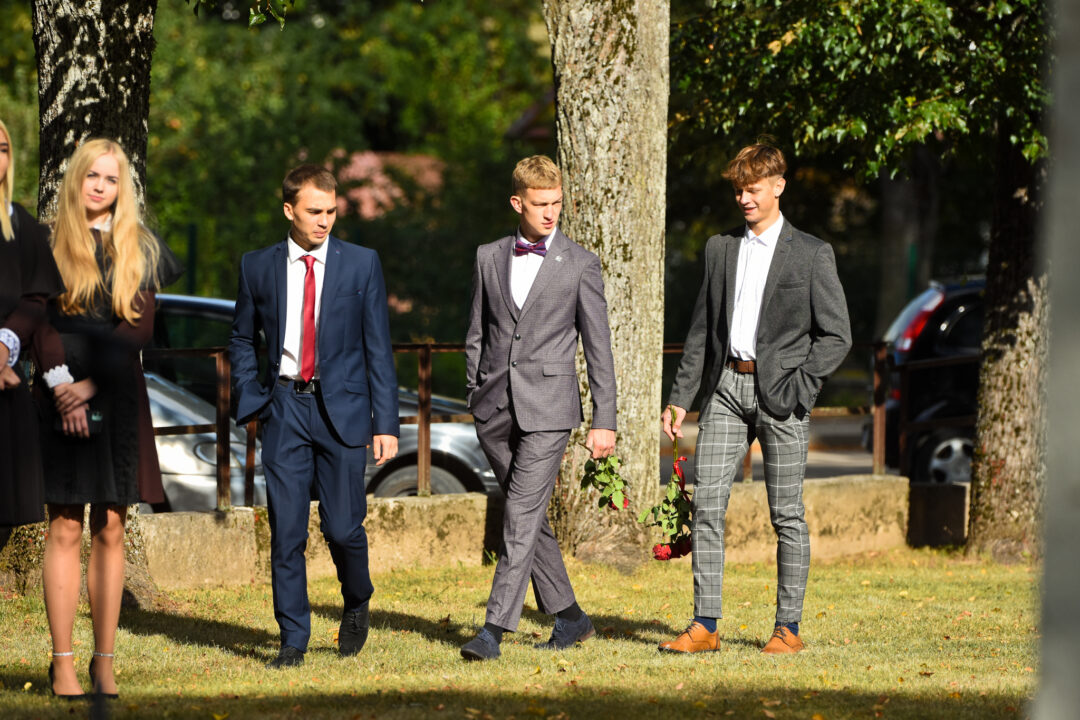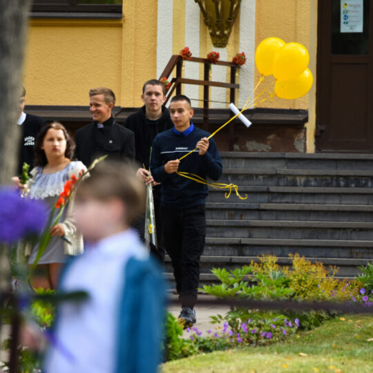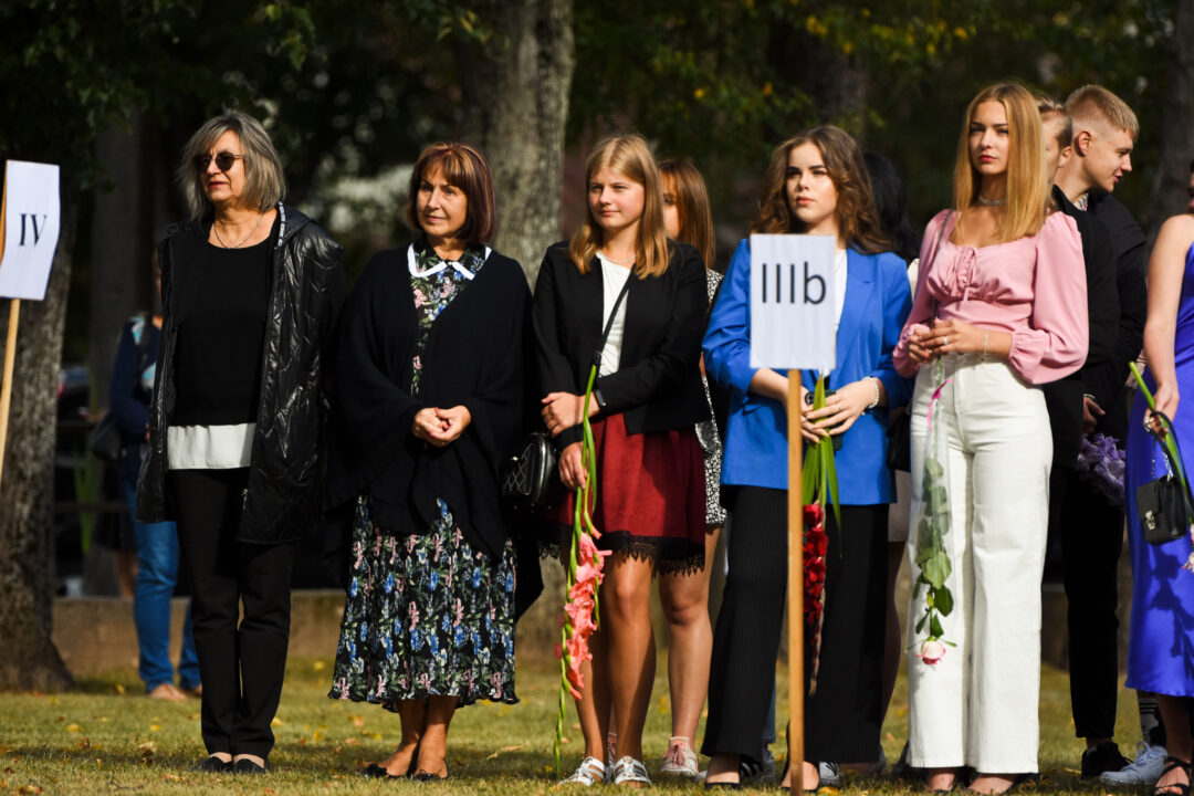 Juozo Tumo-Vaižganto gimnazijos Senieji rūmai šventę pradėjo tradicine dvyliktokų eisena mokyklos link, kur jų jau laukė išsirikiavę kiti mokyklos mokiniai bei mokytojai. Šventė prasidėjo nuo naujojo mokyklos prezidento Pijaus Raugalės inauguracijos. Naujasis mokyklos prezidentas palinkėjo gerų mokslo metų, o dvyliktokams – stiprybės ir darbštumo. Sugiedotas ir J. Tumo-Vaižganto gimnazijos himnas bei tradiciškai iškelta Lietuvos trispalvė. Sveikinimus pratęsė mokyklos direktoriaus pavaduotoja Jolanta Juodinytė. Už praėjusių mokslo metų pasiekimus apdovanoti moksleiviai. Girdėti žodžiai apie Ukrainą, linkėta visiems gerų ir taikių mokslo metų. Prie sveikinimų prisidėjo ir rajono savivaldybės Švietimo ir sporto skyriaus vedėjas Aurimas Laužadis. Jis palinkėjo rimto požiūrio į mokslą ir pagaliau išsirinkti mokyklos direktorių.