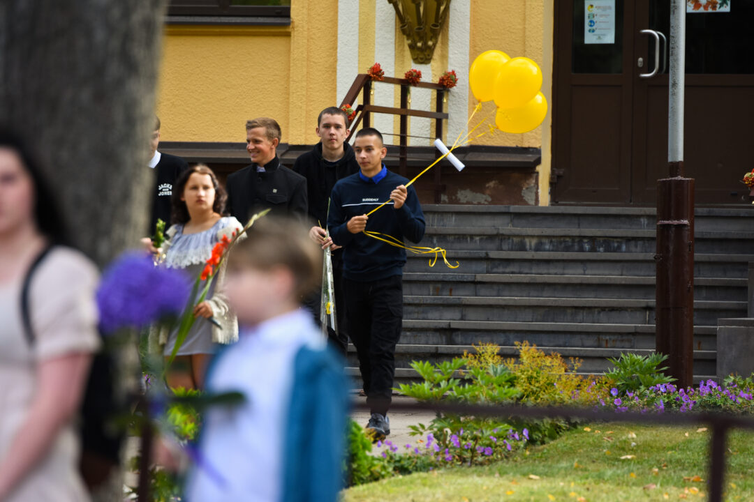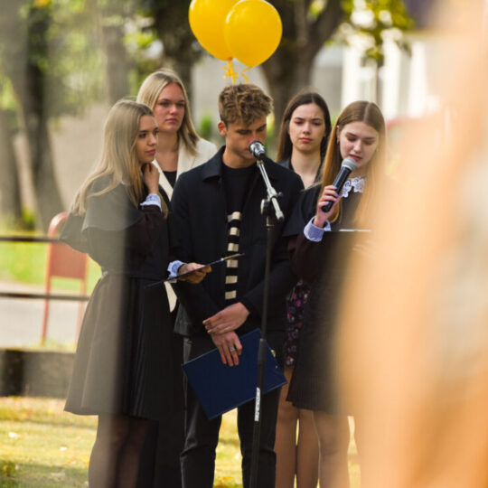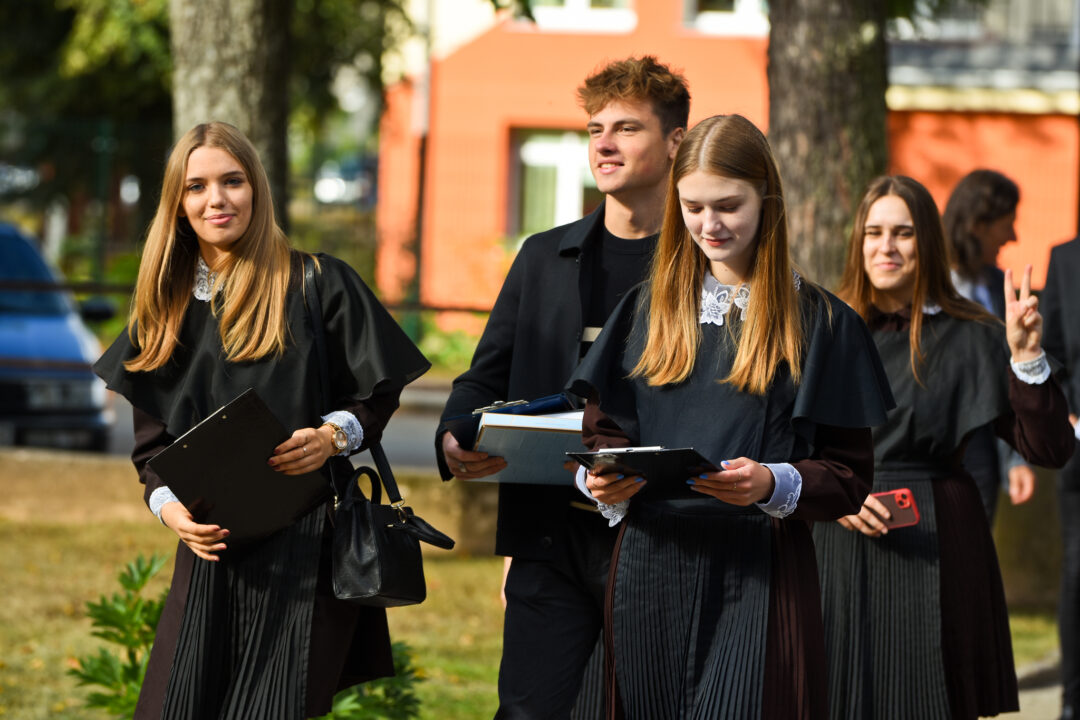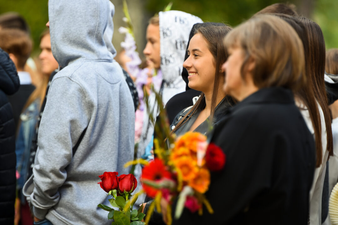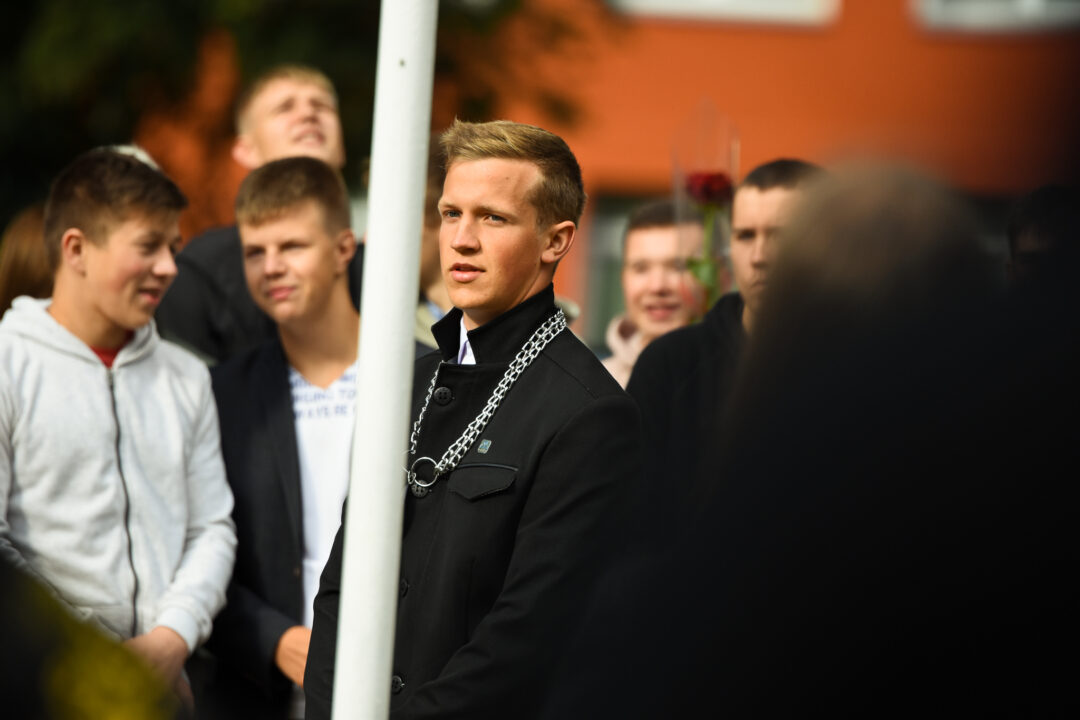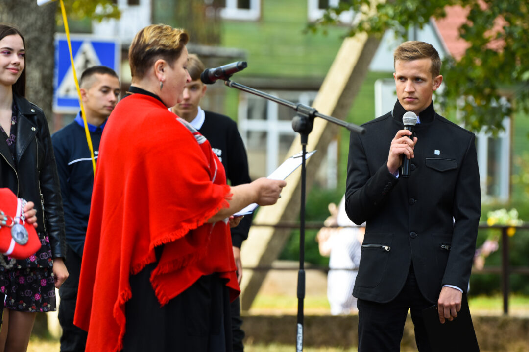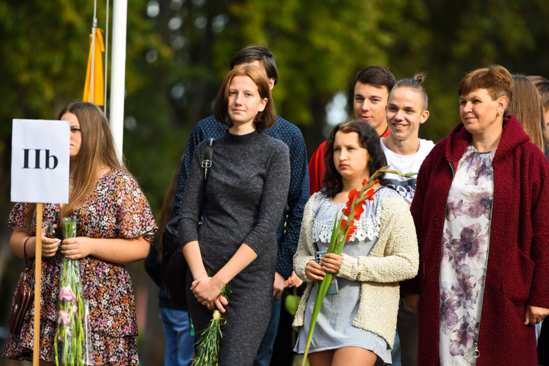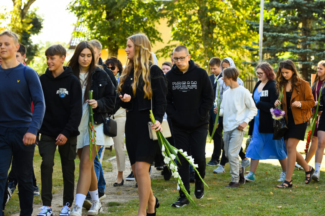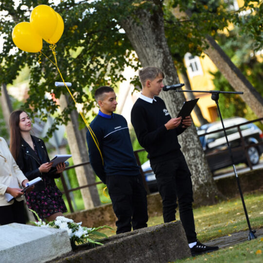Juozo Tumo-Vaižganto gimnazijos Senieji rūmai šventę pradėjo tradicine dvyliktokų eisena mokyklos link, kur jų jau laukė išsirikiavę kiti mokyklos mokiniai bei mokytojai. Šventė prasidėjo nuo naujojo mokyklos prezidento Pijaus Raugalės inauguracijos. Naujasis mokyklos prezidentas palinkėjo gerų mokslo metų, o dvyliktokams – stiprybės ir darbštumo. Sugiedotas ir J. Tumo-Vaižganto gimnazijos himnas bei tradiciškai iškelta Lietuvos trispalvė. Sveikinimus pratęsė mokyklos direktoriaus pavaduotoja Jolanta Juodinytė. Už praėjusių mokslo metų pasiekimus apdovanoti moksleiviai. Girdėti žodžiai apie Ukrainą, linkėta visiems gerų ir taikių mokslo metų. Prie sveikinimų prisidėjo ir rajono savivaldybės Švietimo ir sporto skyriaus vedėjas Aurimas Laužadis. Jis palinkėjo rimto požiūrio į mokslą ir pagaliau išsirinkti mokyklos direktorių.