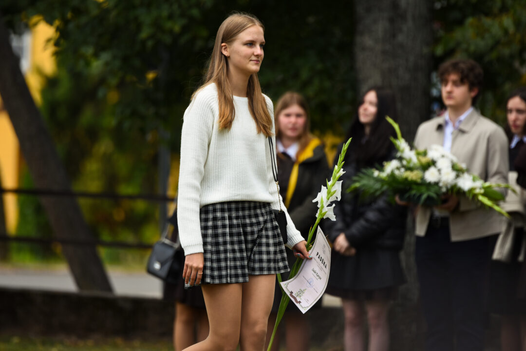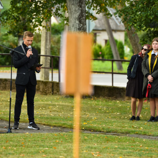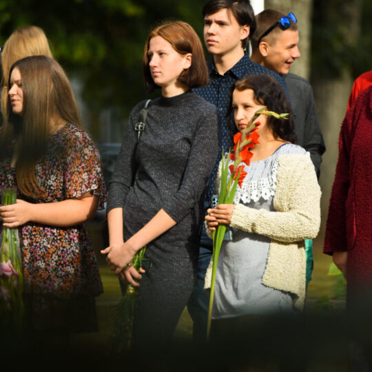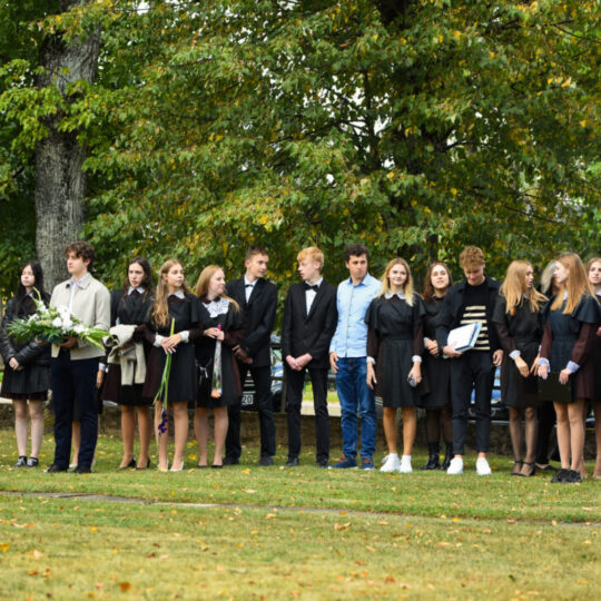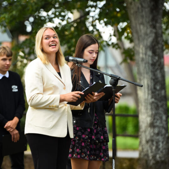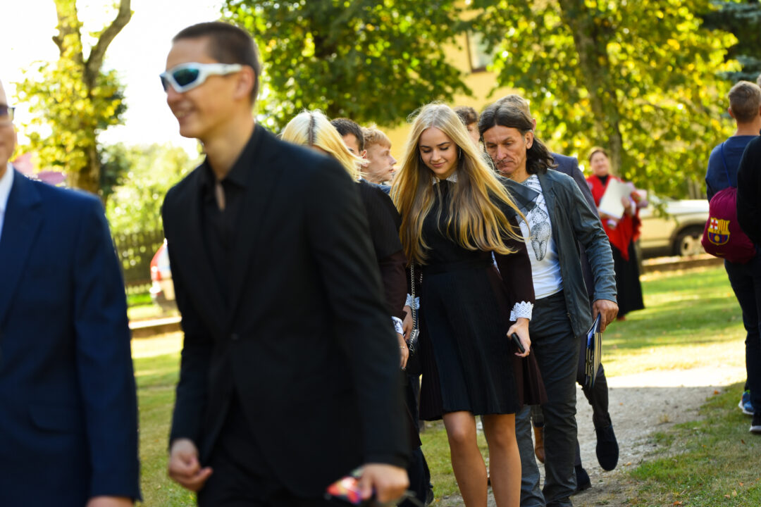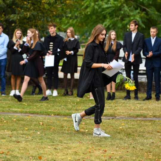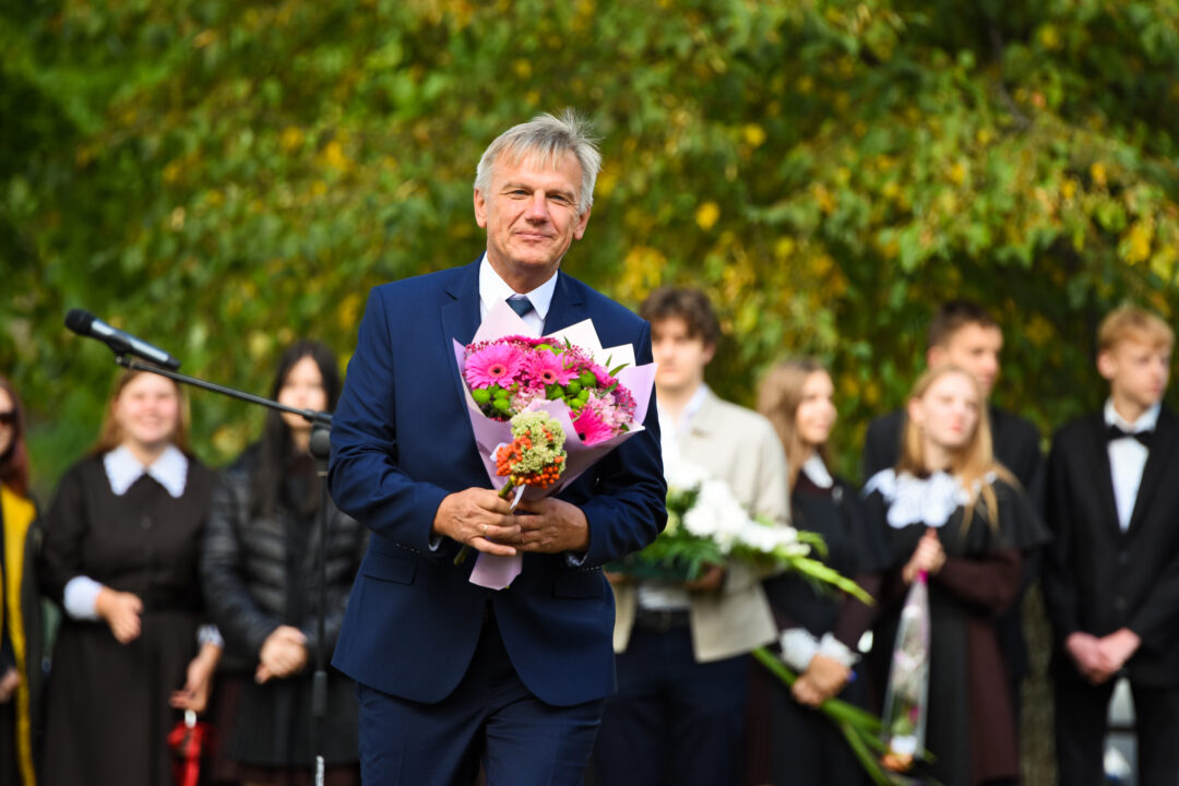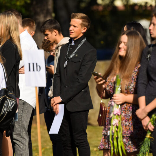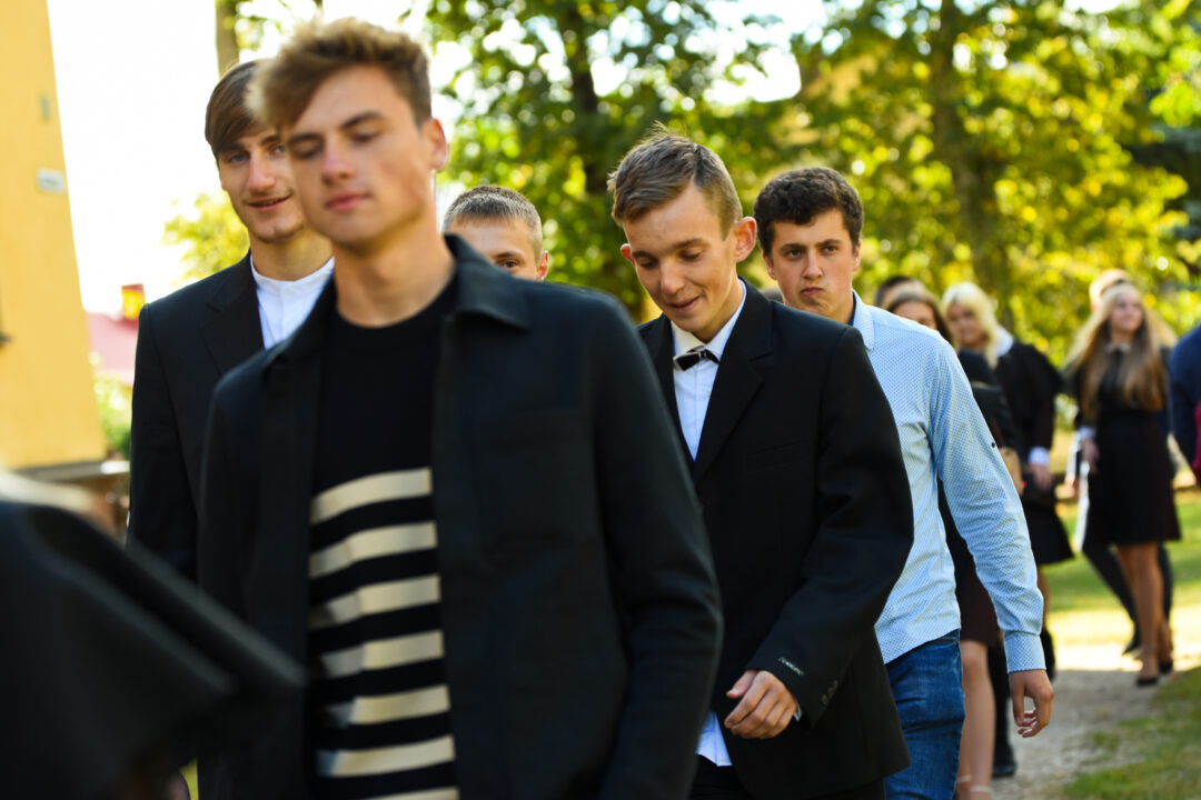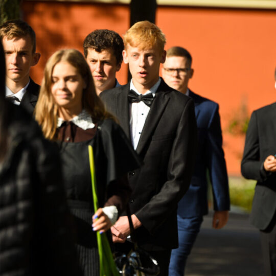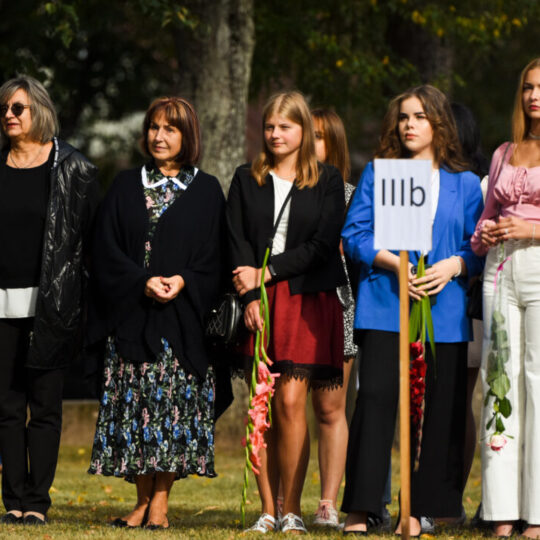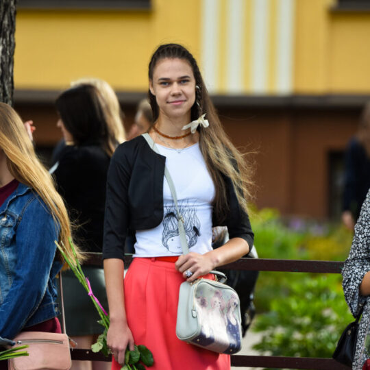 Juozo Tumo-Vaižganto gimnazijos Senieji rūmai šventę pradėjo tradicine dvyliktokų eisena mokyklos link, kur jų jau laukė išsirikiavę kiti mokyklos mokiniai bei mokytojai. Šventė prasidėjo nuo naujojo mokyklos prezidento Pijaus Raugalės inauguracijos. Naujasis mokyklos prezidentas palinkėjo gerų mokslo metų, o dvyliktokams – stiprybės ir darbštumo. Sugiedotas ir J. Tumo-Vaižganto gimnazijos himnas bei tradiciškai iškelta Lietuvos trispalvė. Sveikinimus pratęsė mokyklos direktoriaus pavaduotoja Jolanta Juodinytė. Už praėjusių mokslo metų pasiekimus apdovanoti moksleiviai. Girdėti žodžiai apie Ukrainą, linkėta visiems gerų ir taikių mokslo metų. Prie sveikinimų prisidėjo ir rajono savivaldybės Švietimo ir sporto skyriaus vedėjas Aurimas Laužadis. Jis palinkėjo rimto požiūrio į mokslą ir pagaliau išsirinkti mokyklos direktorių.