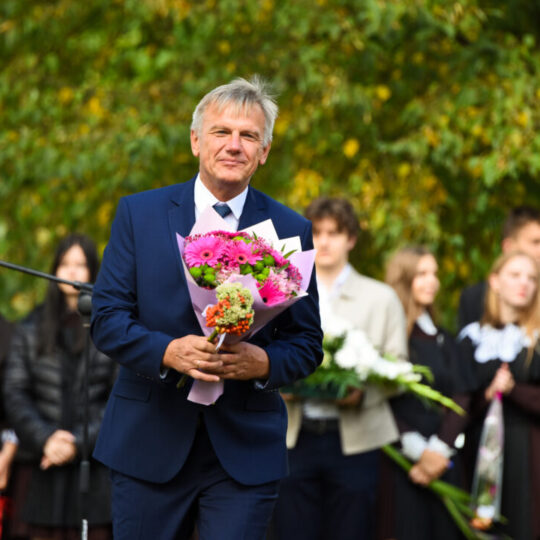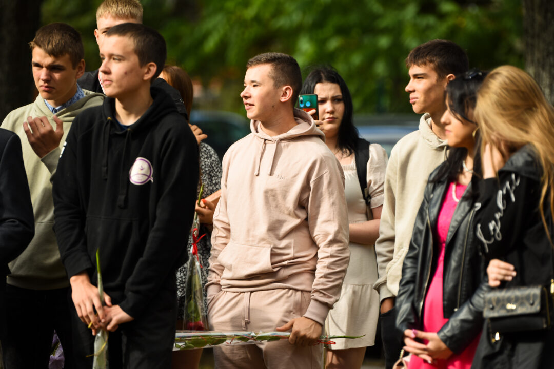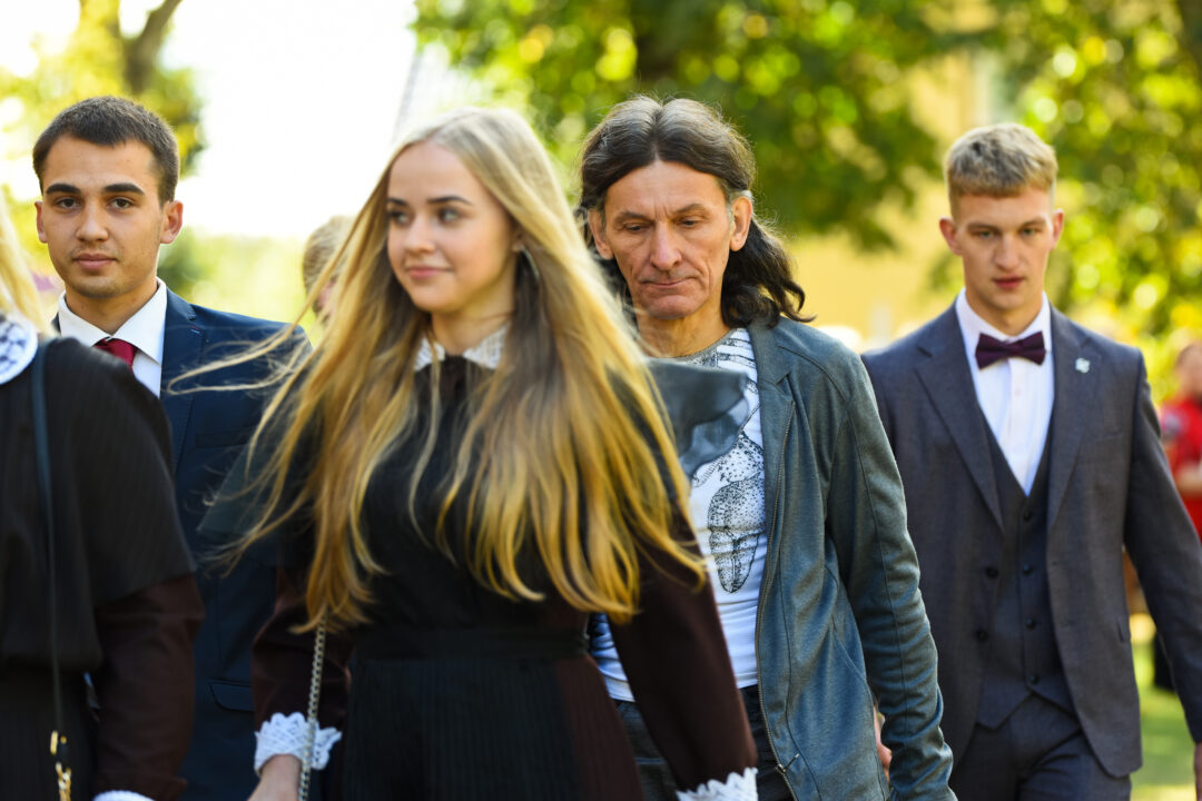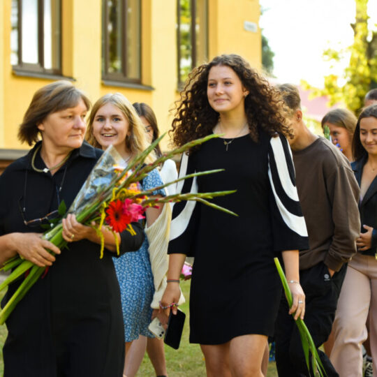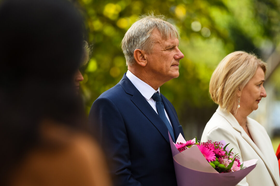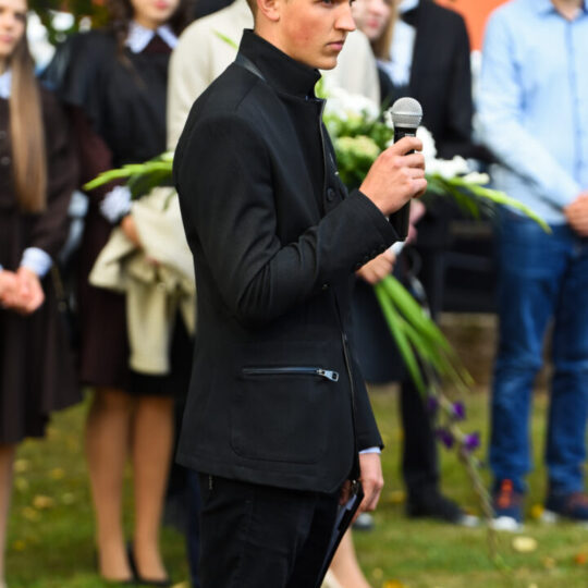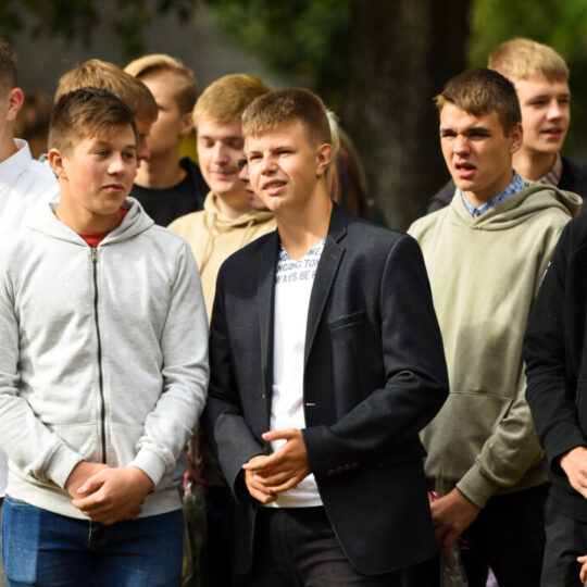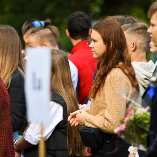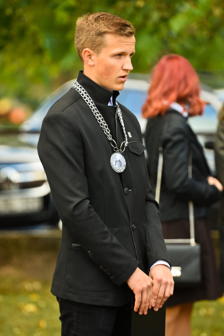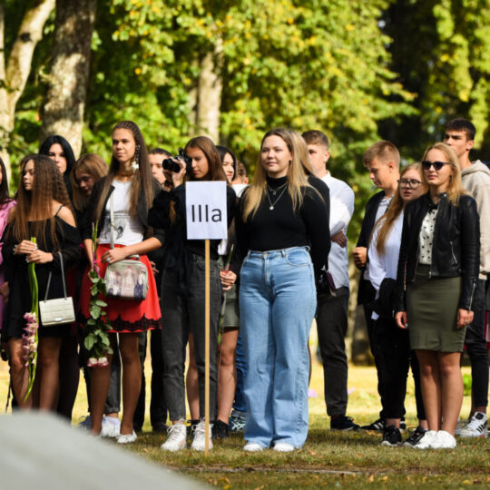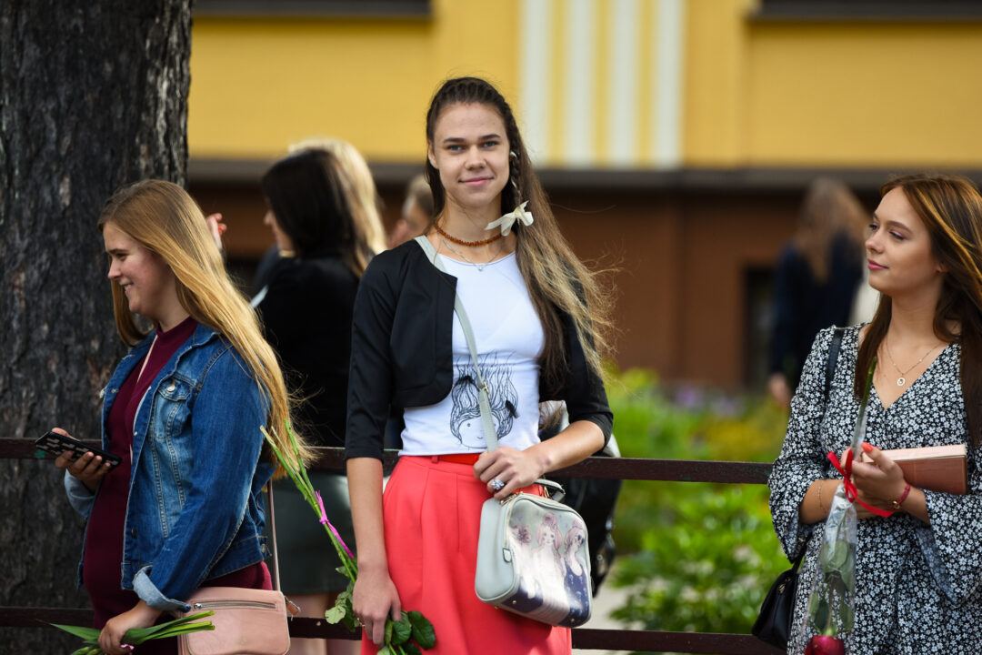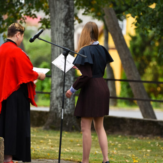 Juozo Tumo-Vaižganto gimnazijos Senieji rūmai šventę pradėjo tradicine dvyliktokų eisena mokyklos link, kur jų jau laukė išsirikiavę kiti mokyklos mokiniai bei mokytojai. Šventė prasidėjo nuo naujojo mokyklos prezidento Pijaus Raugalės inauguracijos. Naujasis mokyklos prezidentas palinkėjo gerų mokslo metų, o dvyliktokams – stiprybės ir darbštumo. Sugiedotas ir J. Tumo-Vaižganto gimnazijos himnas bei tradiciškai iškelta Lietuvos trispalvė. Sveikinimus pratęsė mokyklos direktoriaus pavaduotoja Jolanta Juodinytė. Už praėjusių mokslo metų pasiekimus apdovanoti moksleiviai. Girdėti žodžiai apie Ukrainą, linkėta visiems gerų ir taikių mokslo metų. Prie sveikinimų prisidėjo ir rajono savivaldybės Švietimo ir sporto skyriaus vedėjas Aurimas Laužadis. Jis palinkėjo rimto požiūrio į mokslą ir pagaliau išsirinkti mokyklos direktorių.
