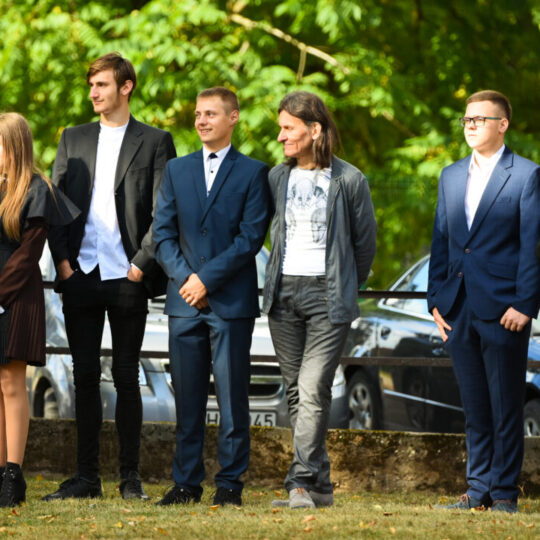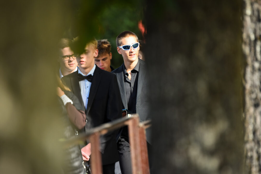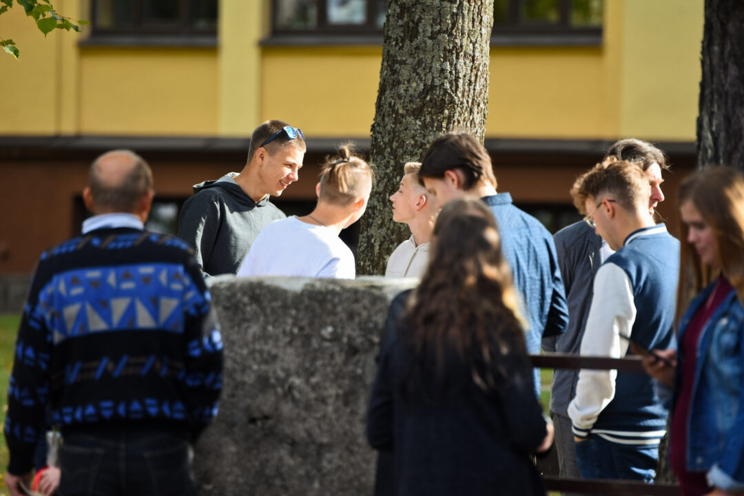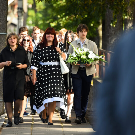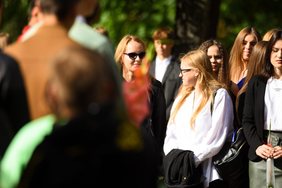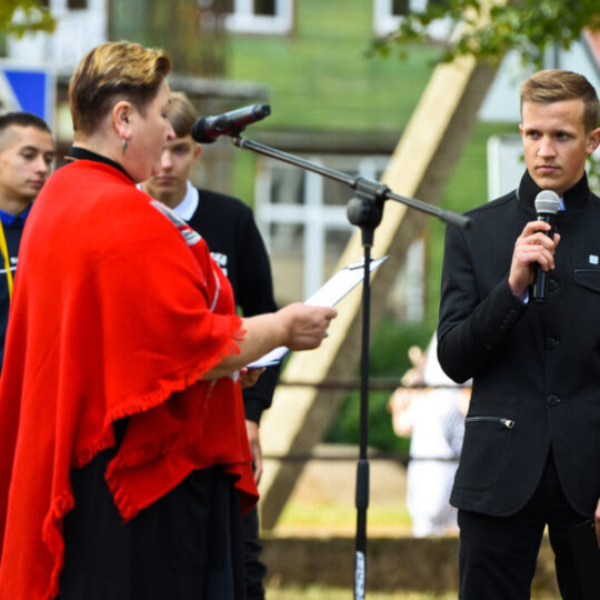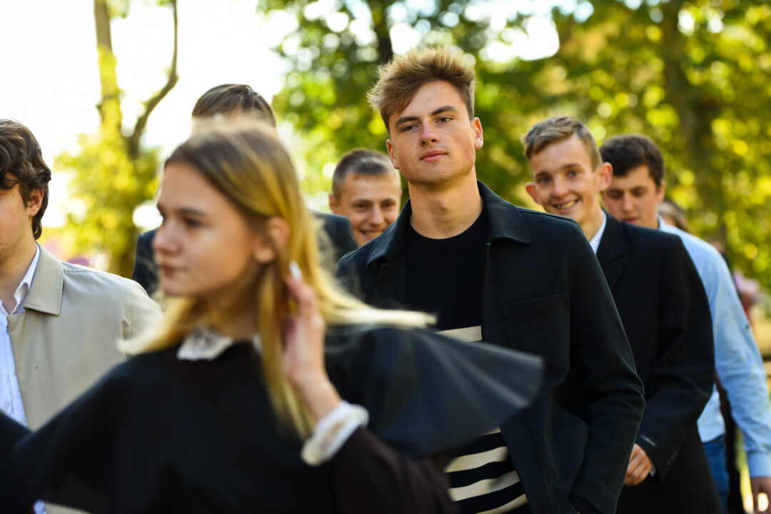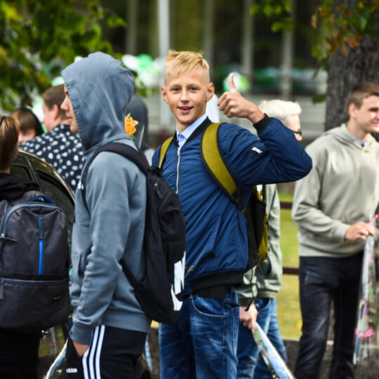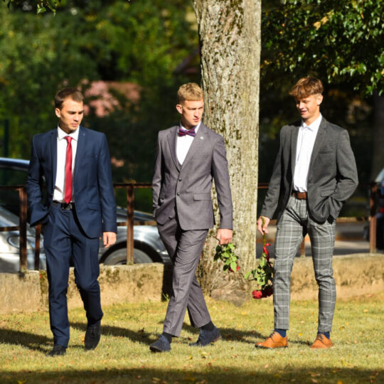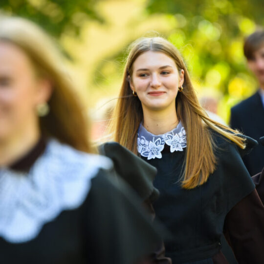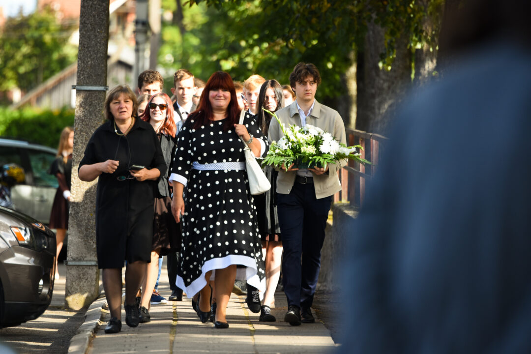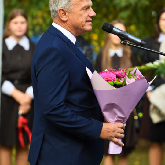 Juozo Tumo-Vaižganto gimnazijos Senieji rūmai šventę pradėjo tradicine dvyliktokų eisena mokyklos link, kur jų jau laukė išsirikiavę kiti mokyklos mokiniai bei mokytojai. Šventė prasidėjo nuo naujojo mokyklos prezidento Pijaus Raugalės inauguracijos. Naujasis mokyklos prezidentas palinkėjo gerų mokslo metų, o dvyliktokams – stiprybės ir darbštumo. Sugiedotas ir J. Tumo-Vaižganto gimnazijos himnas bei tradiciškai iškelta Lietuvos trispalvė. Sveikinimus pratęsė mokyklos direktoriaus pavaduotoja Jolanta Juodinytė. Už praėjusių mokslo metų pasiekimus apdovanoti moksleiviai. Girdėti žodžiai apie Ukrainą, linkėta visiems gerų ir taikių mokslo metų. Prie sveikinimų prisidėjo ir rajono savivaldybės Švietimo ir sporto skyriaus vedėjas Aurimas Laužadis. Jis palinkėjo rimto požiūrio į mokslą ir pagaliau išsirinkti mokyklos direktorių.