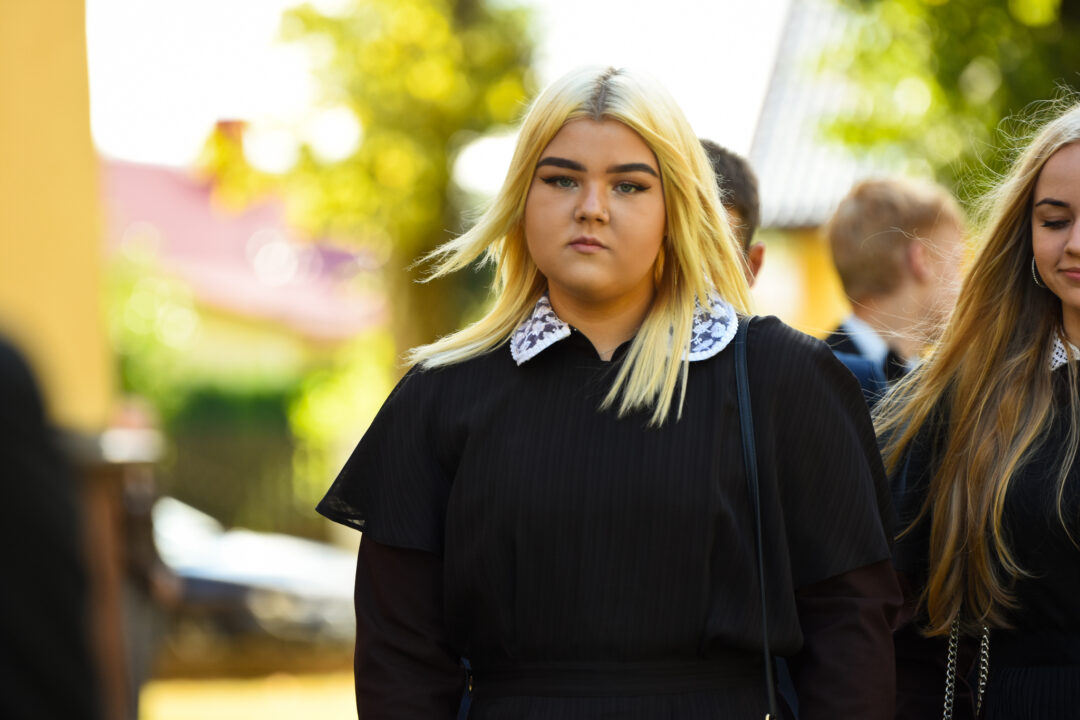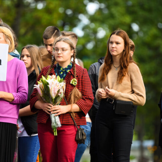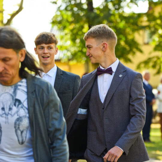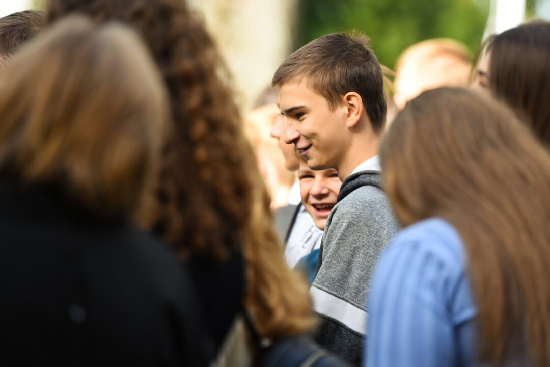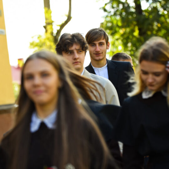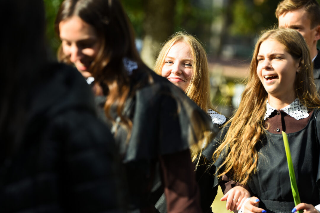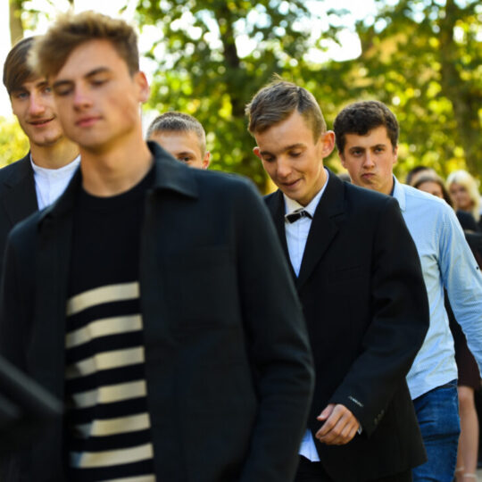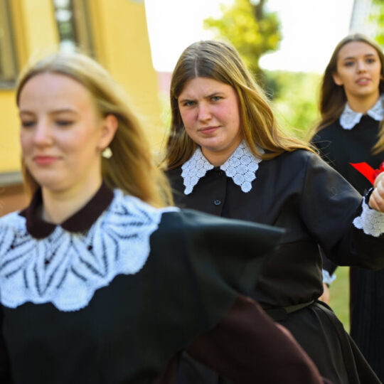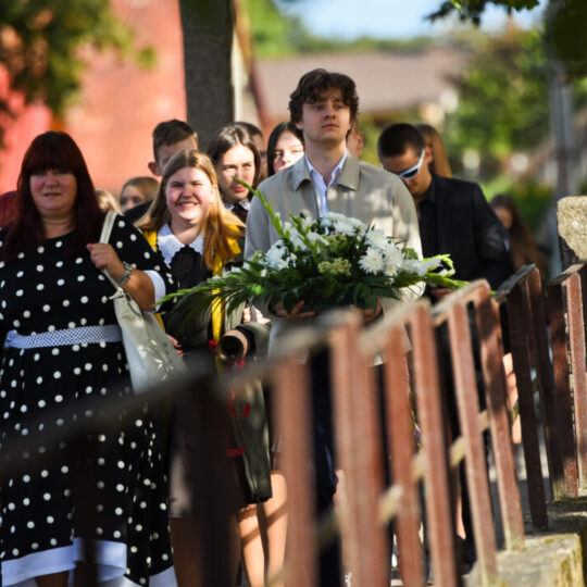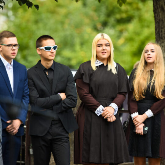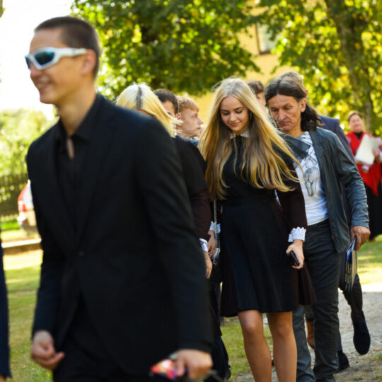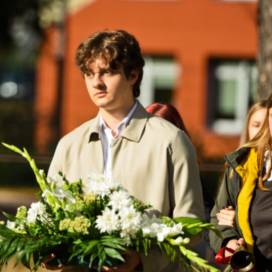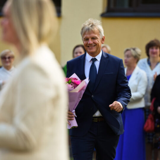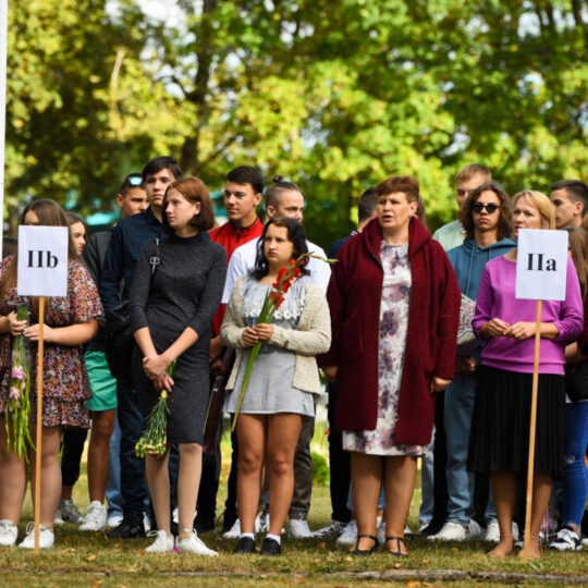 Juozo Tumo-Vaižganto gimnazijos Senieji rūmai šventę pradėjo tradicine dvyliktokų eisena mokyklos link, kur jų jau laukė išsirikiavę kiti mokyklos mokiniai bei mokytojai. Šventė prasidėjo nuo naujojo mokyklos prezidento Pijaus Raugalės inauguracijos. Naujasis mokyklos prezidentas palinkėjo gerų mokslo metų, o dvyliktokams – stiprybės ir darbštumo. Sugiedotas ir J. Tumo-Vaižganto gimnazijos himnas bei tradiciškai iškelta Lietuvos trispalvė. Sveikinimus pratęsė mokyklos direktoriaus pavaduotoja Jolanta Juodinytė. Už praėjusių mokslo metų pasiekimus apdovanoti moksleiviai. Girdėti žodžiai apie Ukrainą, linkėta visiems gerų ir taikių mokslo metų. Prie sveikinimų prisidėjo ir rajono savivaldybės Švietimo ir sporto skyriaus vedėjas Aurimas Laužadis. Jis palinkėjo rimto požiūrio į mokslą ir pagaliau išsirinkti mokyklos direktorių.