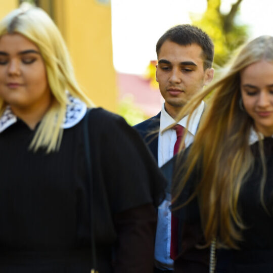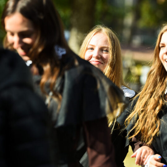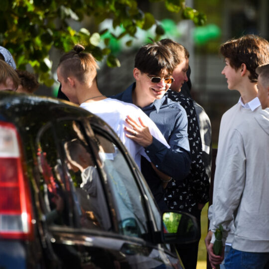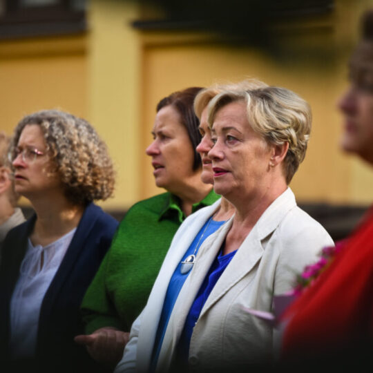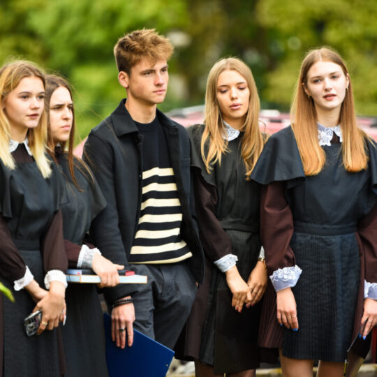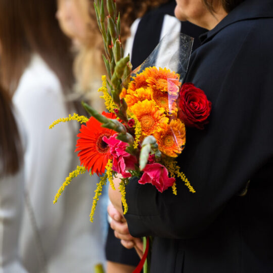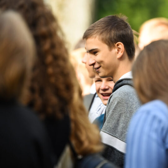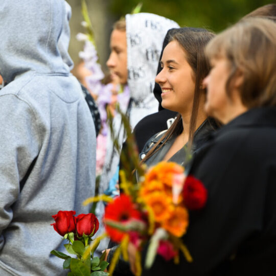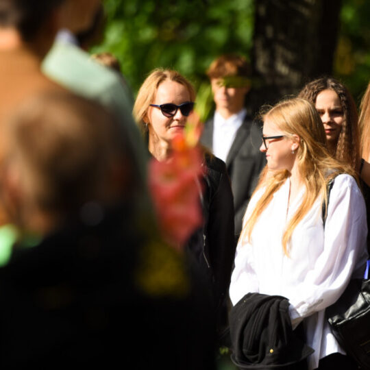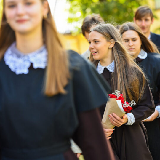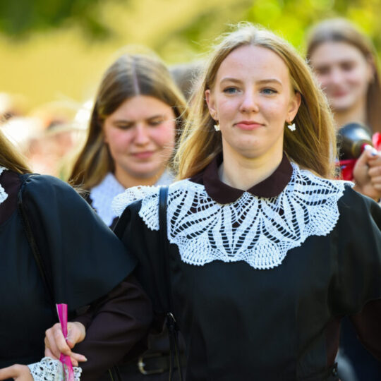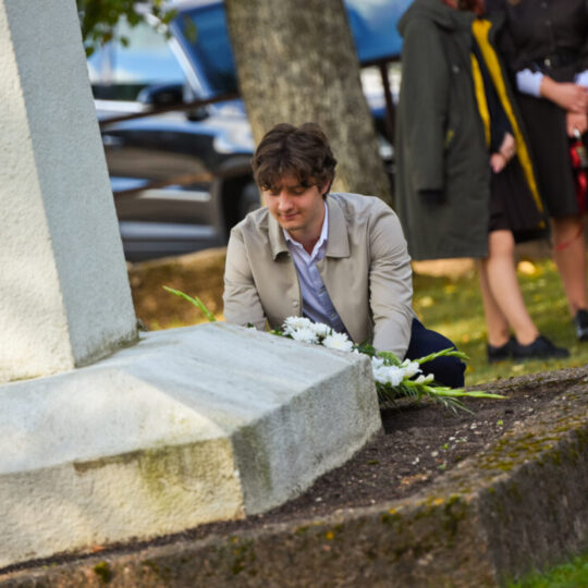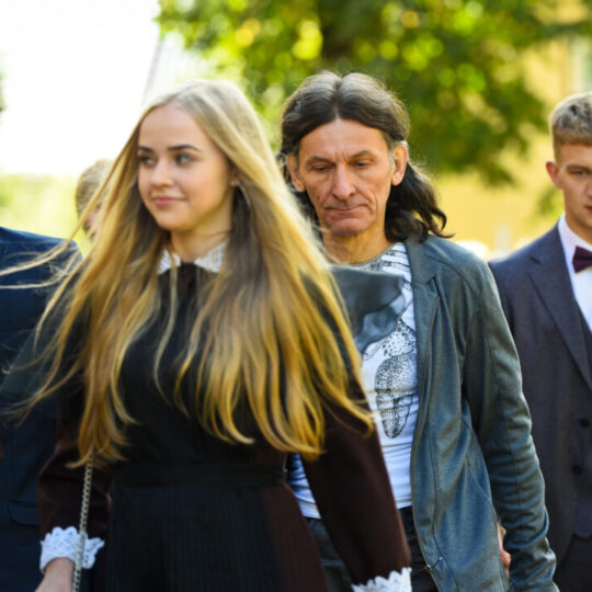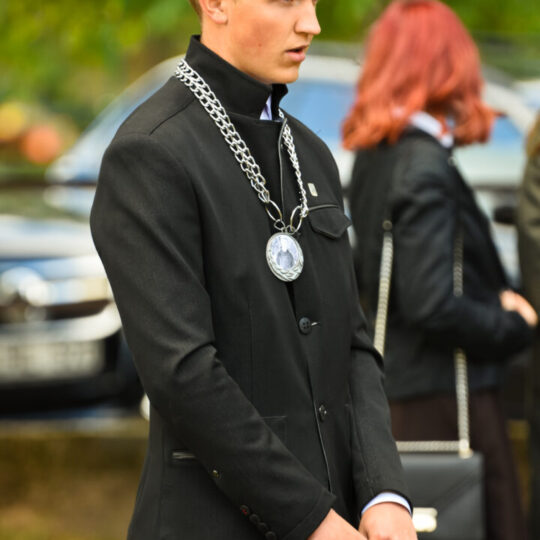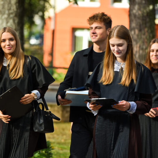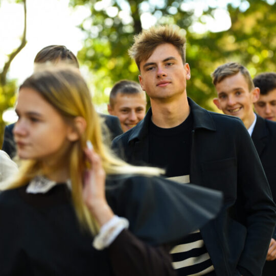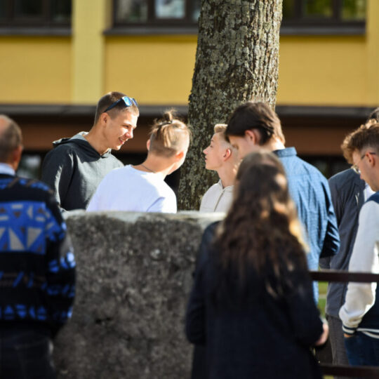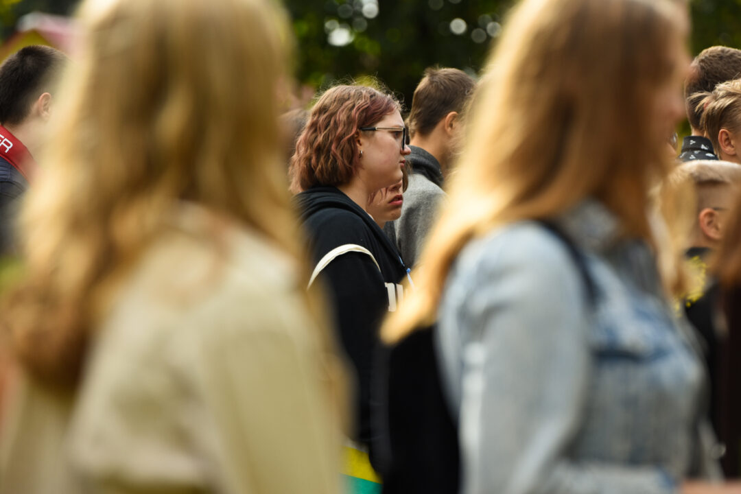 Juozo Tumo-Vaižganto gimnazijos Senieji rūmai šventę pradėjo tradicine dvyliktokų eisena mokyklos link, kur jų jau laukė išsirikiavę kiti mokyklos mokiniai bei mokytojai. Šventė prasidėjo nuo naujojo mokyklos prezidento Pijaus Raugalės inauguracijos. Naujasis mokyklos prezidentas palinkėjo gerų mokslo metų, o dvyliktokams – stiprybės ir darbštumo. Sugiedotas ir J. Tumo-Vaižganto gimnazijos himnas bei tradiciškai iškelta Lietuvos trispalvė. Sveikinimus pratęsė mokyklos direktoriaus pavaduotoja Jolanta Juodinytė. Už praėjusių mokslo metų pasiekimus apdovanoti moksleiviai. Girdėti žodžiai apie Ukrainą, linkėta visiems gerų ir taikių mokslo metų. Prie sveikinimų prisidėjo ir rajono savivaldybės Švietimo ir sporto skyriaus vedėjas Aurimas Laužadis. Jis palinkėjo rimto požiūrio į mokslą ir pagaliau išsirinkti mokyklos direktorių.