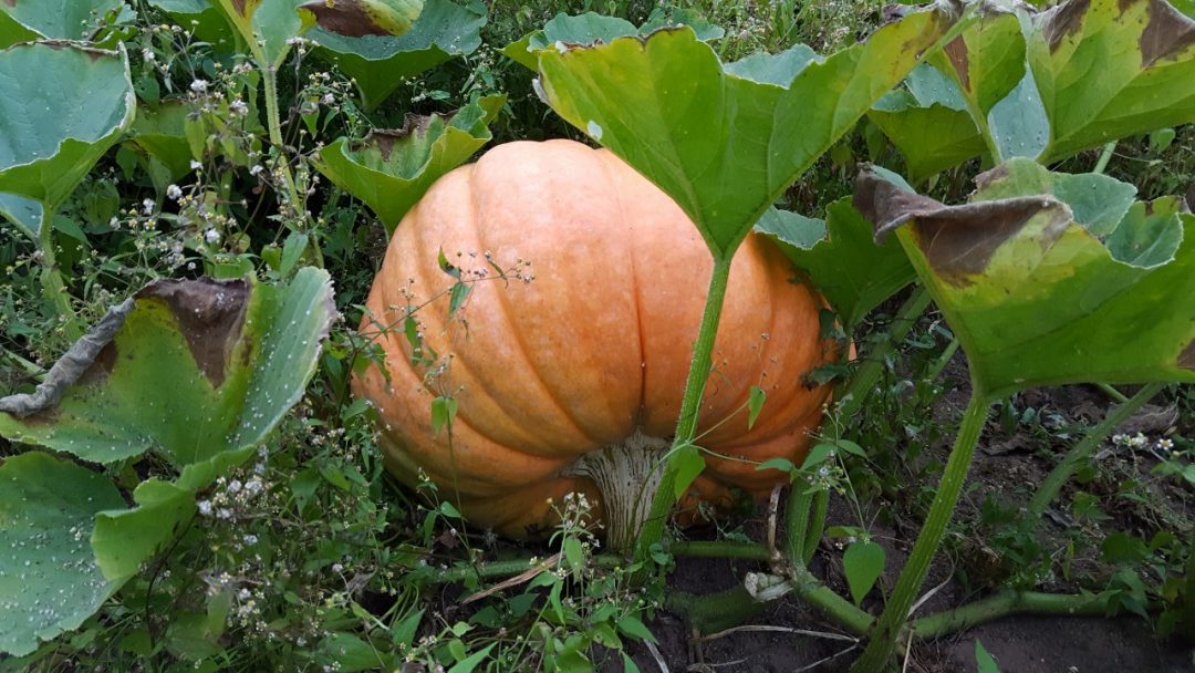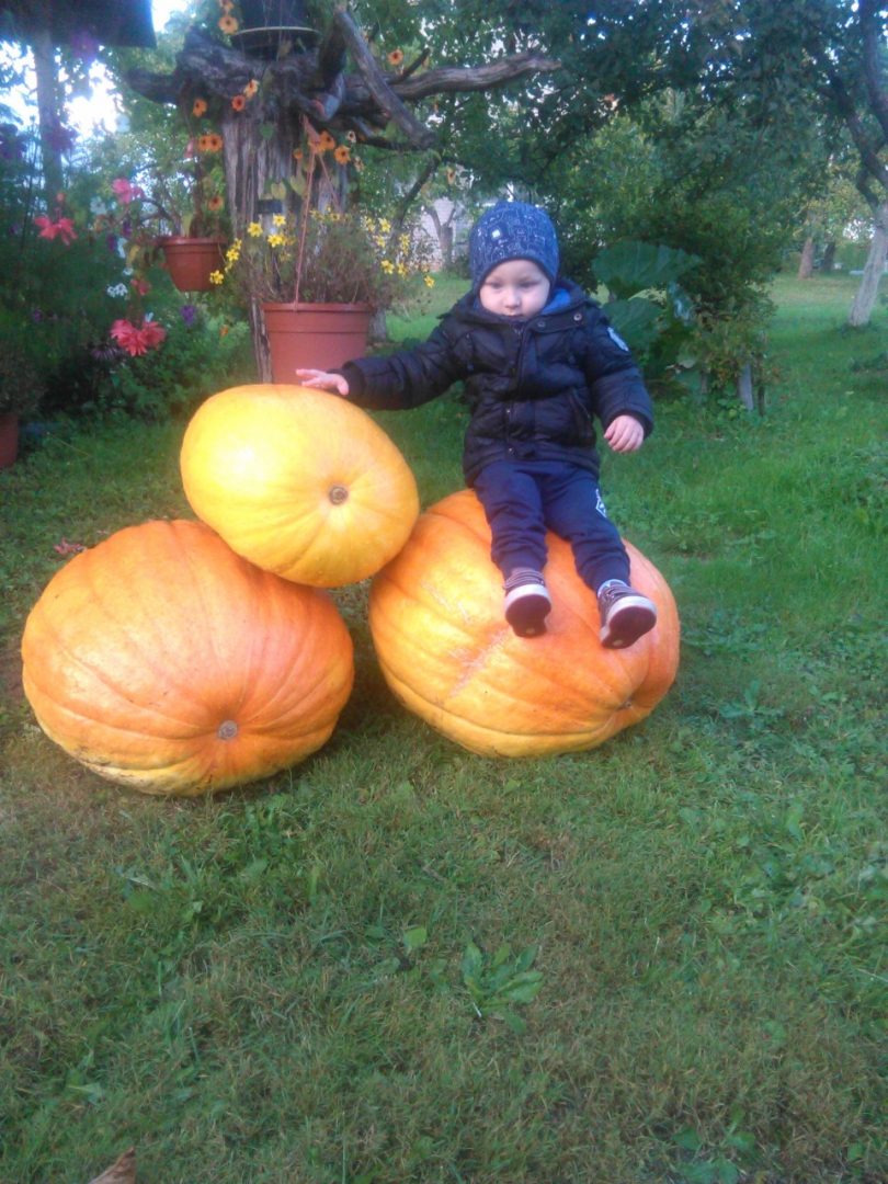 Ant milžino moliūgo Rojus Navikas. Vilmos Navinės nuotr.