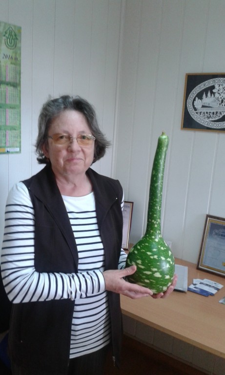 Regina Batūrienė su mulžine cukinija.