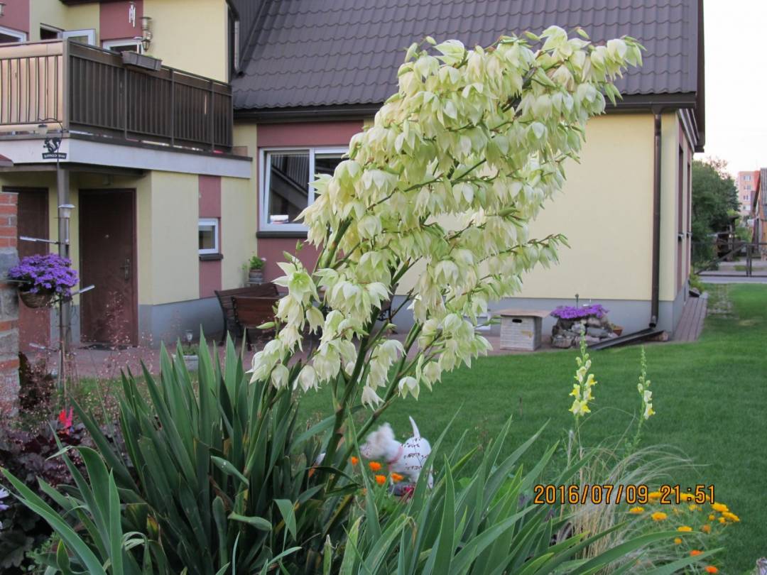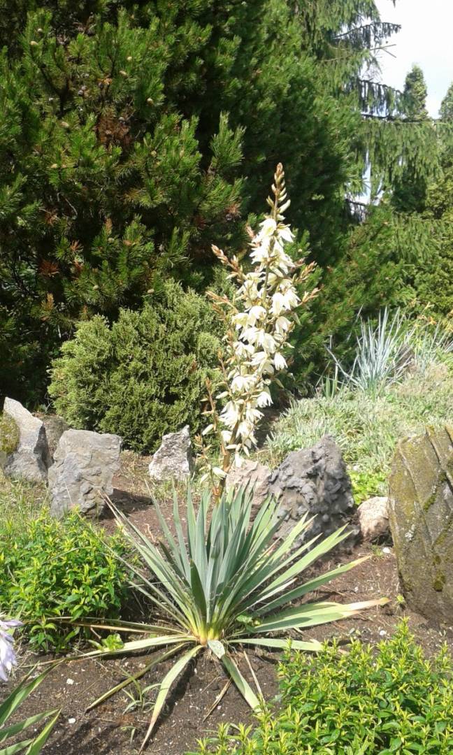 Kavoliškėnės Stefanijos Jurkėnienės gėlyne akį džiugina pražydusi juka.