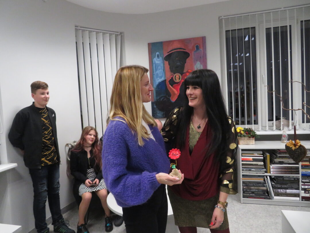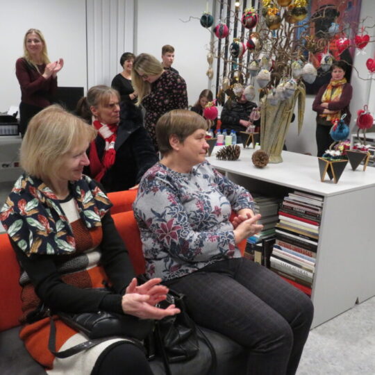 Pristatydama parodą, autorė dėkojo visiems atėjusiems, nes, pasak jos, dėmesys ir palaikymas įkvepia. Dėkojo žmonėms, kurie padėjo surengti parodą – tai Julijai Dabregienei, Agnei Aržuolaitei, Linai Liolienei, Laurai Kulienei bei bibliotekos direktorei Alicijai Matiukienei. Vienos iš jų paragino eksponuoti rankdarbius Rokiškyje, kitos palaikė idėją, motyvavo, padėjo organizuoti. Joms skyrė po vieną iš savo kūrybinių darbų – gėlytę su žodžiu „Ačiū“. E. Pivoriūnienė sulaukė daugybės gėlių, sveikinimų, linkėjimų ir pakvietė į kitą erdvę, kurioje vedė nemokamą kalėdinių eglučių kūrimo edukaciją.