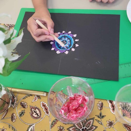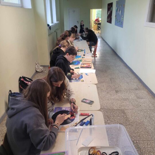Krašto muziejuje mokiniai dalyvavo edukacijose „Tapyba ant stiklo“ ir „Taškelių magija“. Buvo mokomasi taškavimo technikos, kuri daugeliui mokinių nauja ir įdomi patirtis.