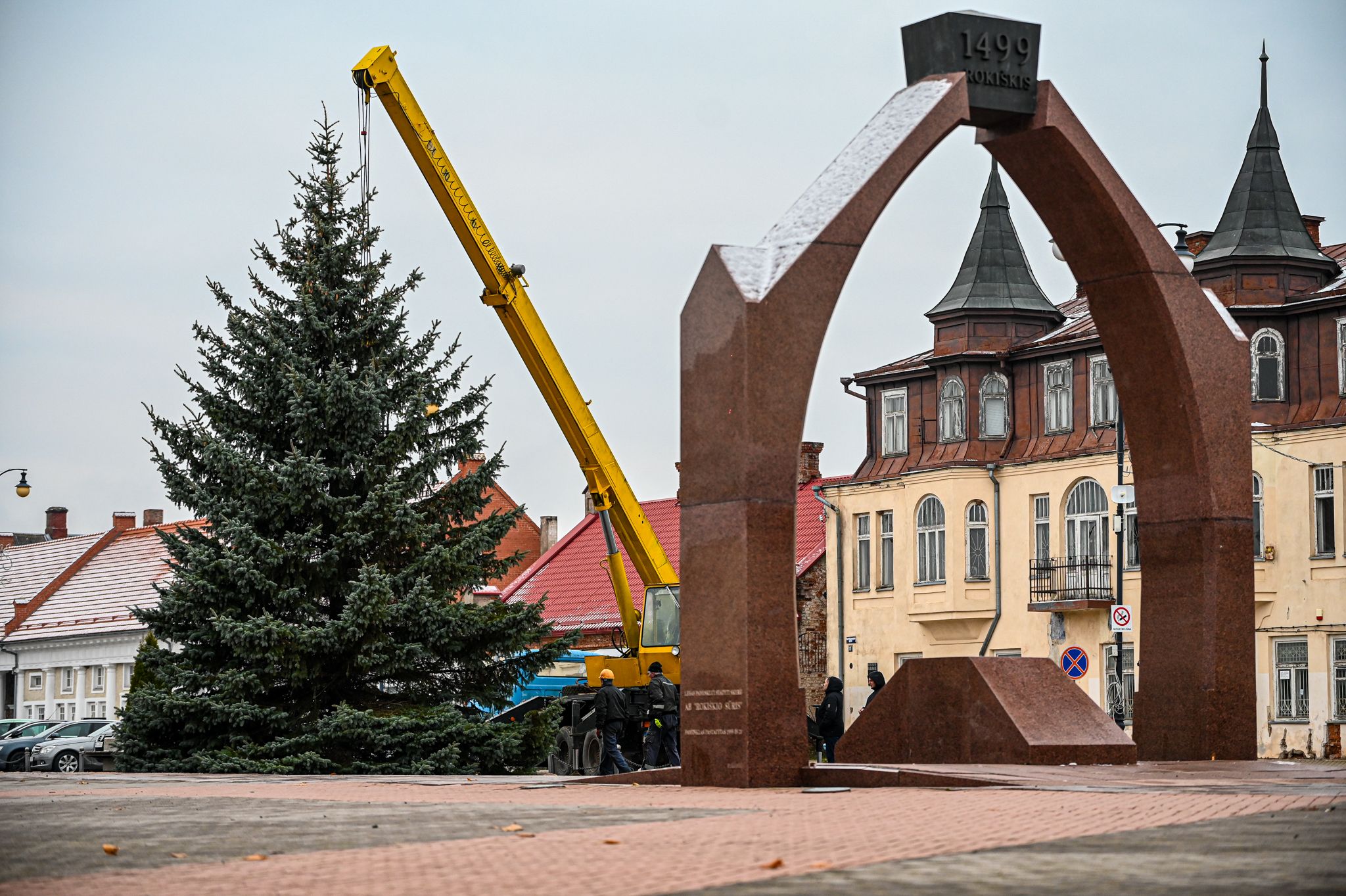 Pirmadienį į Rokiškio Nepriklausomybės aikštę atkeliavo pagrindinis artėjančių švenčių akcentas – kalėdinė eglė. Šį kartą žaliaskarė atvežta iš Čedasų kaimo, ją miestui padovanojo Marijona Neniškienė. Eglės puošybos darbai bus pradėti iš karto. Jos įžiebimo ceremonija suplanuota gruodžio 1-ąją.