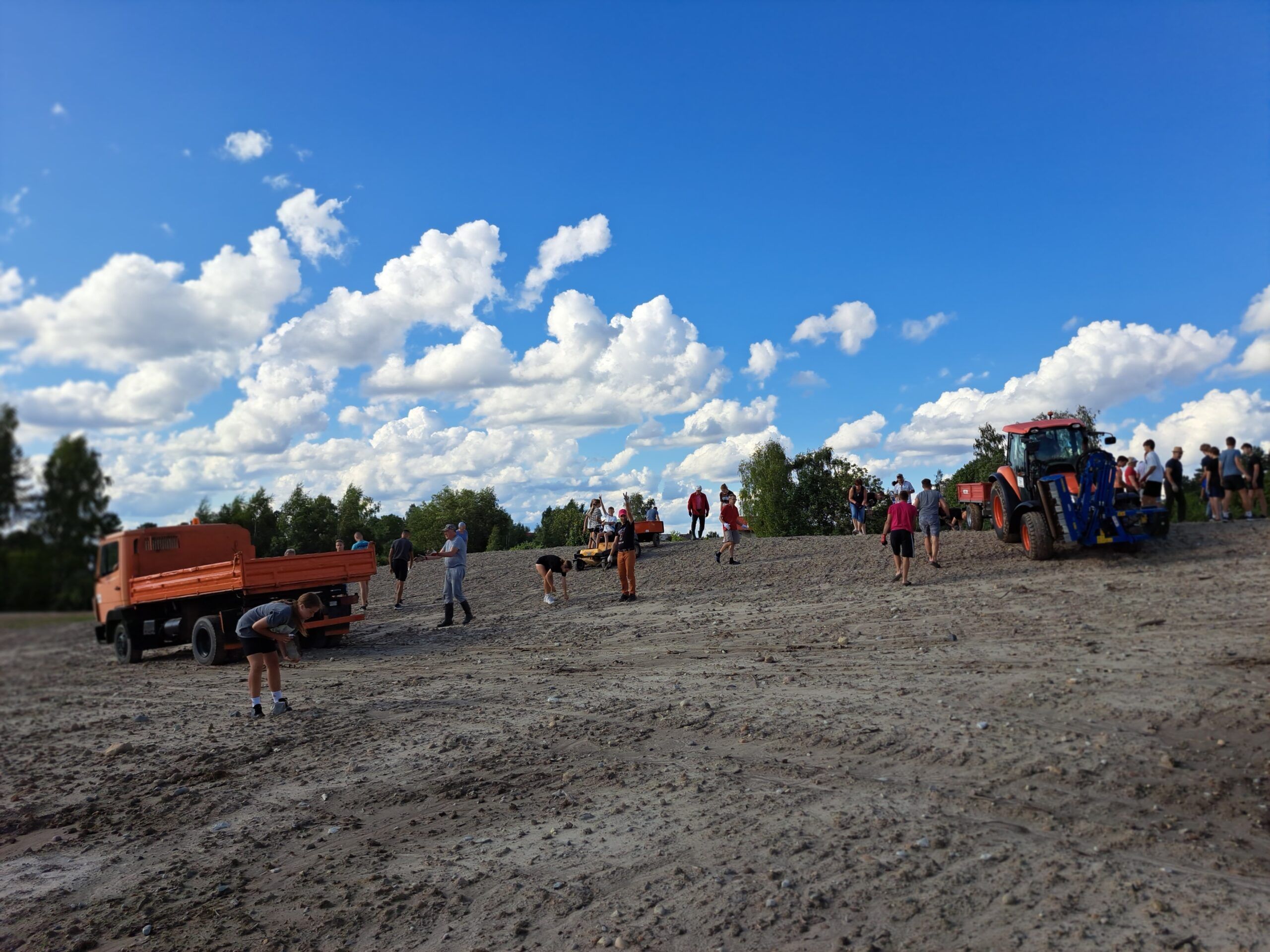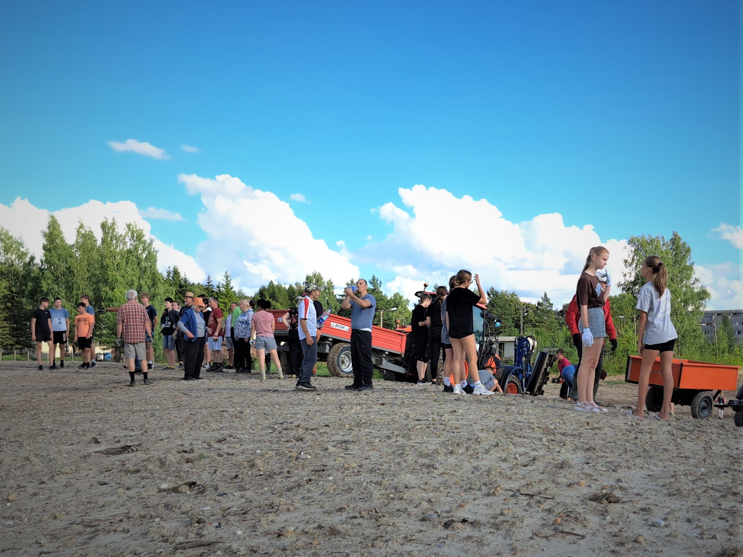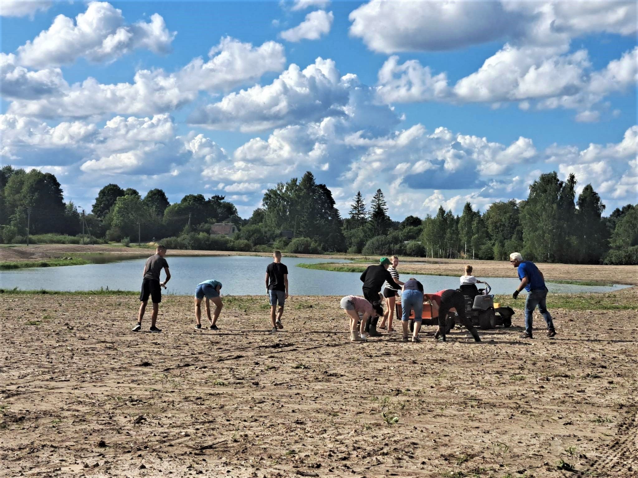 5 ha plote darbavosi „Velykalnio“ bendruomenės nariai, netoliese gyvenantys žmonės, darbštuoliai iš savarankiško gyvenimo namų, jaunieji sportininkai su savo trenere Daiga Sirgėdiene, kurie į šį parką renkasi žaisti tinklinio. Tarp talkininkų matėsi ir Lietuvai pagražinti draugijos Rokiškio skyriaus nariai su pirmininke Audrone Gavėniene, vyresnio amžiaus sportininkai, mėgstantys žaisti tinklinį. Jaunieji sportininkai į talką atsivedė ir savo tėvelius. Akmenis rinko ir rajono savivaldybės tarybos narys Paulius Varnas, mėgstantis sportuoti. Be abejo, savo bendruomenės nepaliko ir jos pirmininkas S. Mekšėnas.