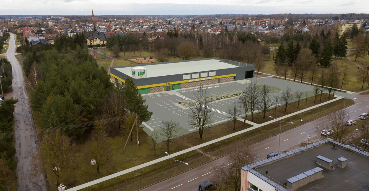 Prekybos paskirties pastatas projektuojamas prie šiaurinės sklypo ribos. Priešais pastatą numatyta 70 automobilių stovėjimo aikštelė. Patekimas bus paliktas tas pats – iš Taikos gatvės, rekonstruojant esamą nuovažą. Projektuojami pėsčiųjų takai bus sujungti su jau esančiais. Numatoma apželdinti iki 17 proc. sklypo teritorijos. Teritorija nebus aptverta. Pagrindinis įėjimas į pastatą – iš Taikos gatvės, automobilių stovėjimo aikštelės pusės, pietiniame fasade. Per pagrindinį įėjimą bus patenkama į holą, tada – į vestibiulį, iš kurio galima patekti į pagrindinę prekybos salę bei kitas prekybos patalpas. Numatyti ir kiti patekimai į prekybos patalpas – vakariniame ir šiauriame fasaduose. Numatoma, kad pastate vienu metu galėtų būti iki 282 lankytojų.