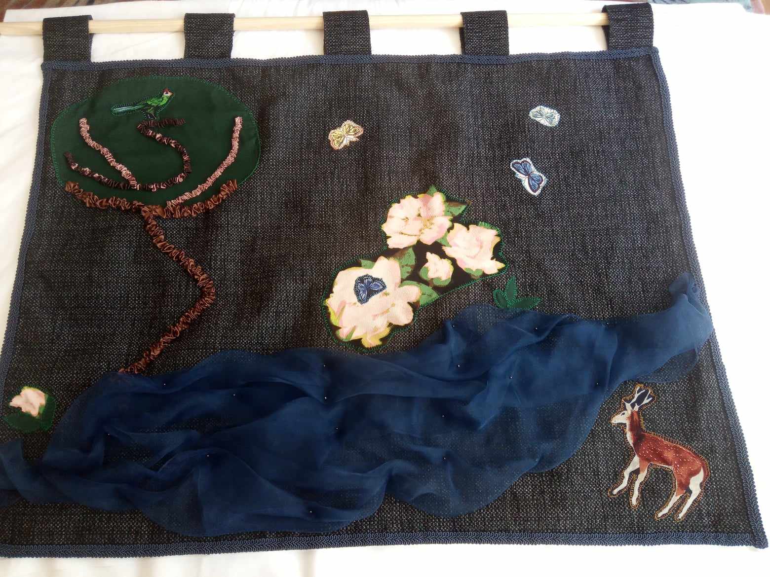 Rita: – Stovykla vyko penkias dienas, šįkart jos tema buvo susieta su tvarumu, todėl siuvinėjimas buvo derinamas kartu su aplikacija: siuvinėjamos detalės ir tvirtinamos siūliukais pritaikant tam tikrus dygsnius.