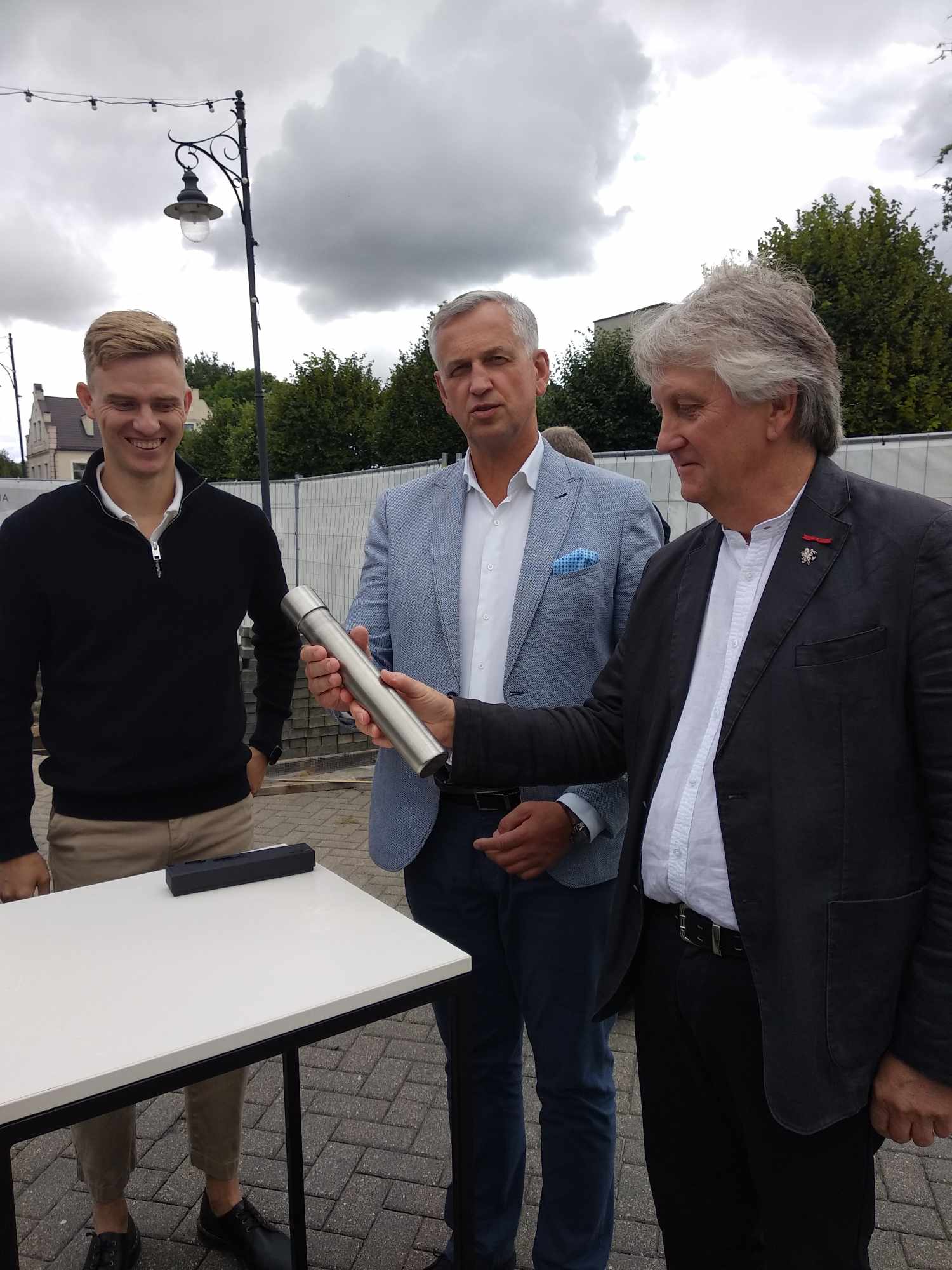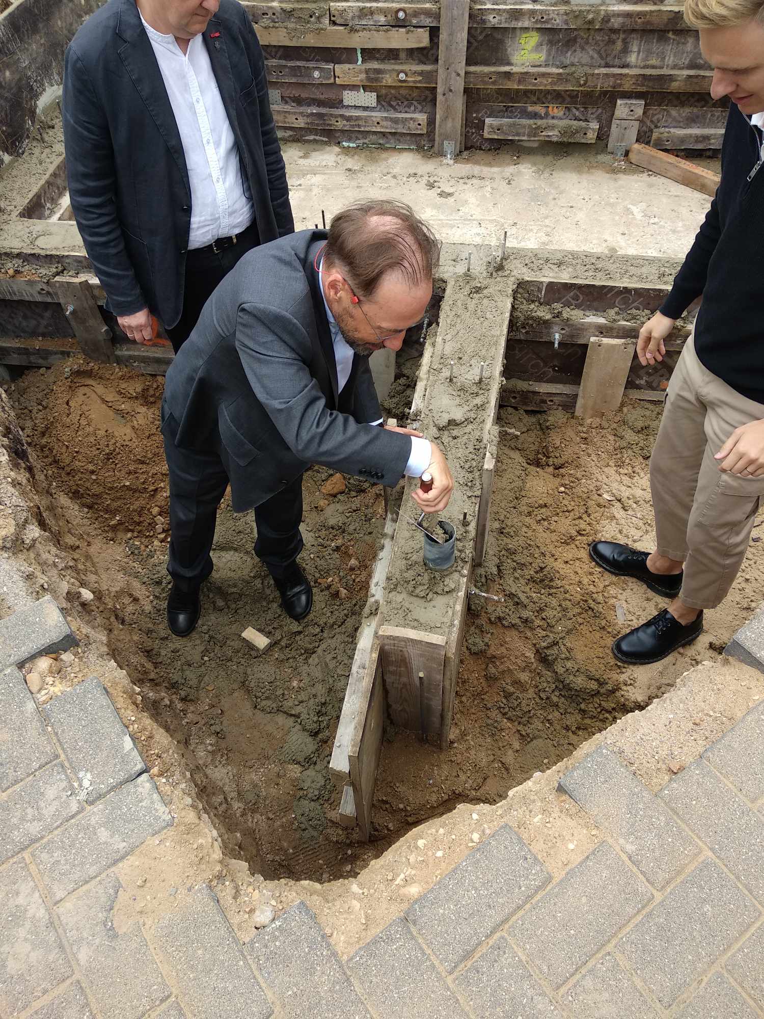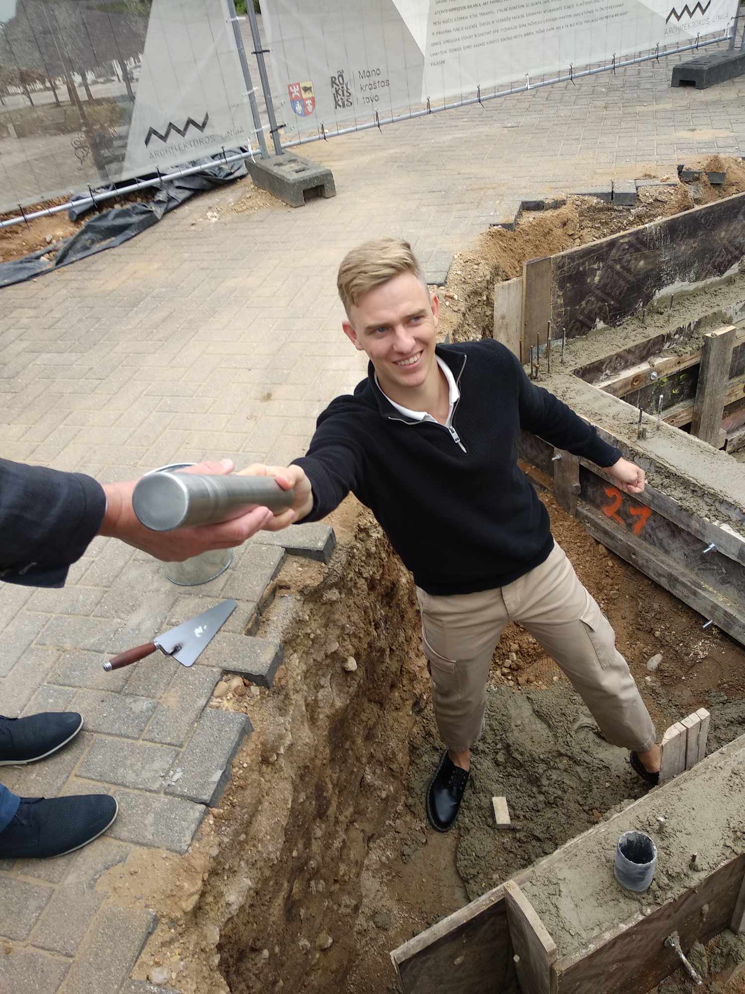 Penktadienį Rokiškio širdyje, Nepriklausomybės aikštėje, į pradedamą statyti paminklą grafams Tyzenhauzams įbetonuota simbolinė kapsulė. Tekstas joje ateities kartoms pasakoja šio paminklo atsiradimo istoriją, skelbia autorių, mecenatų ir visų prisidėjusiųjų pavardes. Vienas iš paminklo kūrėjų – architektas kraštietis Faustas Lasys – sakė, kad jaučiasi kaip Olimpinėse žaidynėse, prieš šokdamas į baseiną. Tai mažiausio dydžio jo darbas, į kurį įdėjo daugiausia savo širdies.